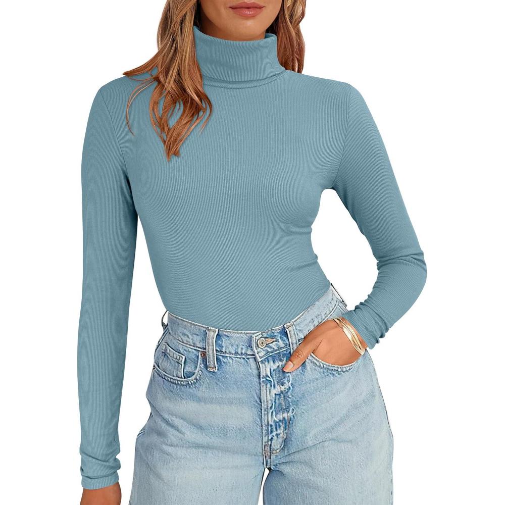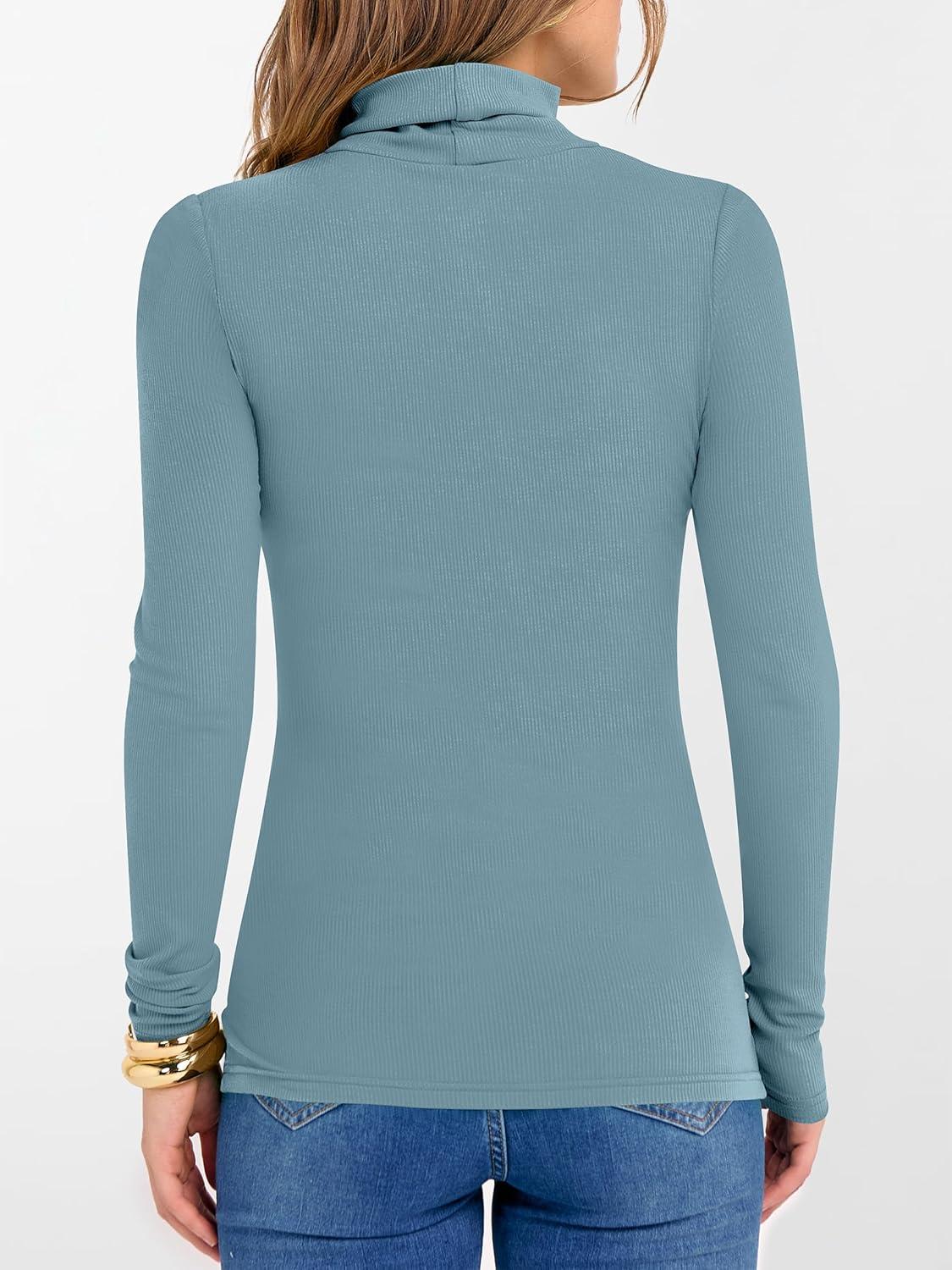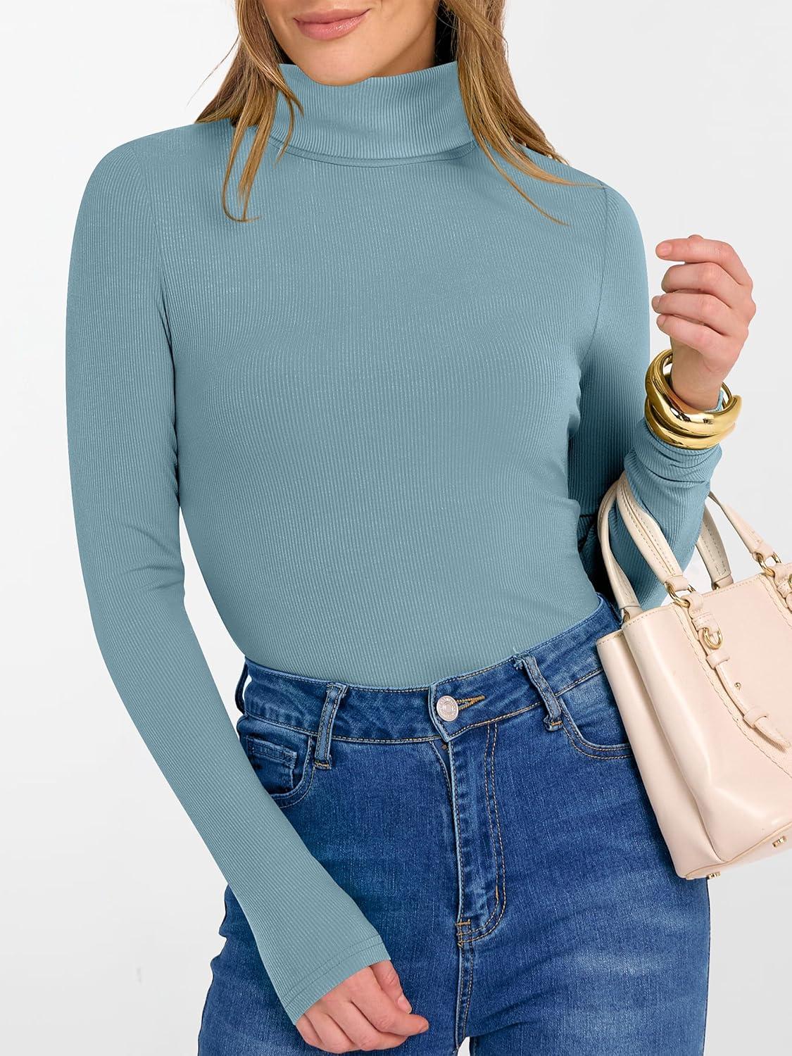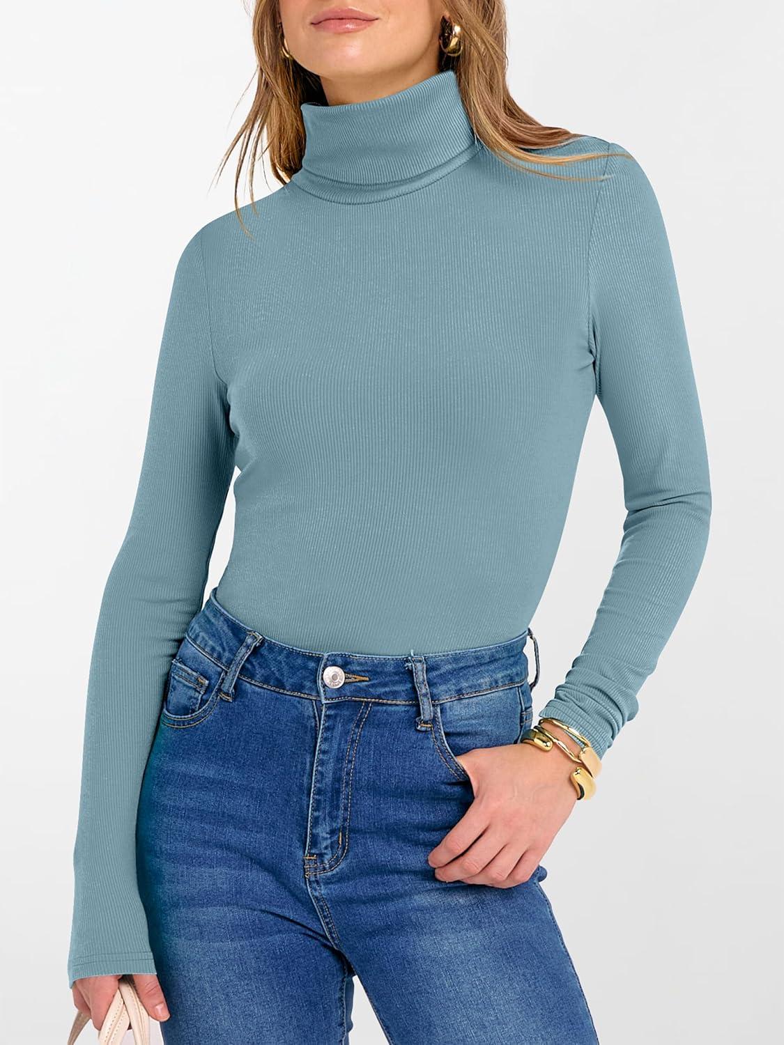 ANRABESS Women’s Long Sleeve Turtleneck Shirts Casual Ribbed Basic Tee Slim Soft Thermal Tops 2025 Fall Going Out Clothes(Grey Blue)