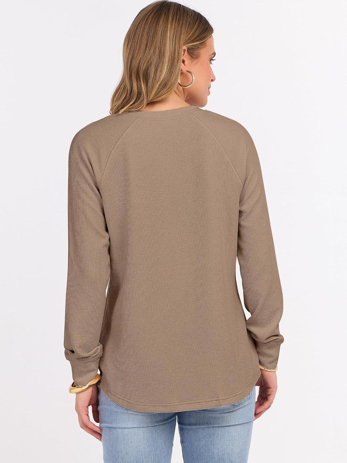ANRABESS Women's Long Sleeve Waffle Knit Shirts Dressy Casual Loose Button Up V Neck Henley Tops 2025 Fall Basic Tee Blouse(Tan)