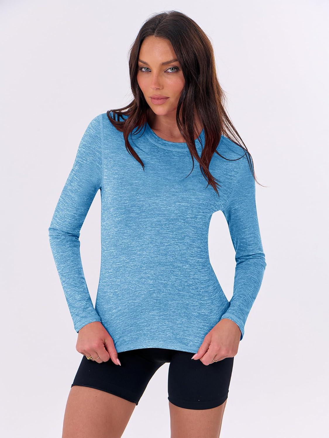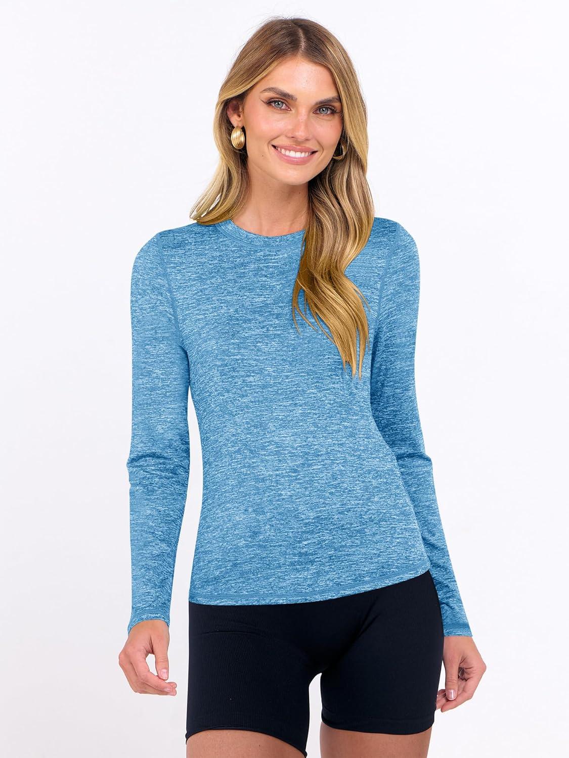 imageANRABESS Womens Long Sleeve Workout Quick Dry Fitted Yoga Gym Athletic ShirtsBlue