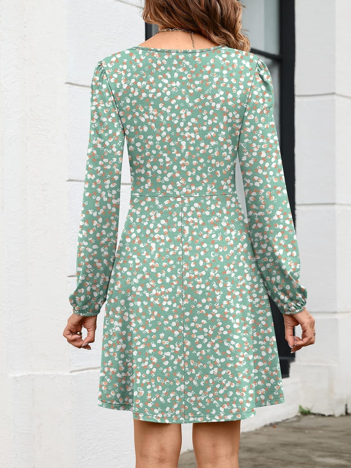 ANRABESS Womens Long Sleeve Wrap Dress Floral Flowy A-Line Casual Work Spring Vacation Short Dresses(Floral Green)