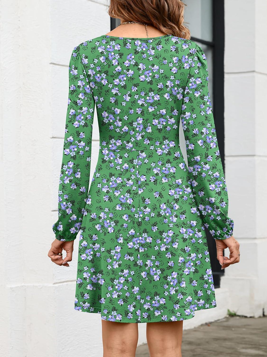 ANRABESS Womens Long Sleeve Wrap Dress Floral Flowy A-Line Casual Work Spring Vacation Short Dresses(Green White Purple Floral)