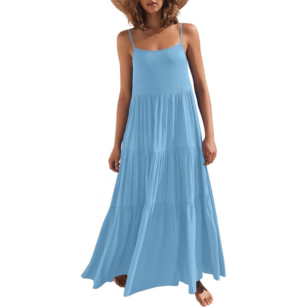 ANRABESS Women's sleeveless maxi long dress, sizes S-Xl. 100% polyester. Summer casual spaghetti strap flowy tiered boho sundress. This Is Definitely A Must-Have Fashionable Summer Dresses In Your Wardrobe.