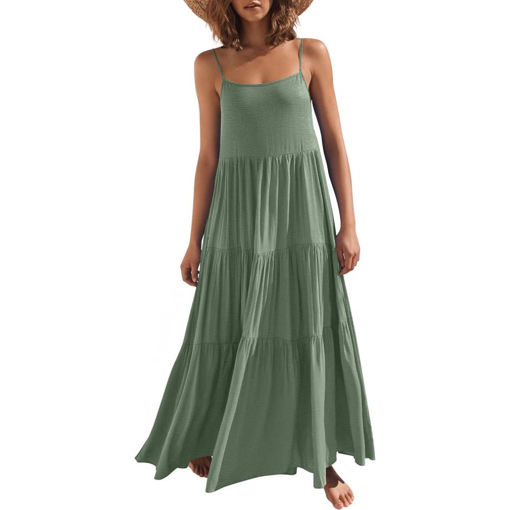 ANRABESS Womens Maxi Dress 2026 Summer Casual Sleeveless Spaghetti Strap Boho Sundress Flowy Tiered Beach Vacation Long Dress(Light Green)