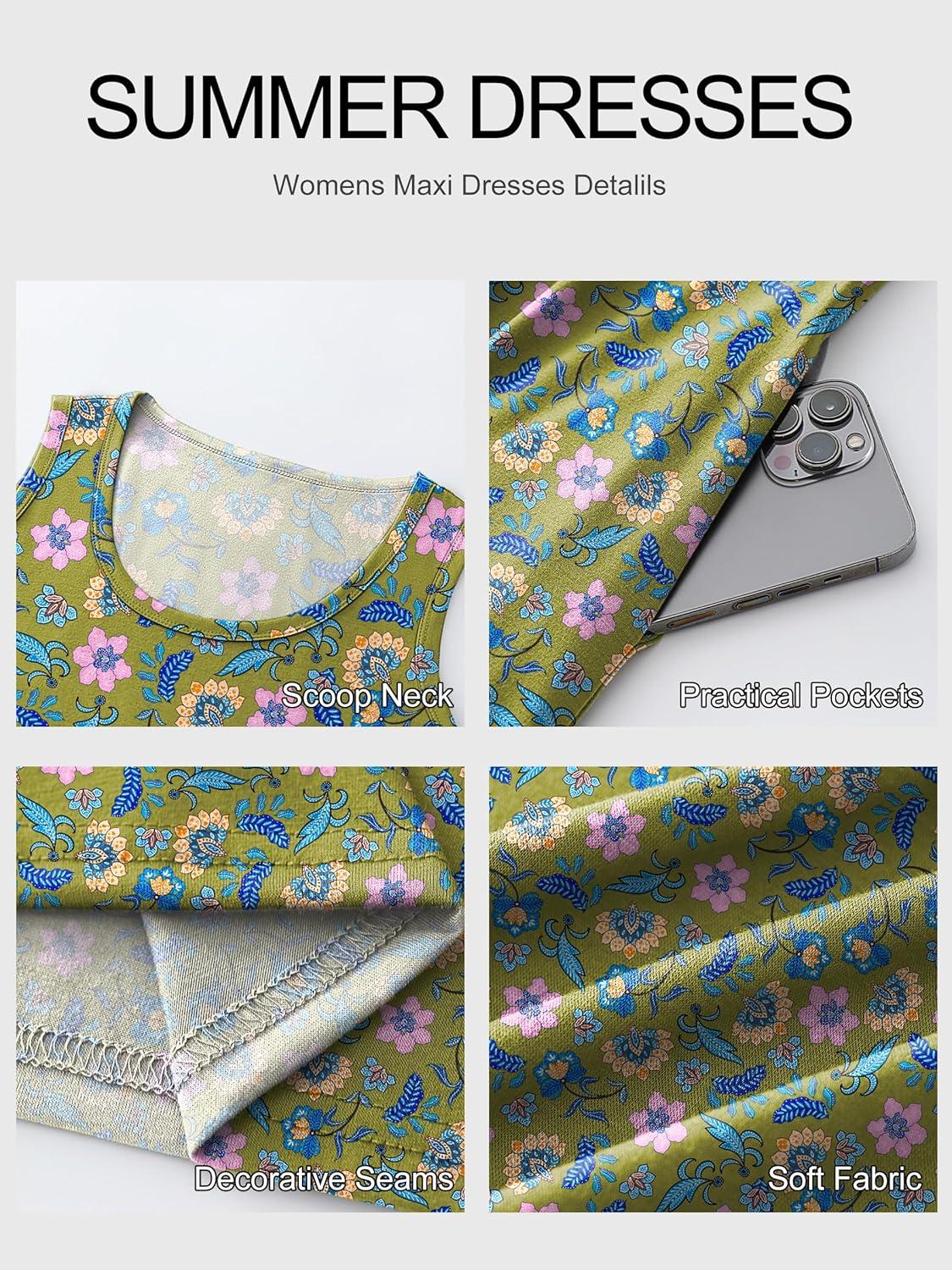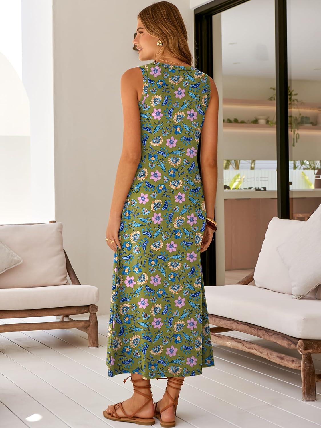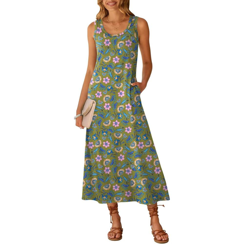 ANRABESS Womens Maxi Dresses 2026 Summer Casual Scoop Neck Sleeveless Long Tank Dress Beach Sundress Travel Vacation Clothes(Green Multi-floral Print)