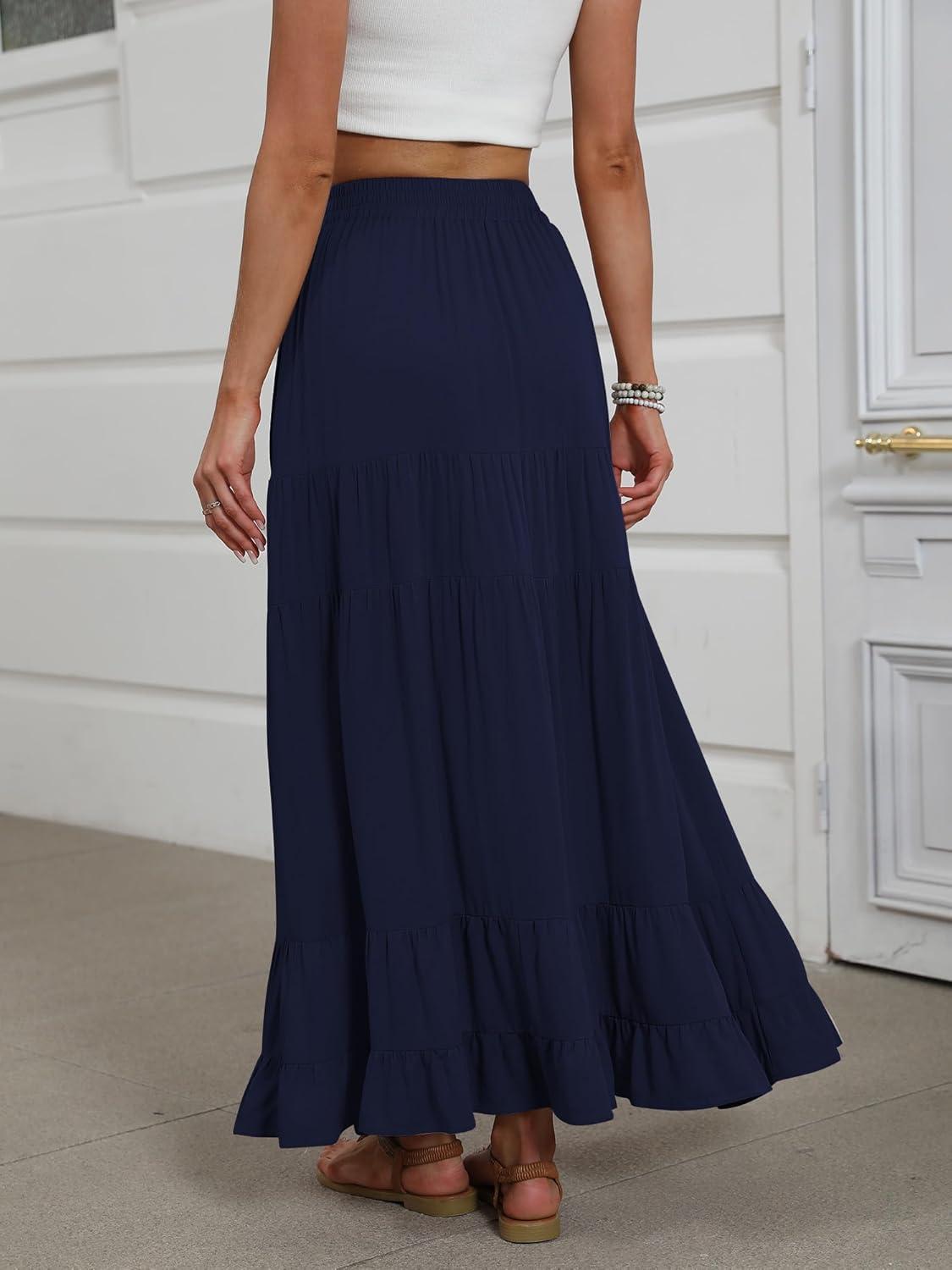 imageANRABESS Womens Maxi Skirt Elastic High Waist Swing Tiered Aline Flowy Pleated Boho Beach Vacation Long SkirtsNavy Blue