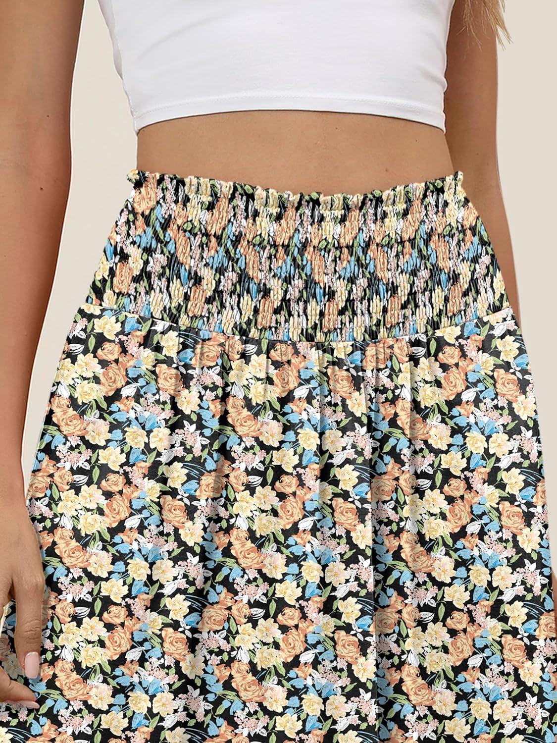 ANRABESS Women’s Maxi Skirts Summer Boho Floral High Waisted Flowy Swing Pleated Beach Long Skirt with Pockets(Floral Orange Yellow)