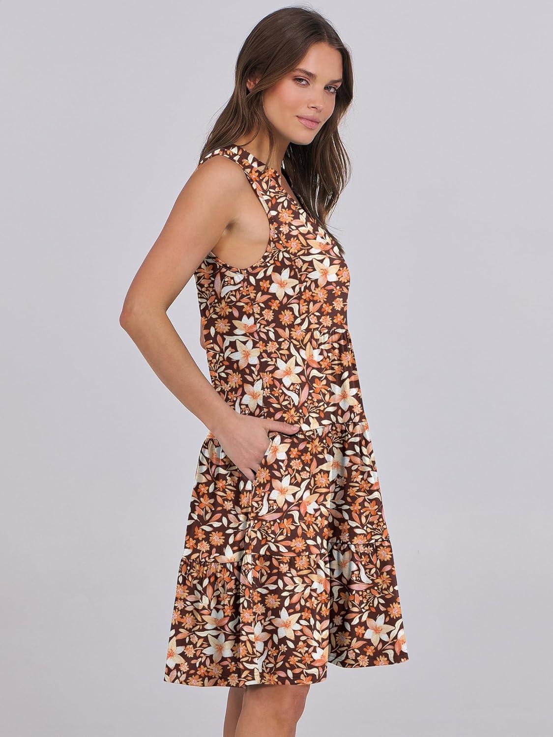 imageANRABESS Womens Mini Dresses Sleeveless V Neck Tiered Swing Going Out Beach Vacation Sundress 2025 Summer Casual OutfitsGradient Orange Floral