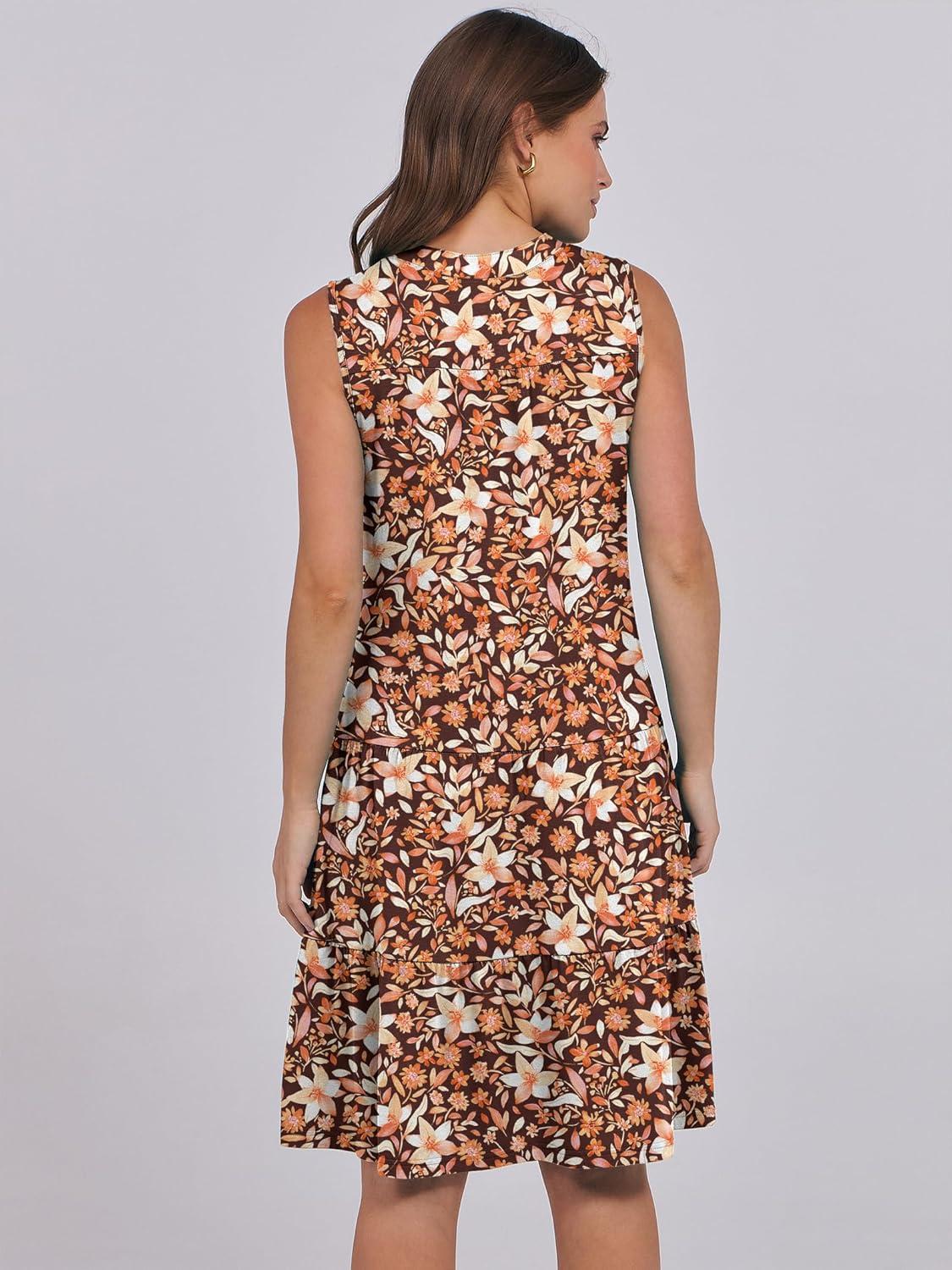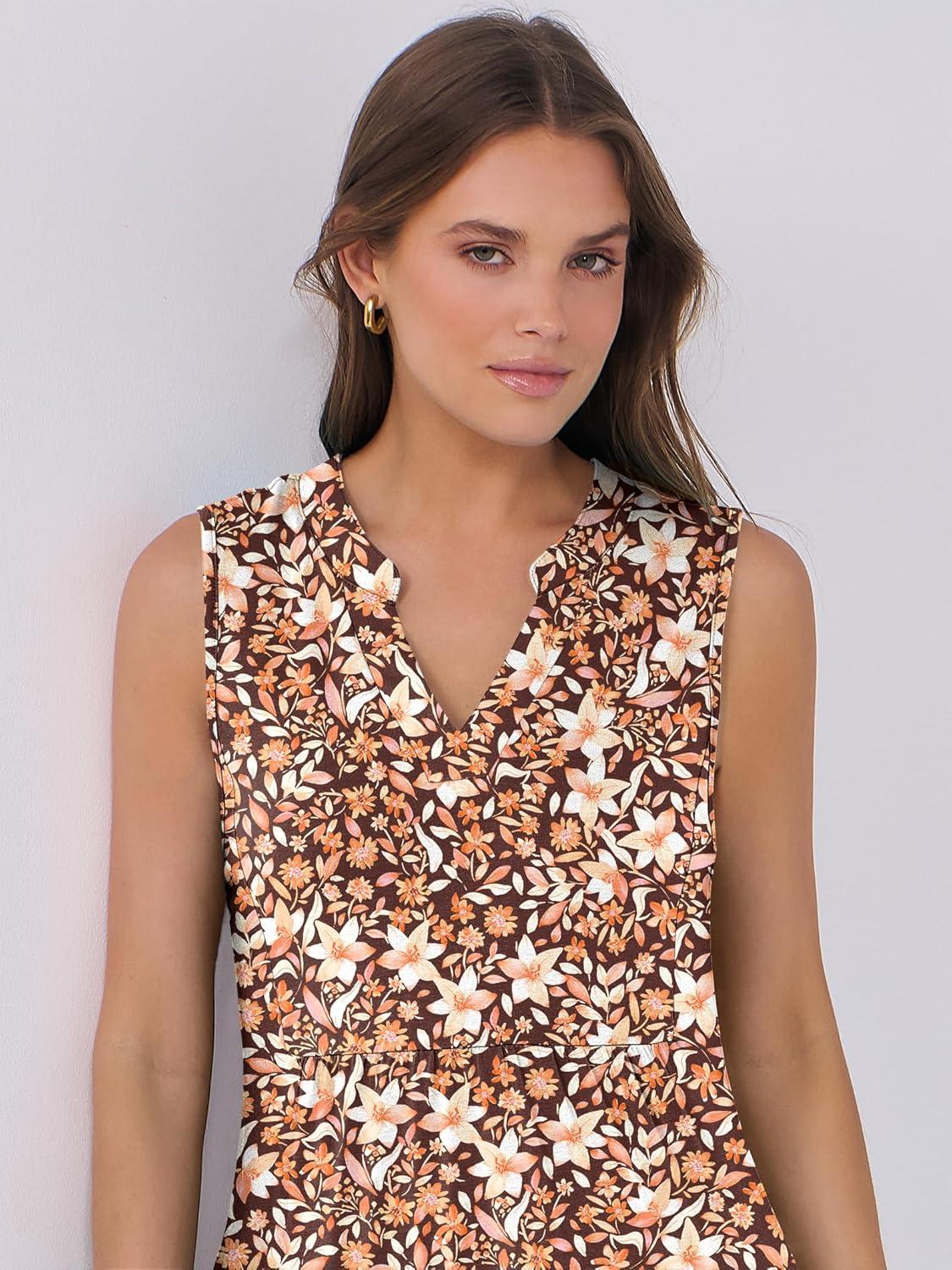 ANRABESS Womens Mini Dresses Sleeveless V Neck Tiered Swing Going Out Beach Vacation Sundress 2025 Summer Casual Outfits(Gradient Orange Floral)