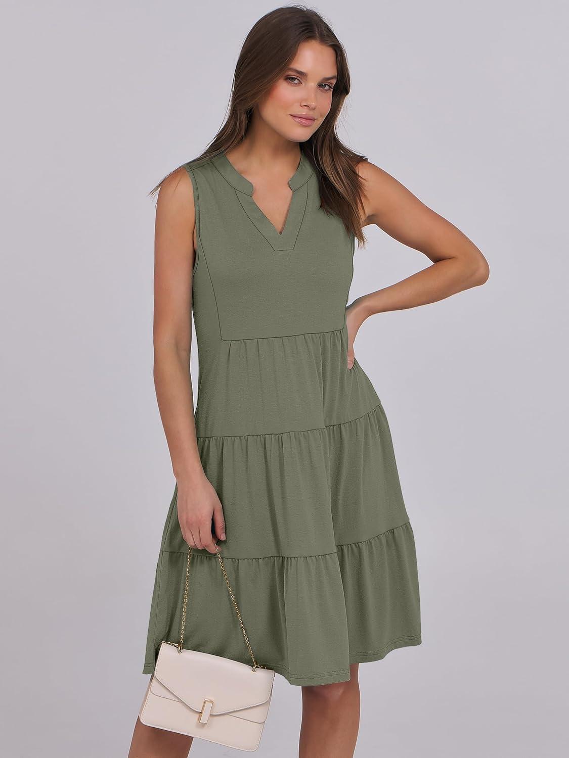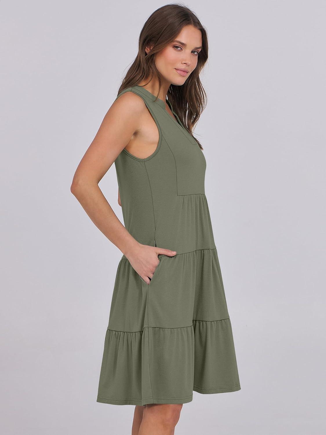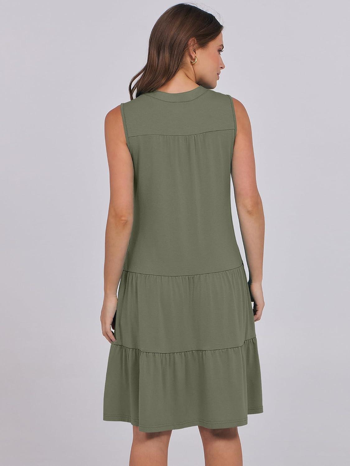 ANRABESS Womens Mini Dresses Sleeveless V Neck Tiered Swing Going Out Beach Vacation Sundress 2025 Summer Casual Outfits(Olive)