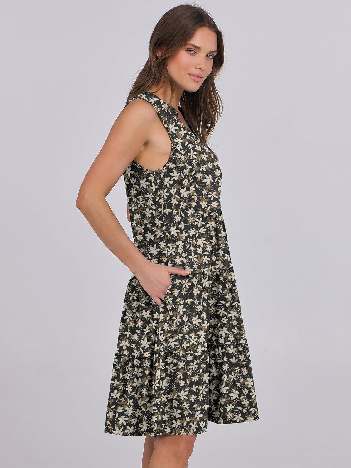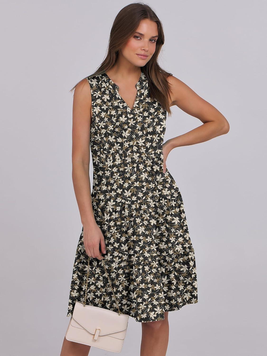 ANRABESS Womens Mini Dresses Sleeveless V Neck Tiered Swing Going Out Beach Vacation Sundress 2026 Summer Casual Outfits(Black White Floral)