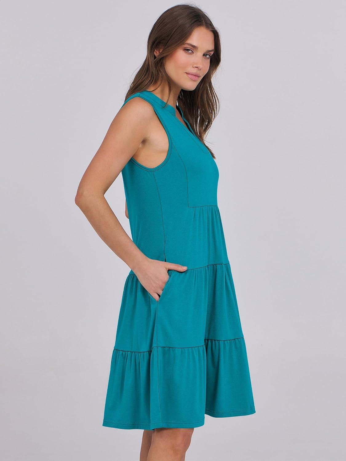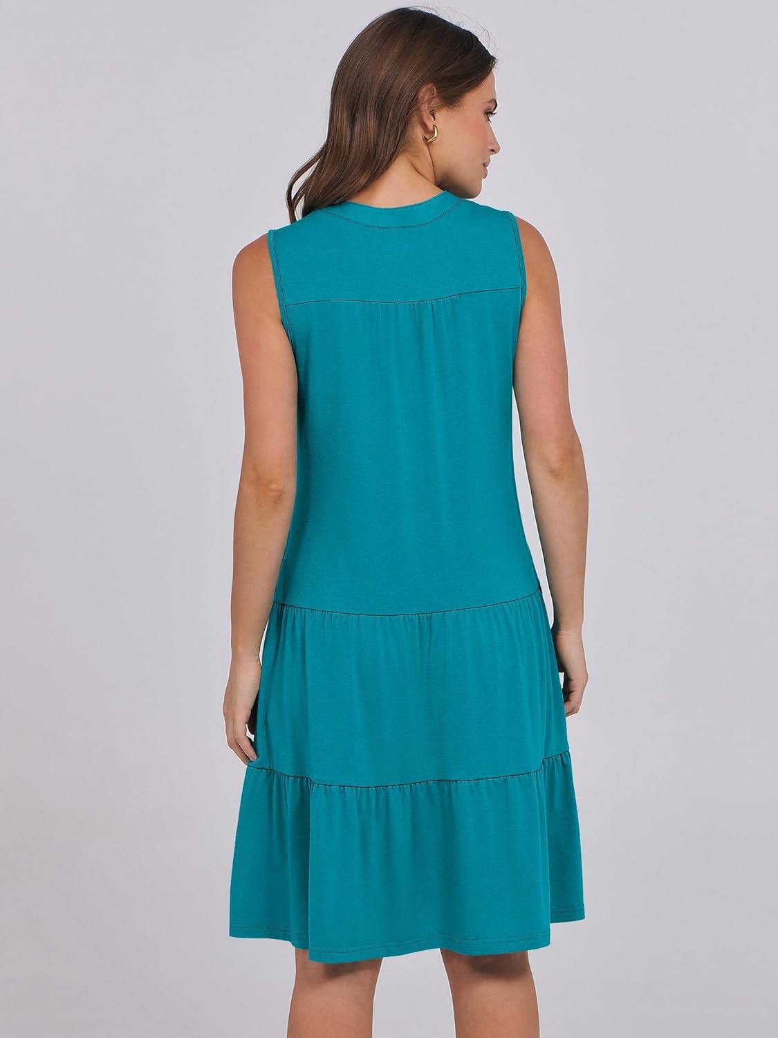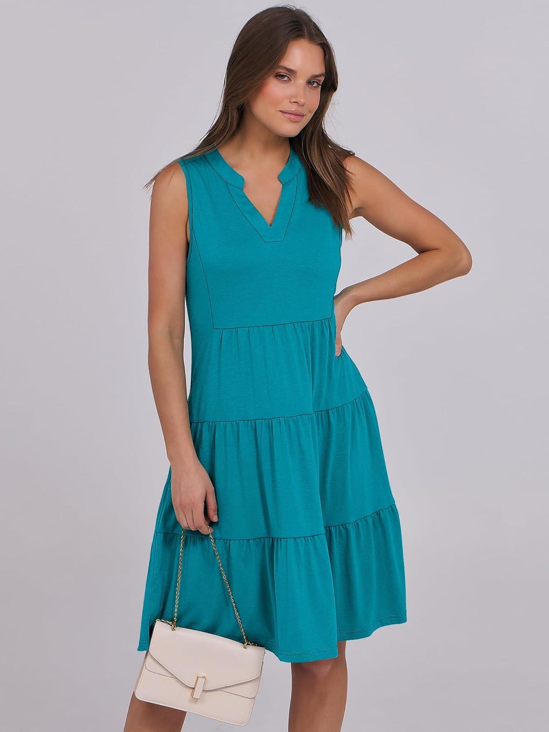 ANRABESS Womens Mini Dresses Sleeveless V Neck Tiered Swing Going Out Beach Vacation Sundress 2026 Summer Casual Outfits(Lake Green)