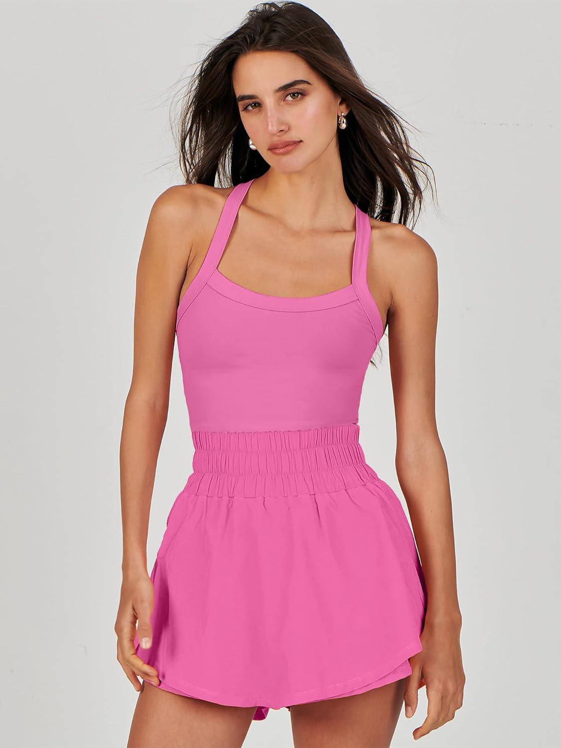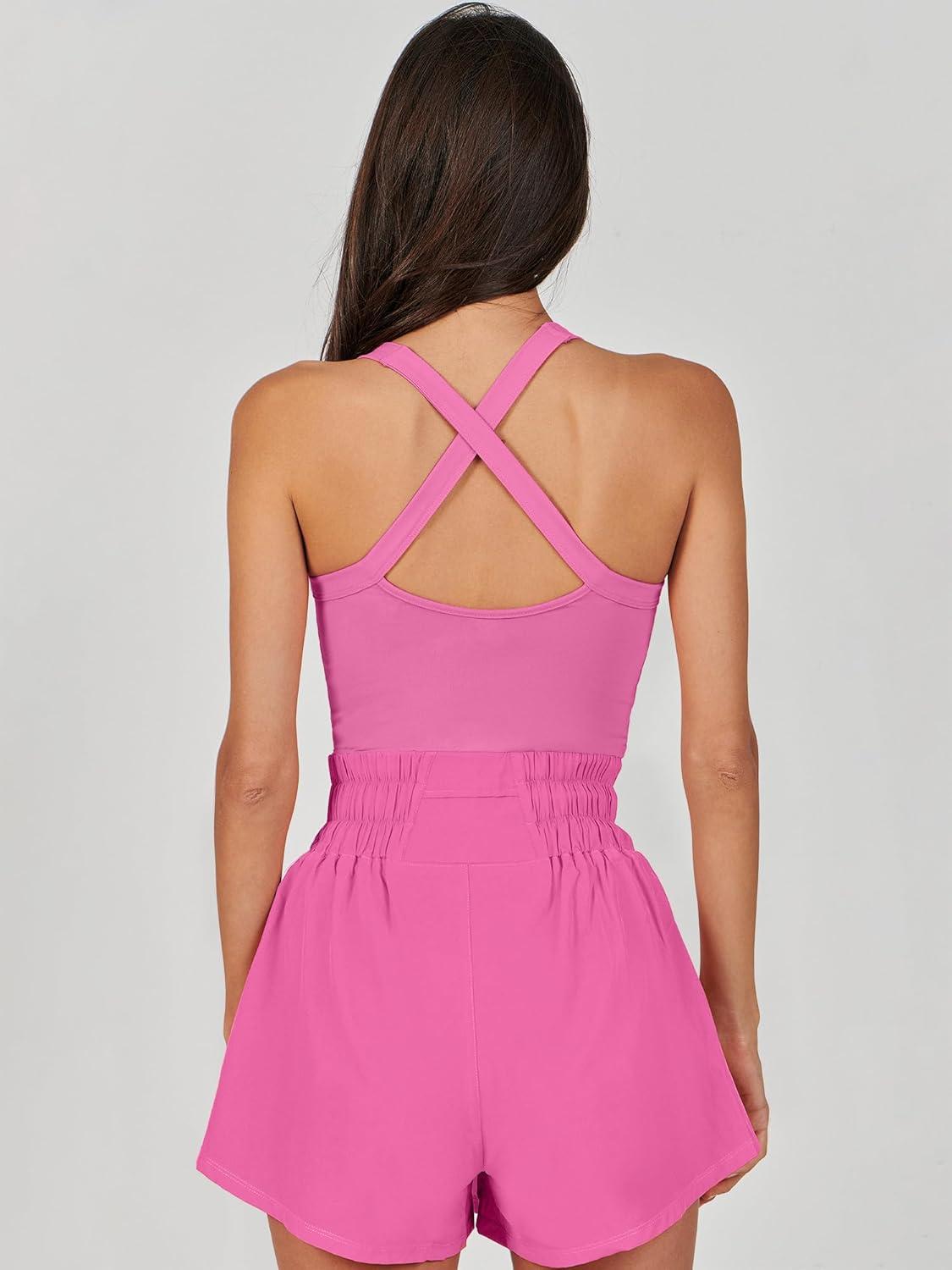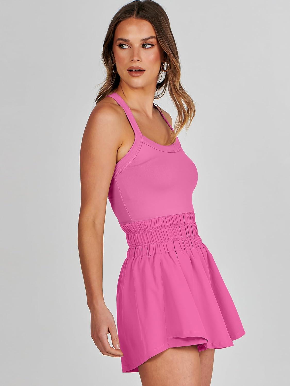 imageANRABESS Womens Mini Tennis Dresses Skort Summer Sleeveless One Piece Workout Romper Dress with Shorts Athletic 2025 OutfitHot Pink