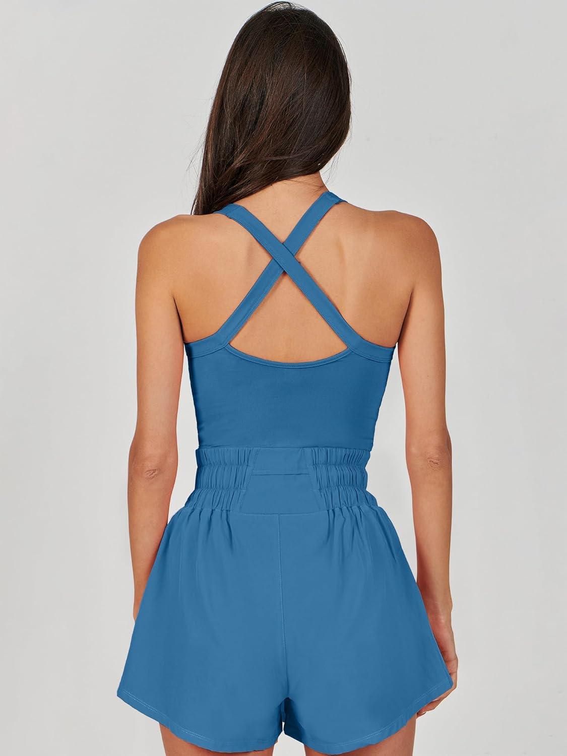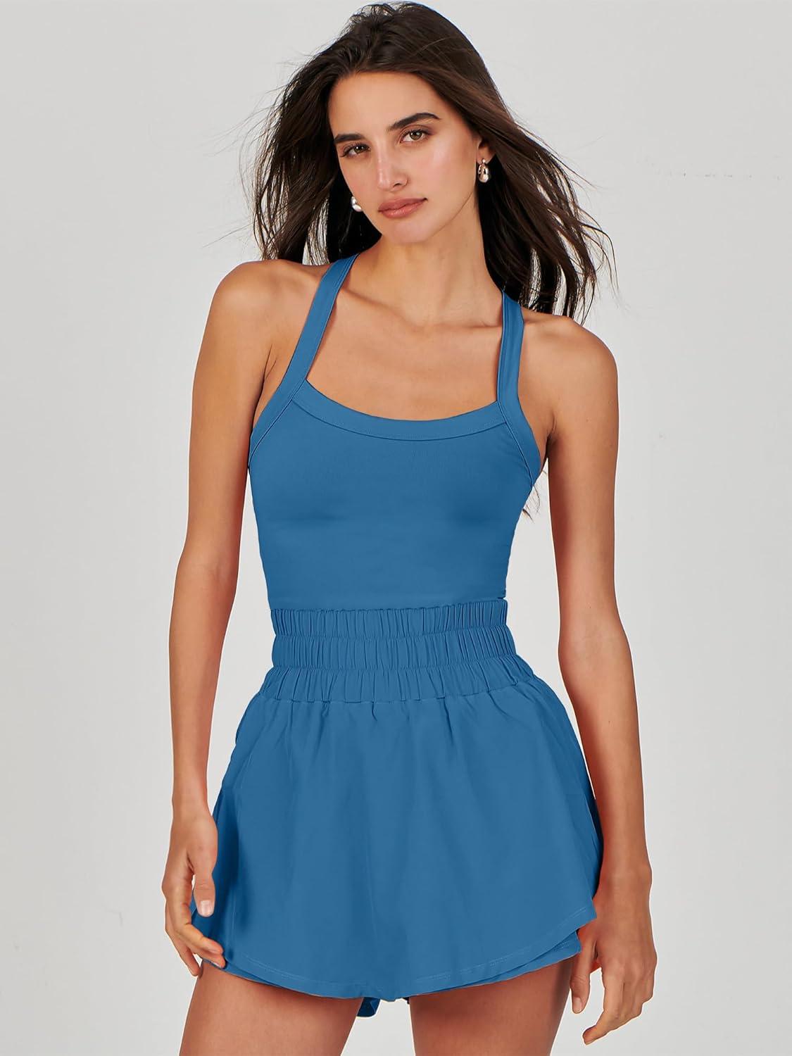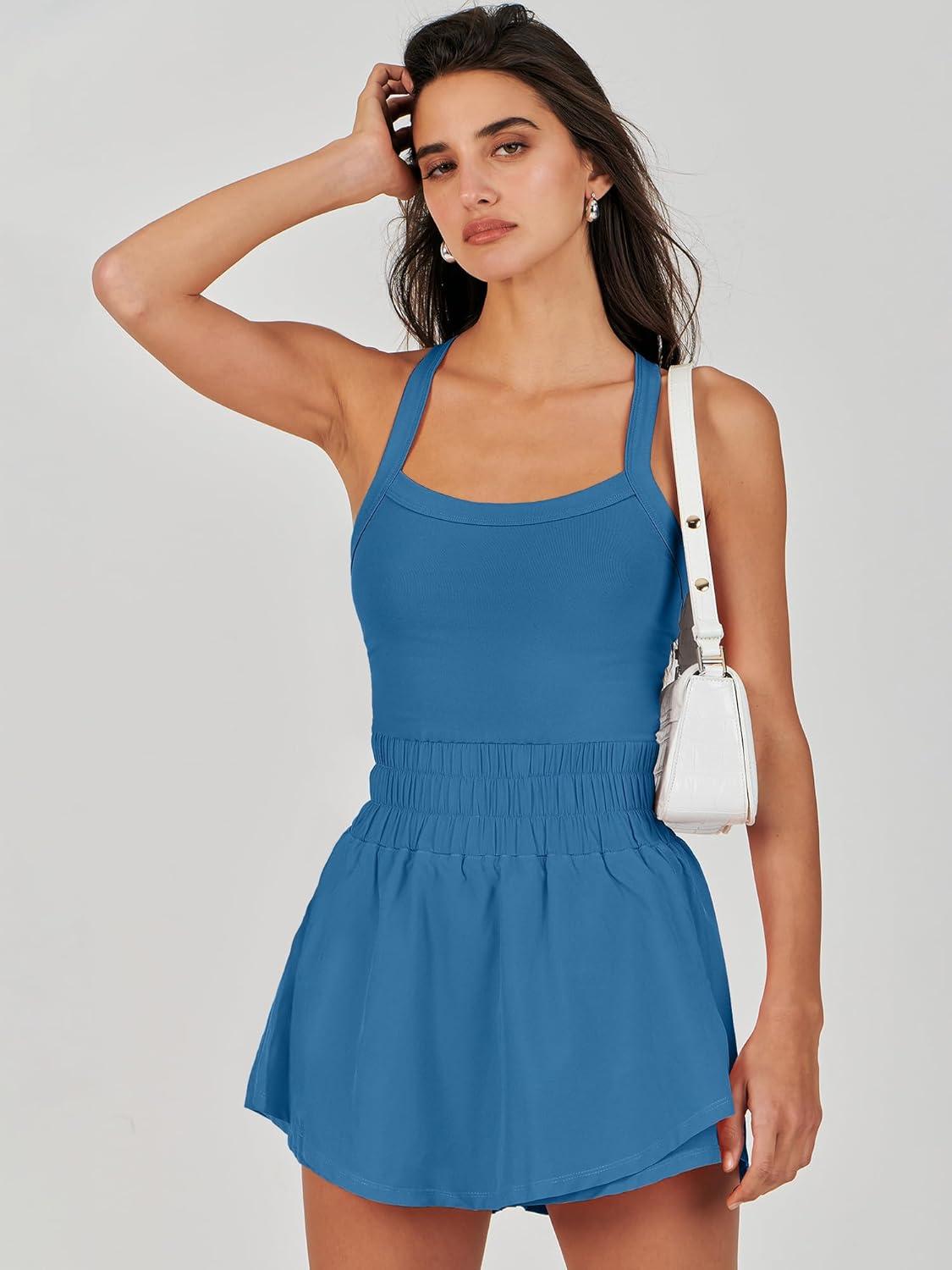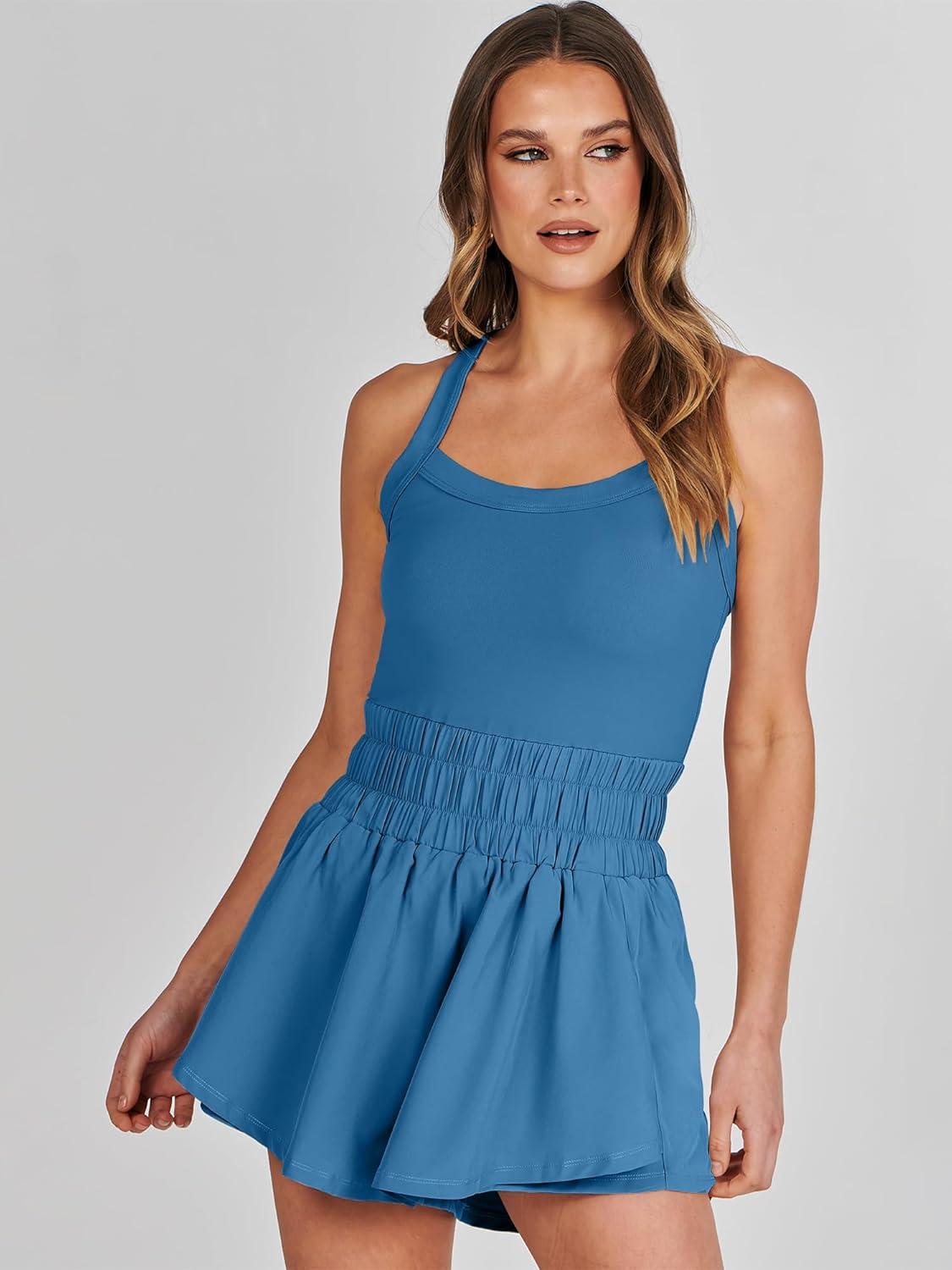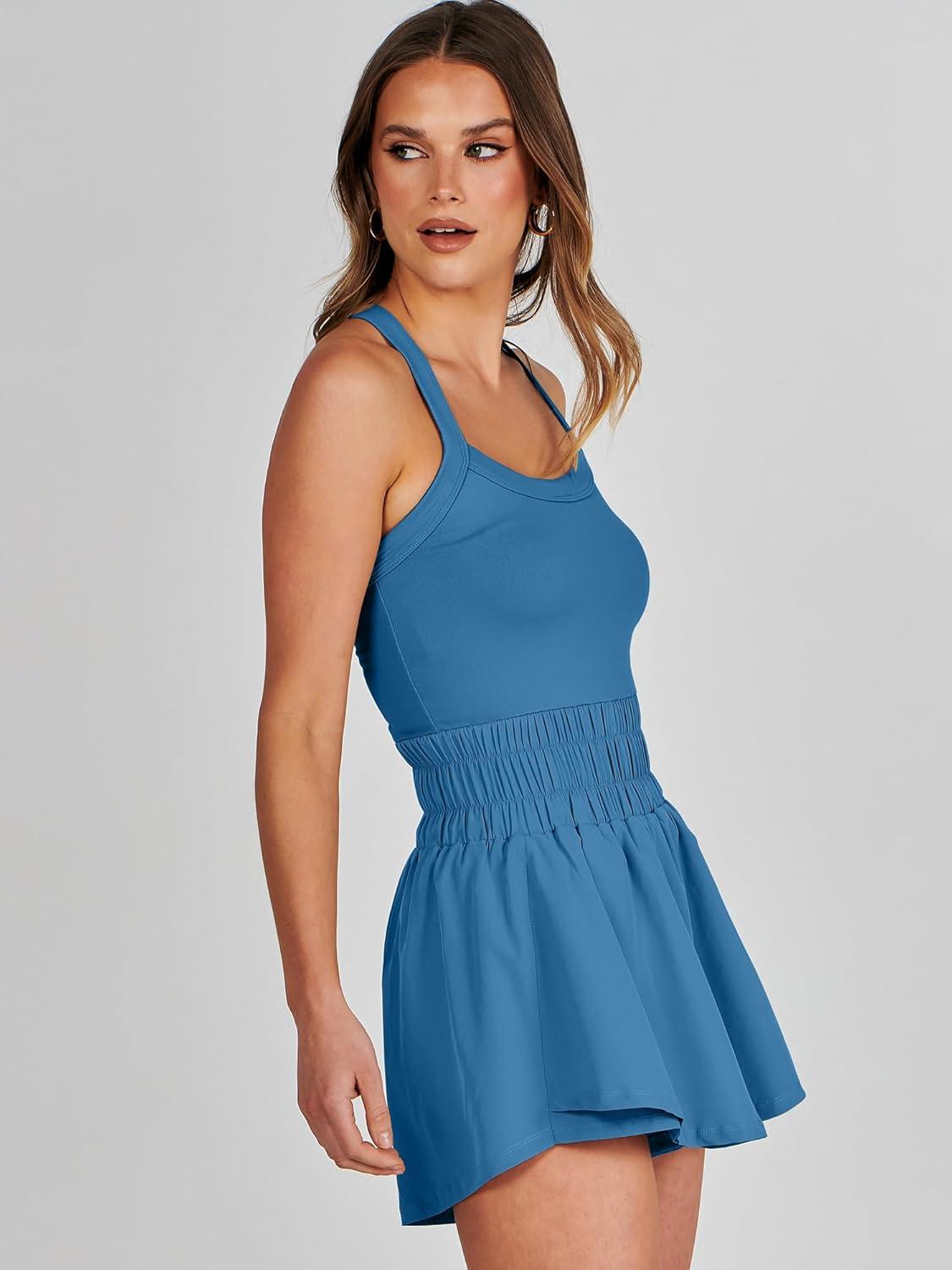 ANRABESS Womens Mini Tennis Dresses Skort Summer Sleeveless One Piece Workout Romper Dress with Shorts Athletic 2026 Outfit(Blue)