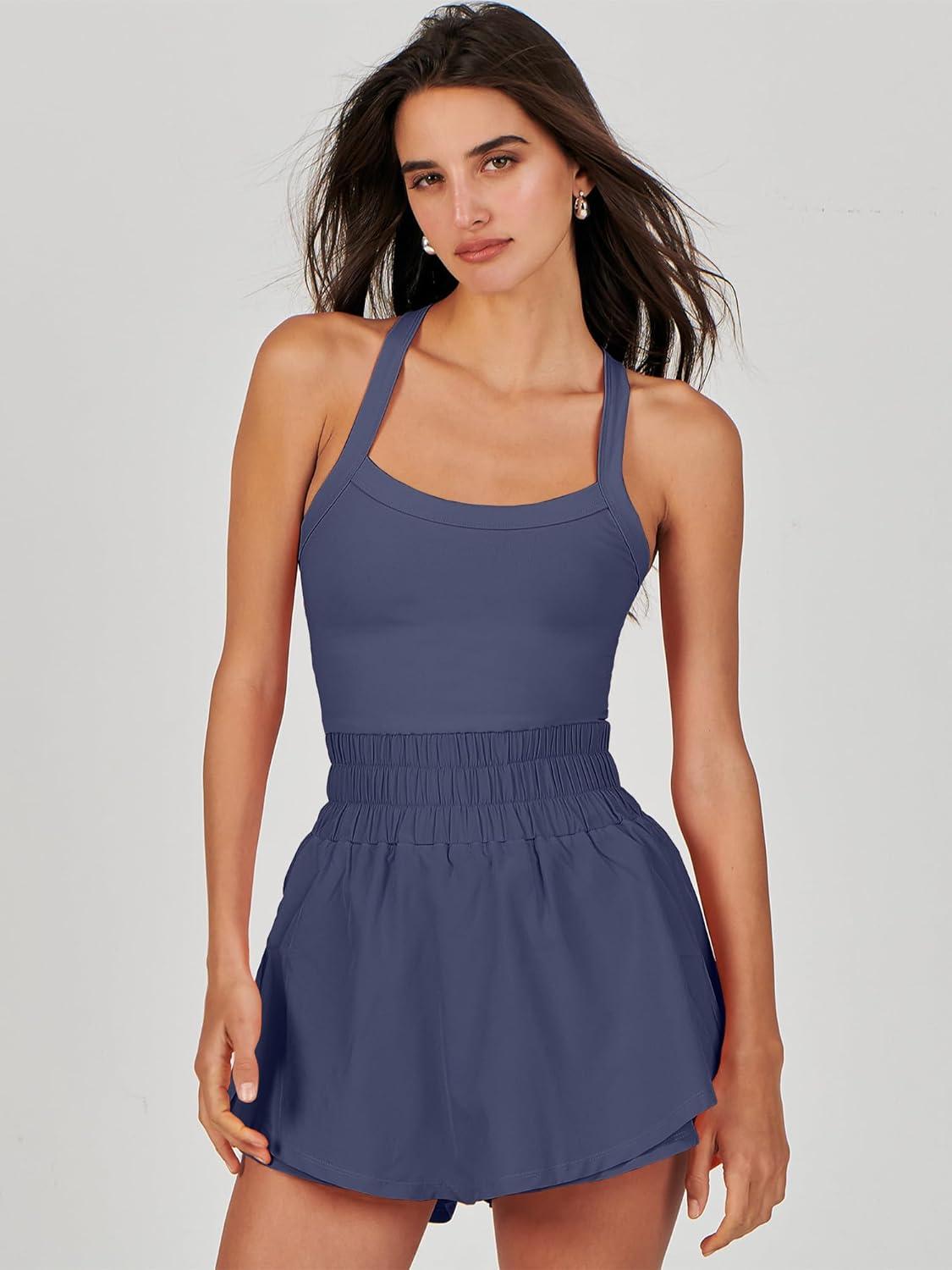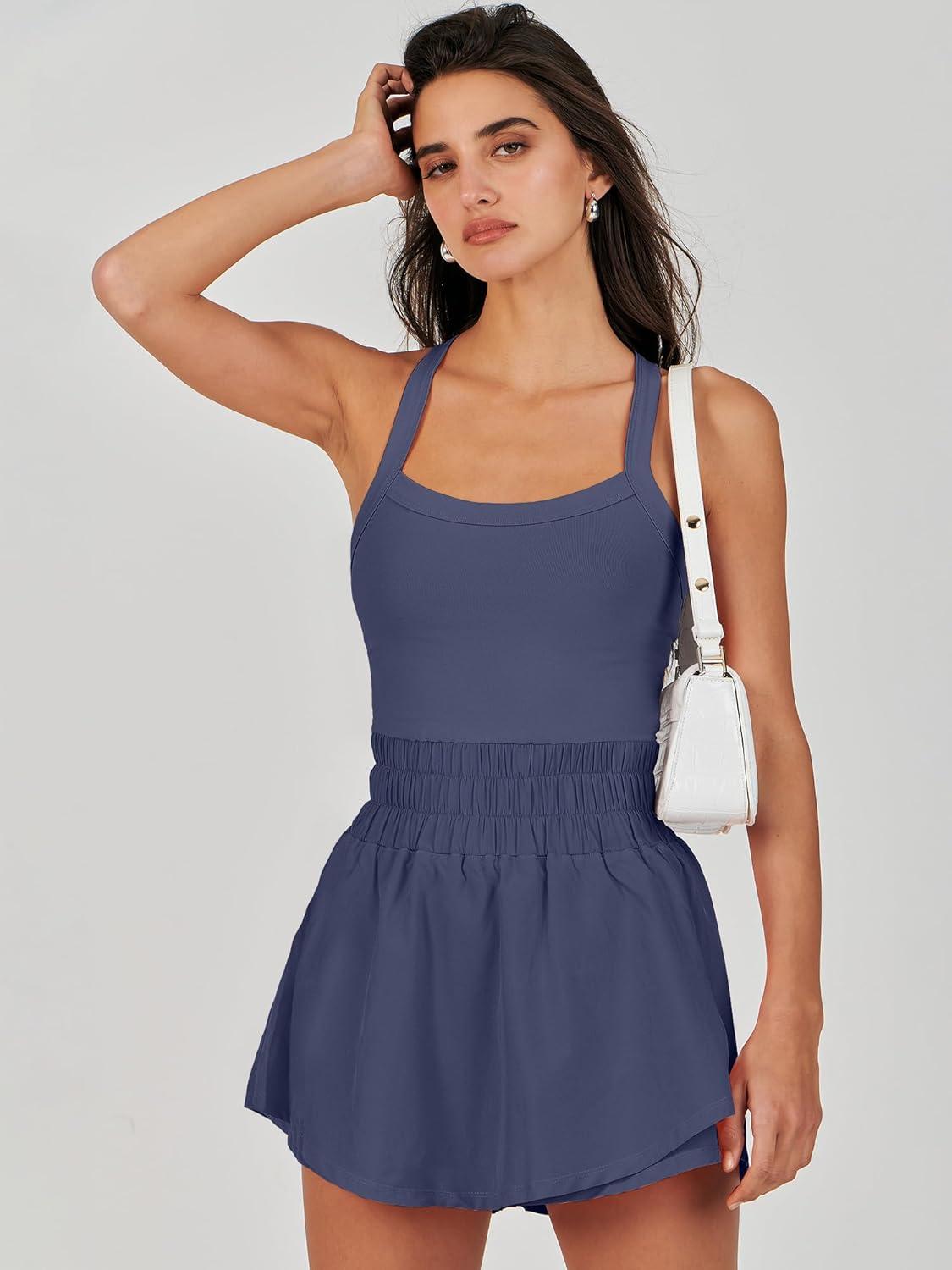 ANRABESS Womens Mini Tennis Dresses Skort Summer Sleeveless One Piece Workout Romper Dress with Shorts Athletic 2026 Outfit(Gray Blue)