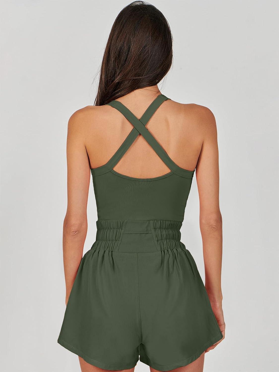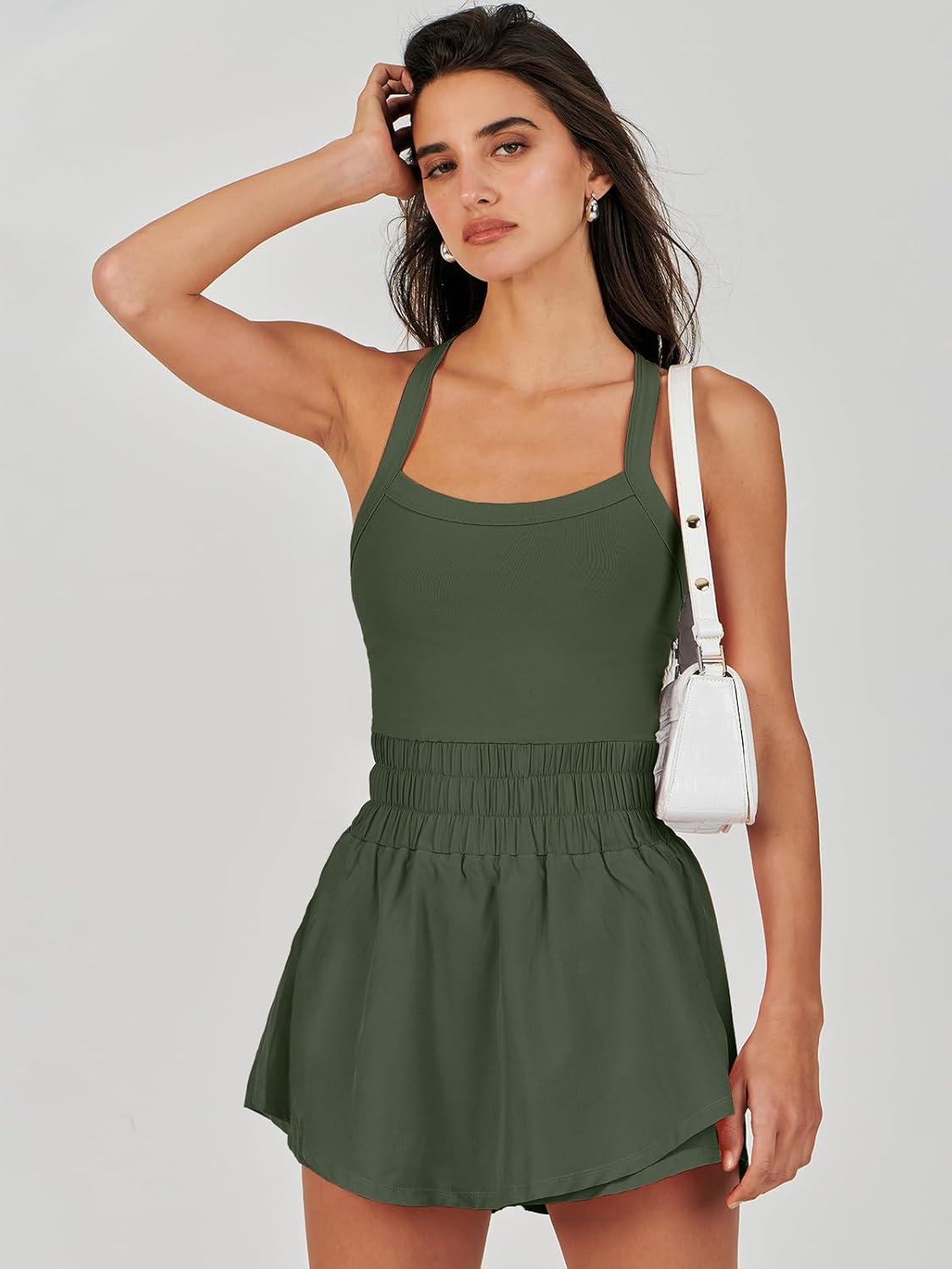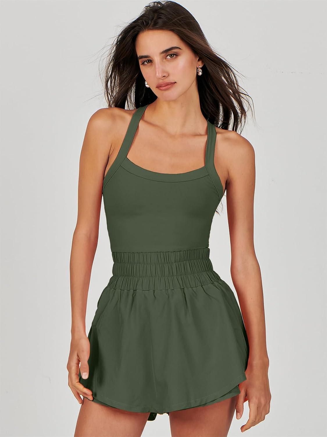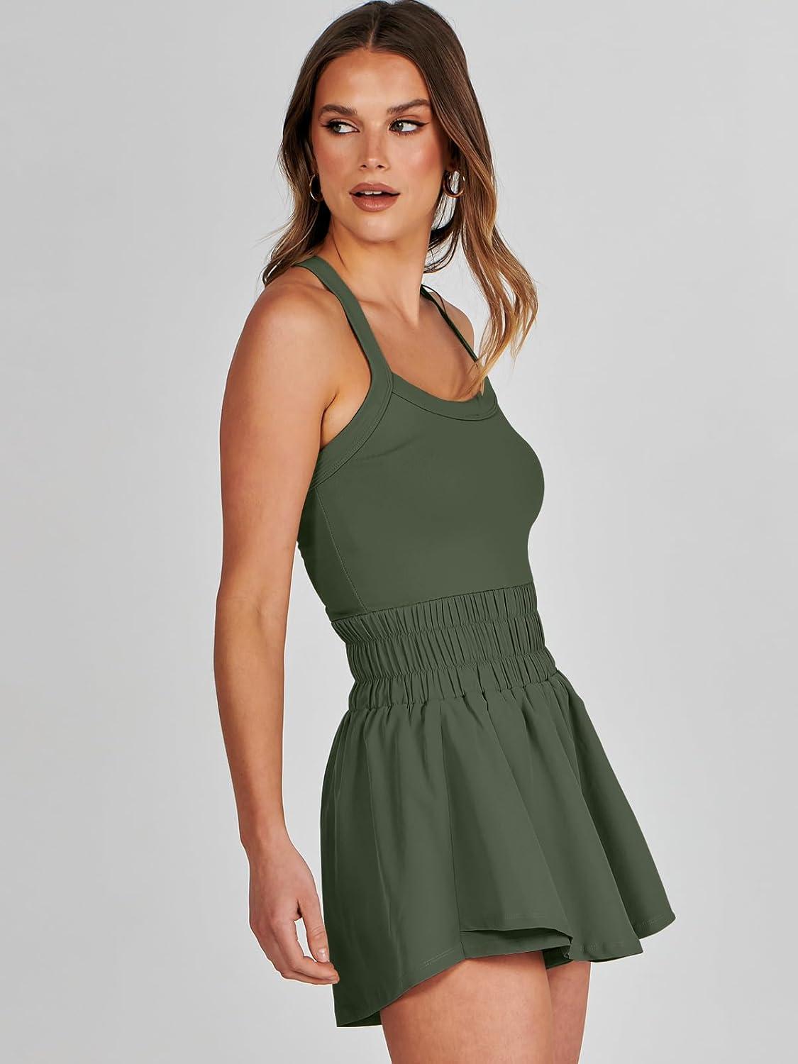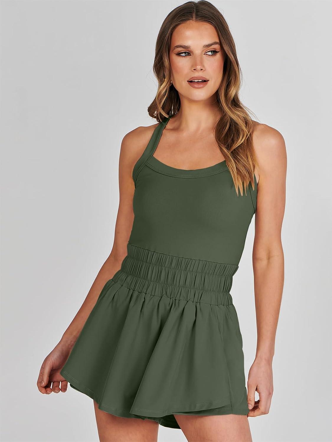 ANRABESS Womens Mini Tennis Dresses Skort Summer Sleeveless One Piece Workout Romper Dress with Shorts Athletic 2026 Outfit(Olive)