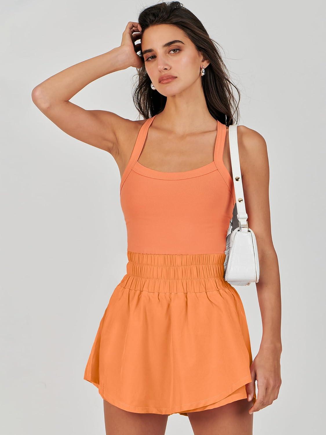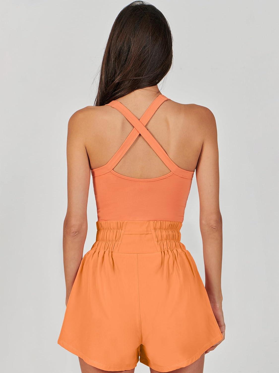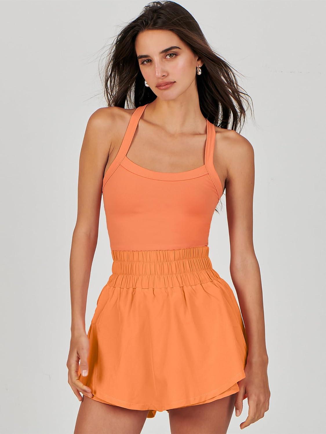 ANRABESS Womens Mini Tennis Dresses Skort Summer Sleeveless One Piece Workout Romper Dress with Shorts Athletic 2026 Outfit(Orange)