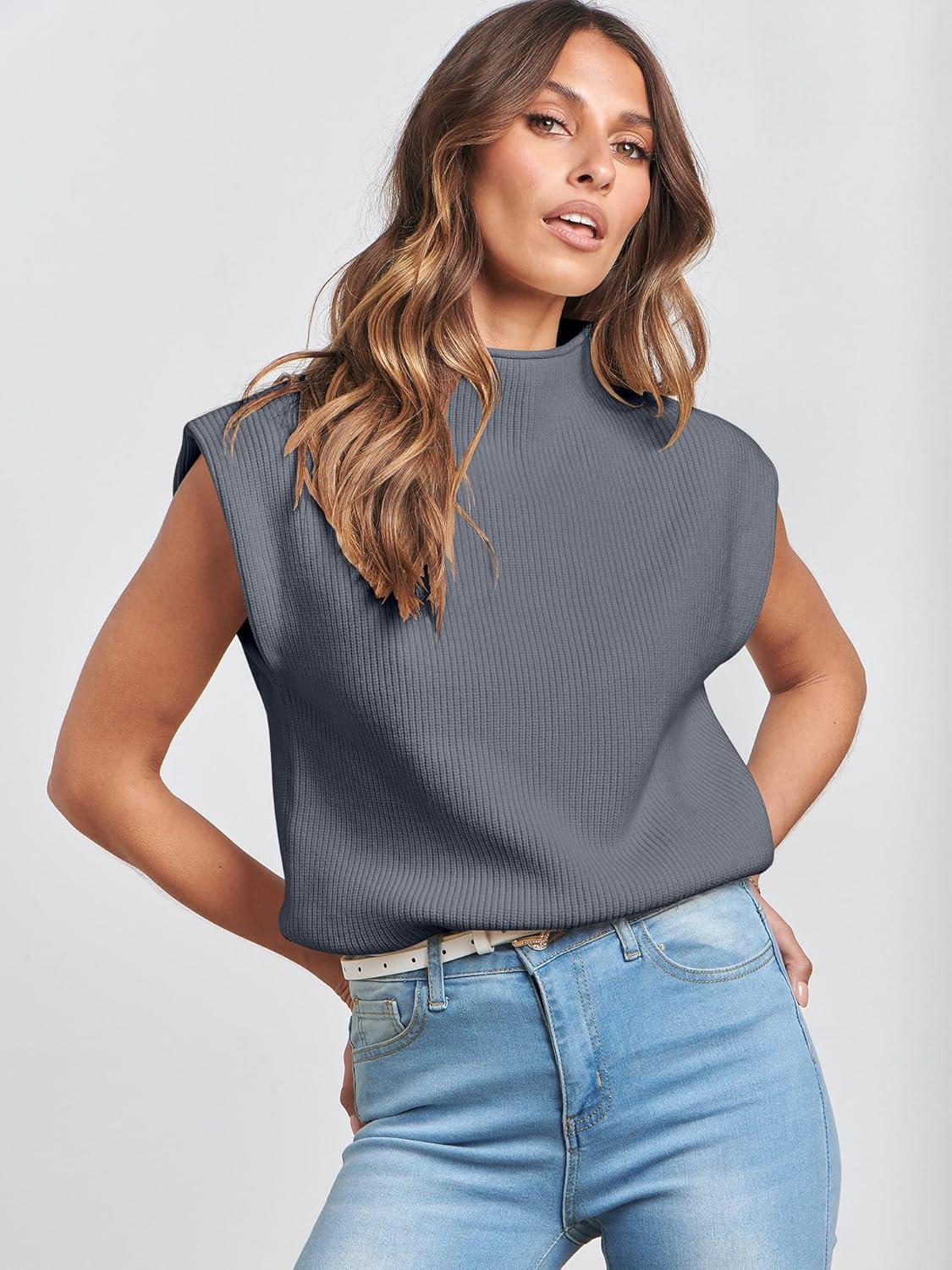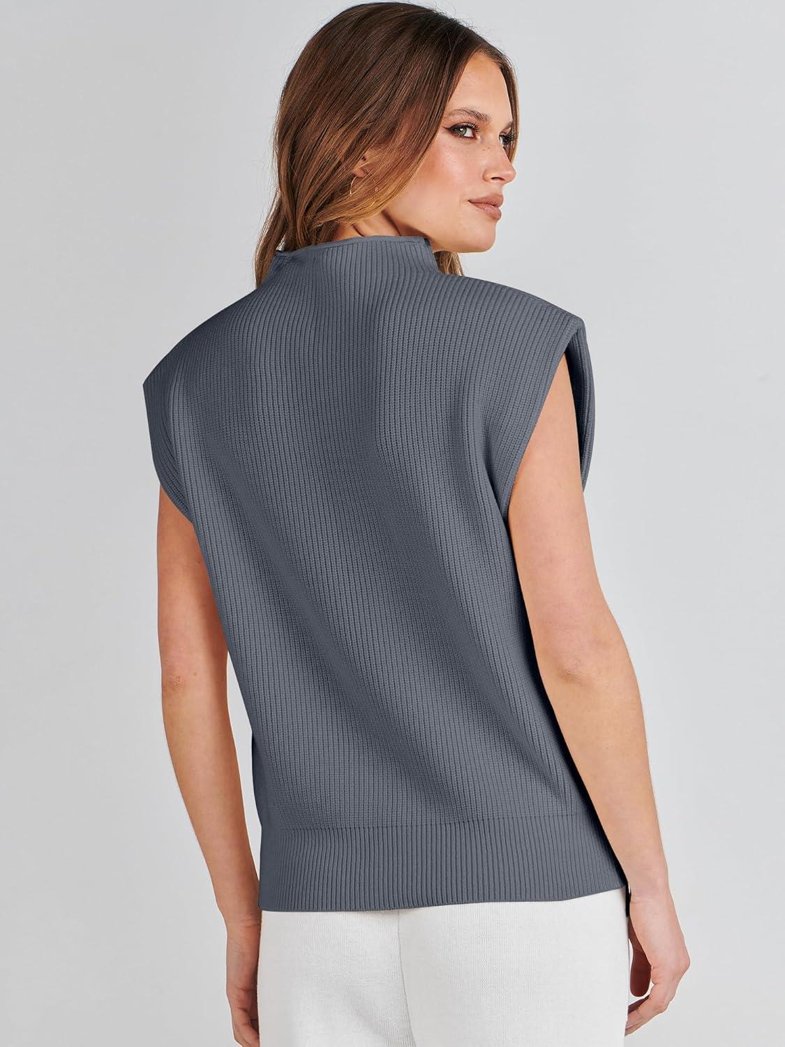 ANRABESS Women's Mock Neck Sleeveless Sweater Vest Casual Cap Sleeve Knit Pullover Tank Tops 2026 Fall Clothes(Deep Grey)
