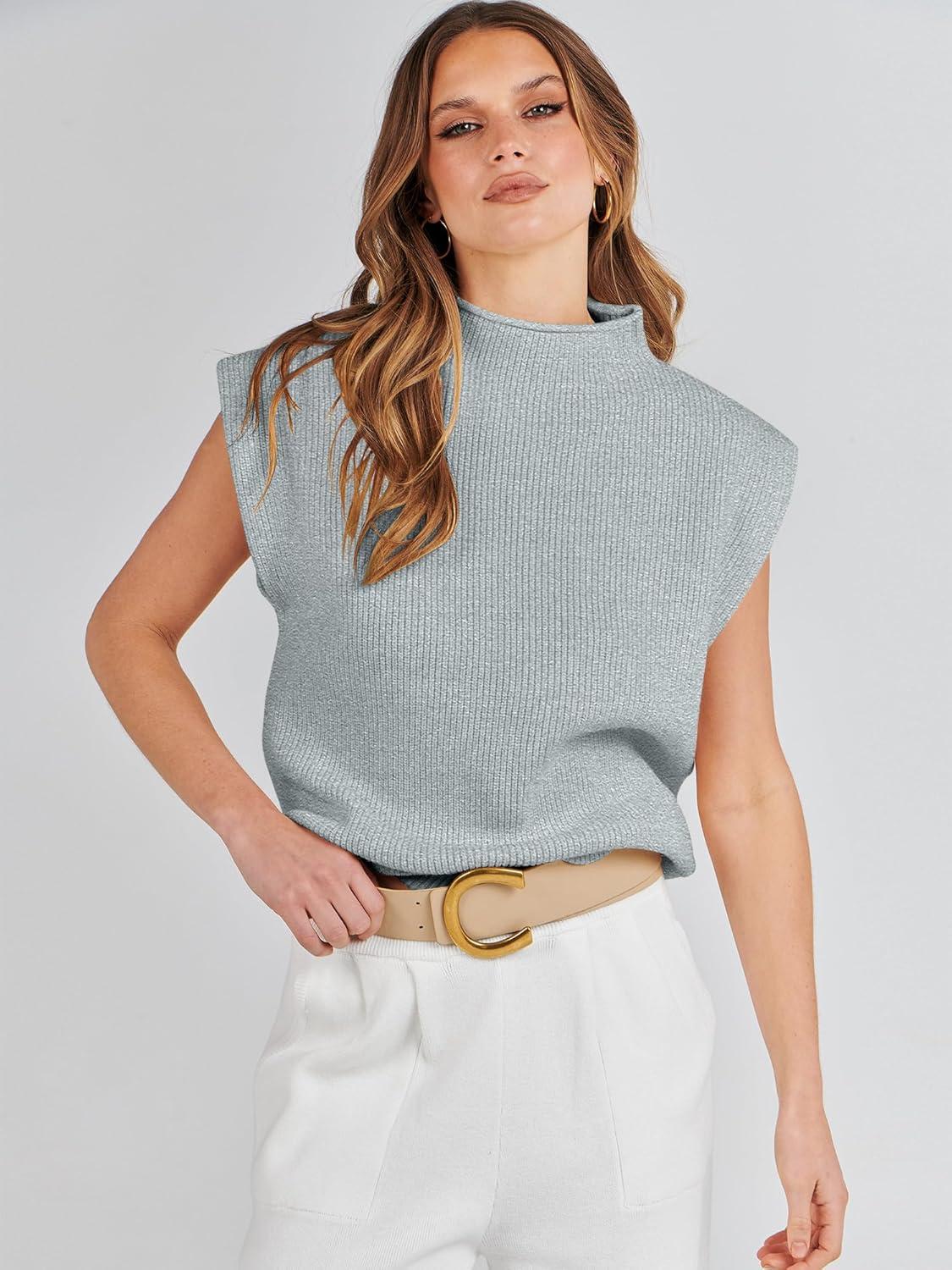 ANRABESS Women's Mock Neck Sleeveless Sweater Vest Casual Cap Sleeve Knit Pullover Tank Tops 2026 Fall Clothes(Grey)
