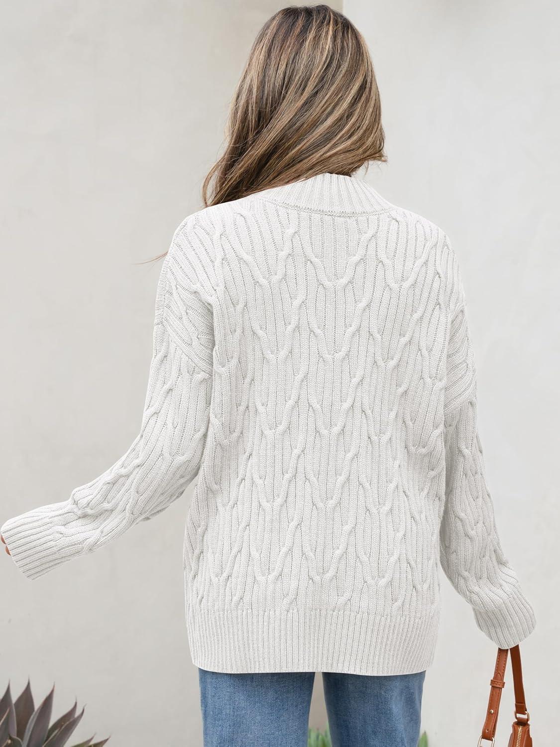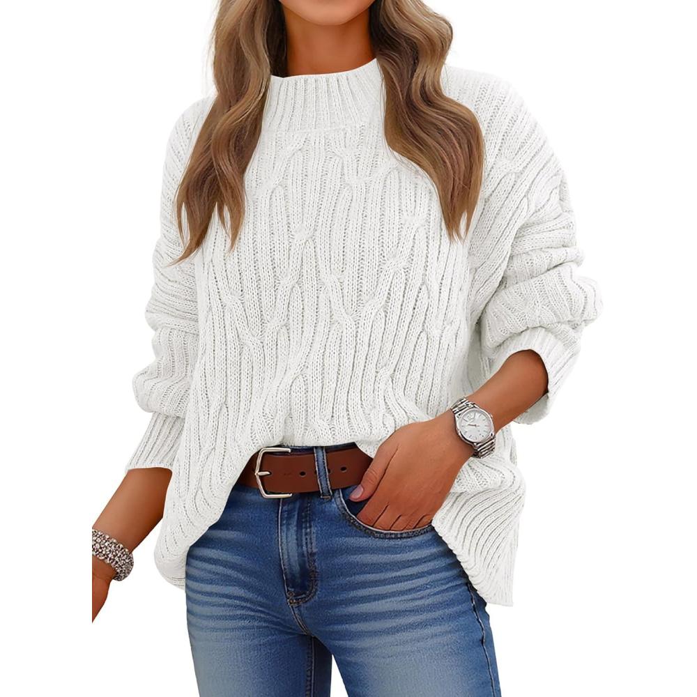 ANRABESS Womens Mock Turtle Neck Sweaters Cable Knit Long Sleeve 2026 Fall Winter Tunic Sweater(White)