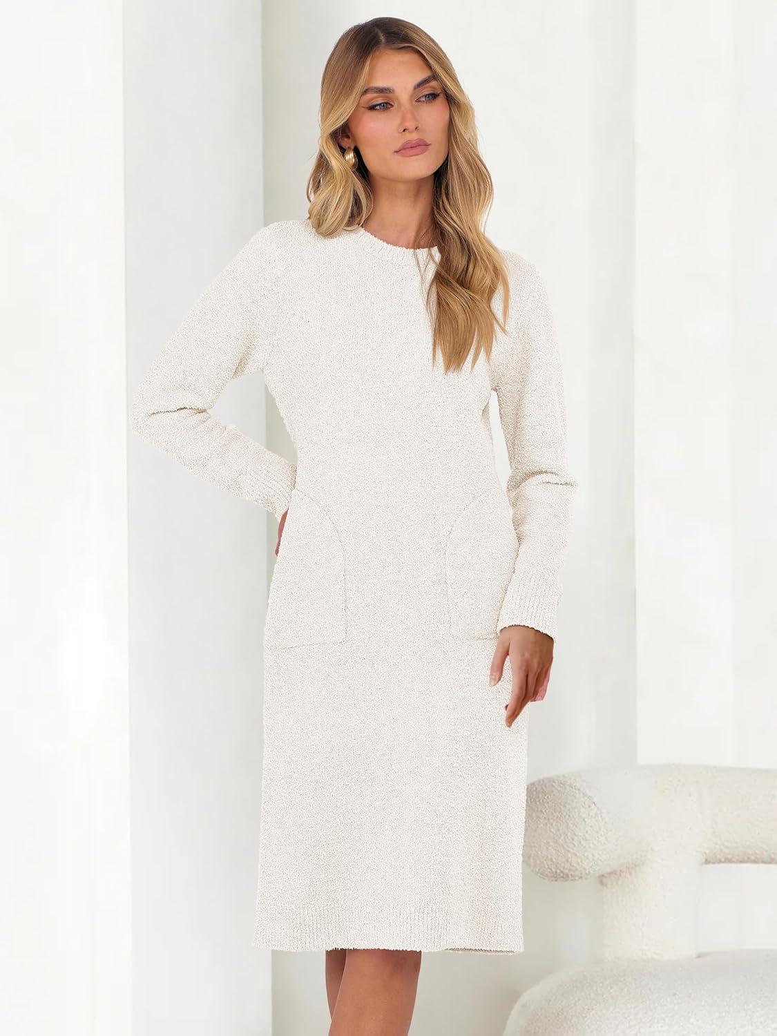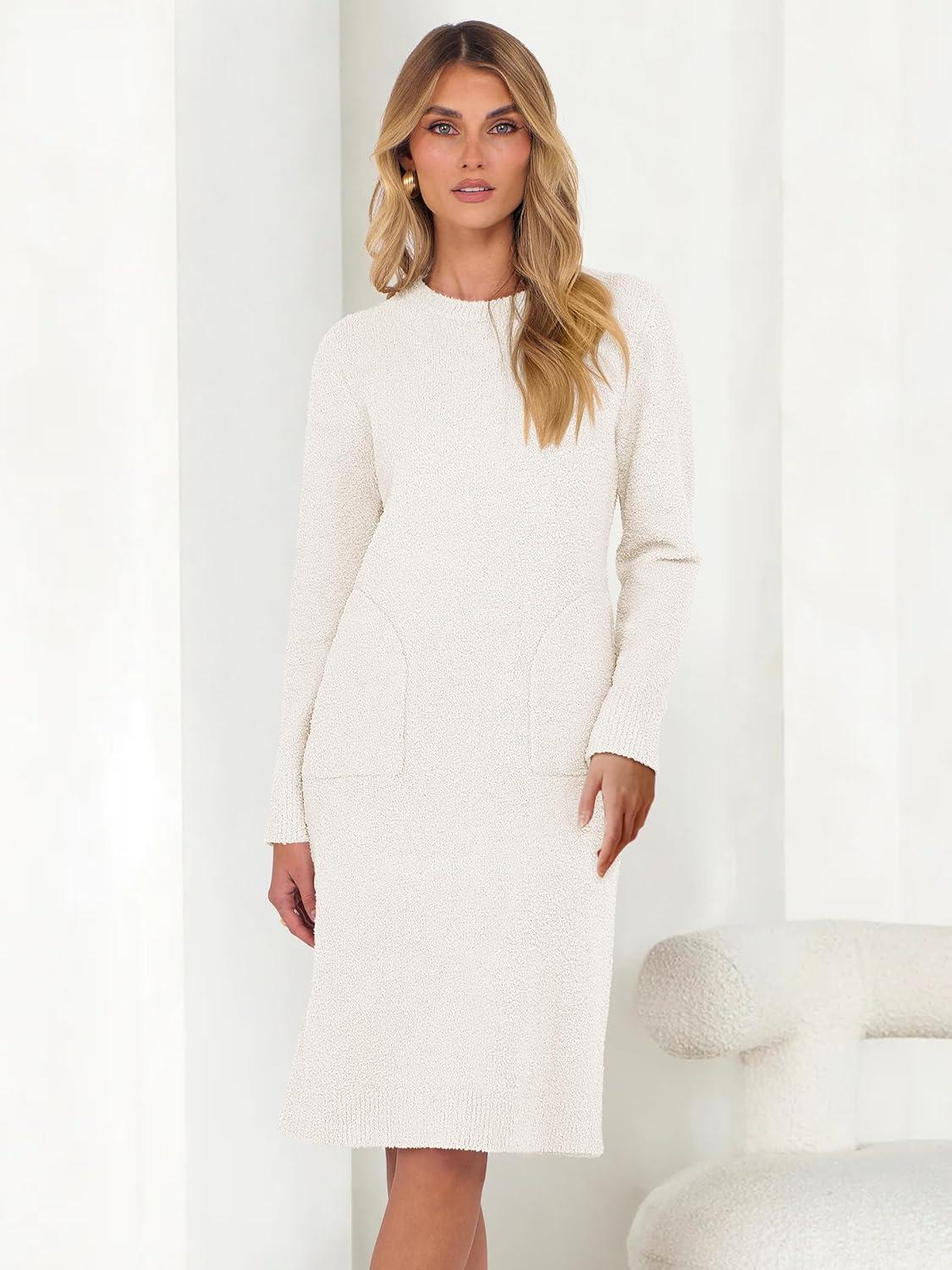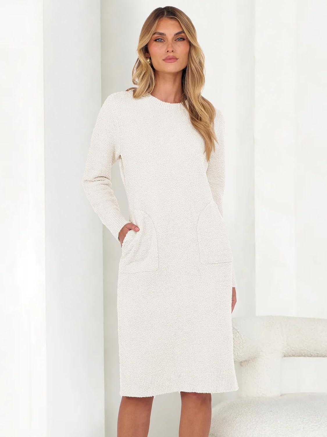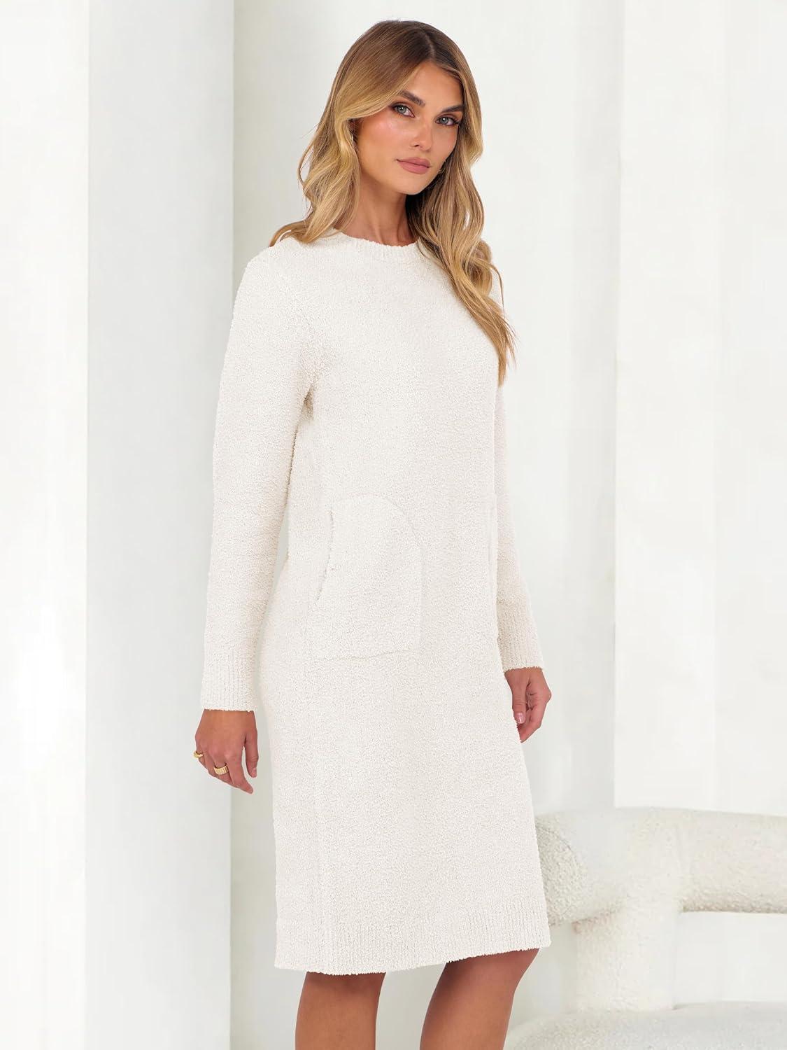 ANRABESS Womens Nightgown Sweater Dress Long Sleeve Fuzzy Knit Cozy Casual Loungewear 2025 Winter Midi Dress with Pockets.This womens nightgown sweater dress is soft , fuzzy , and suitable for daily wear, home wear, loungewear, and other casual occasions.