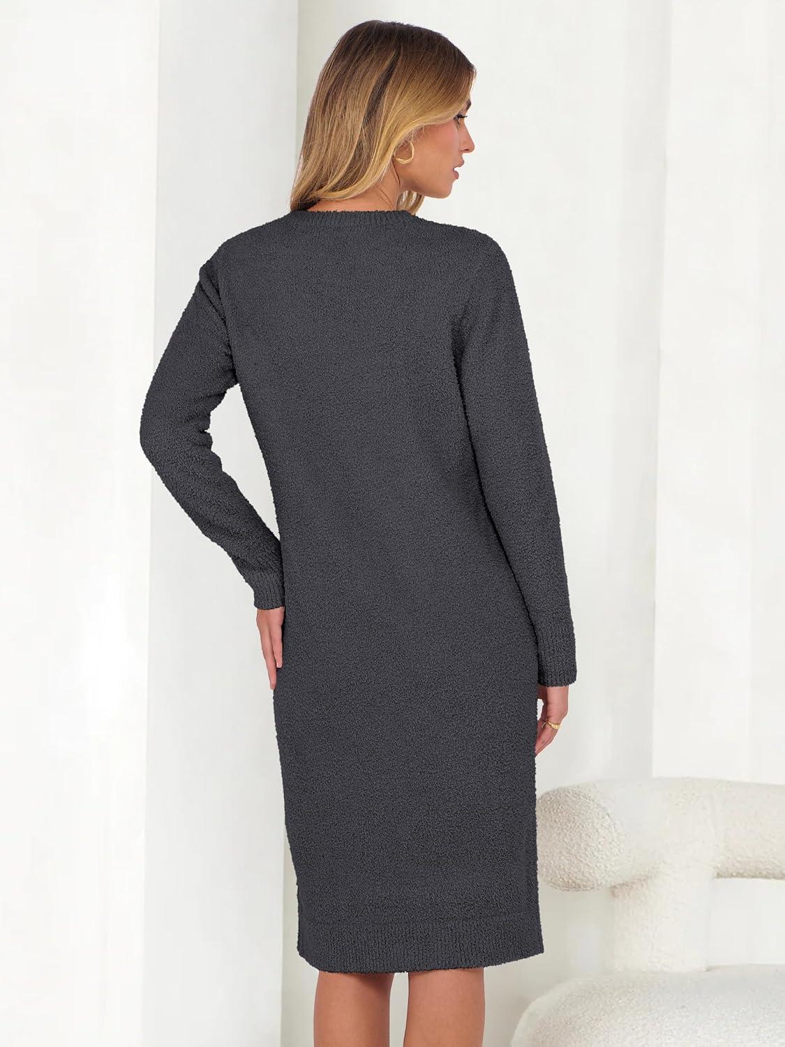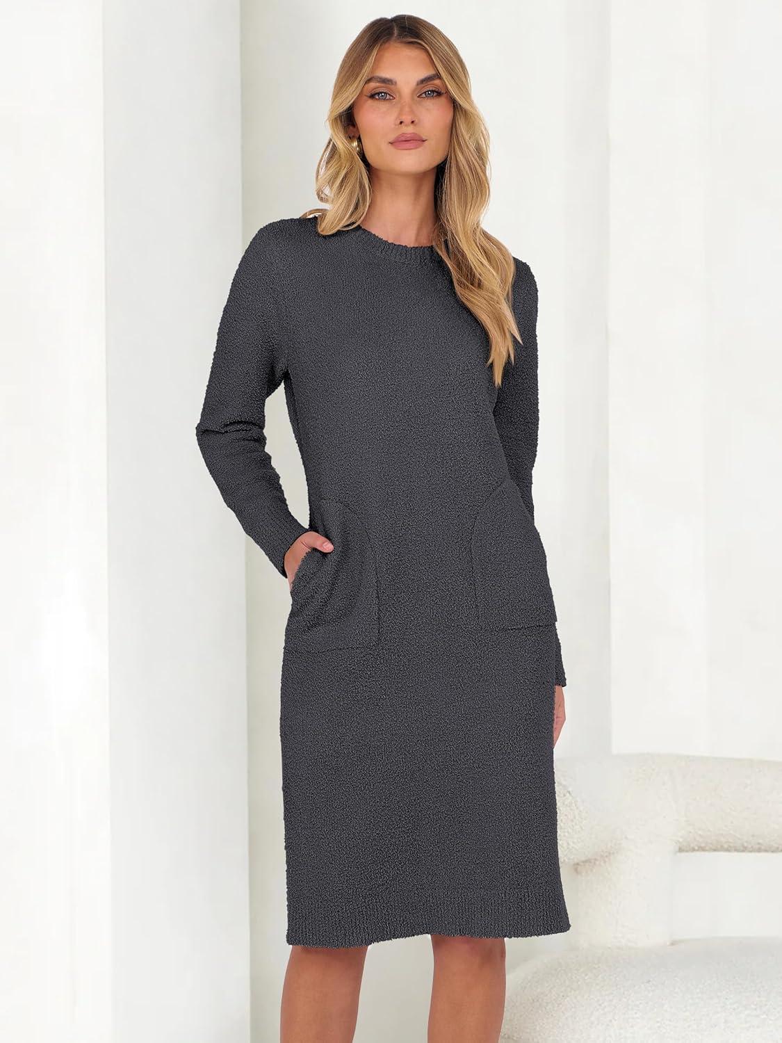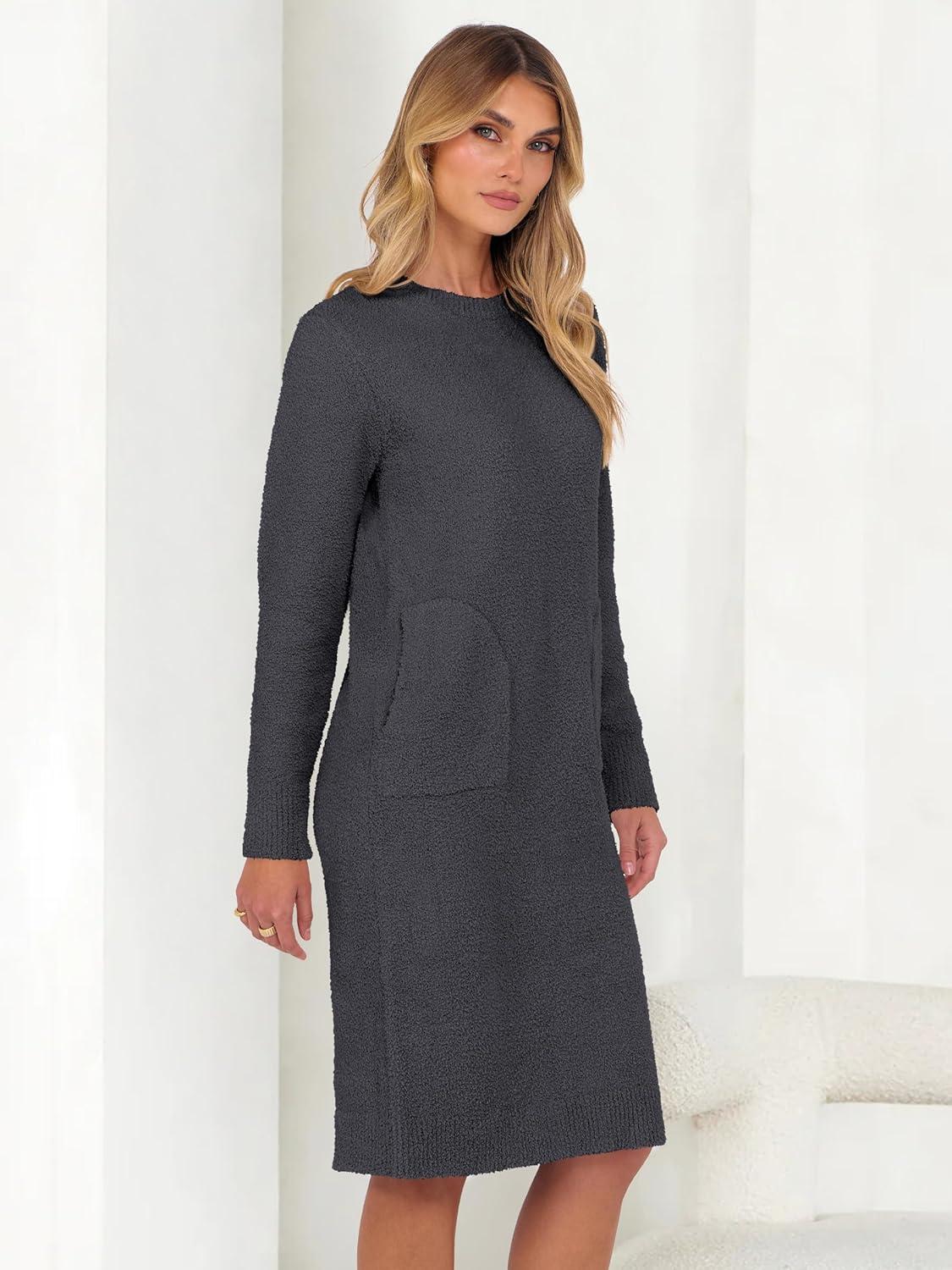 ANRABESS Womens Nightgown Sweater Dress Long Sleeve Fuzzy Knit Cozy Casual Loungewear 2025 Winter Midi Dress with Pockets(Deep Gray)