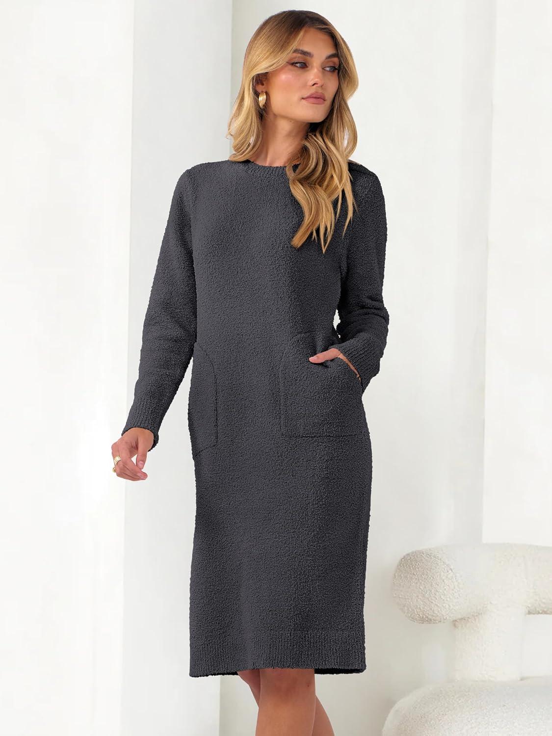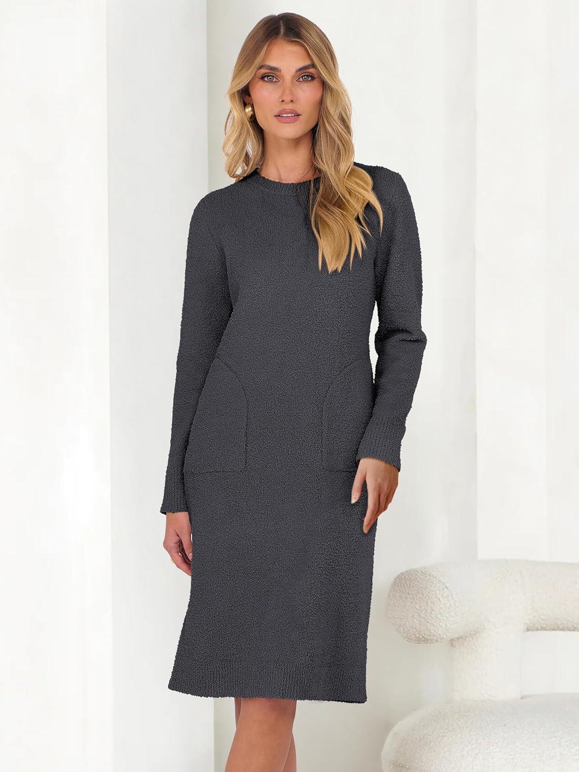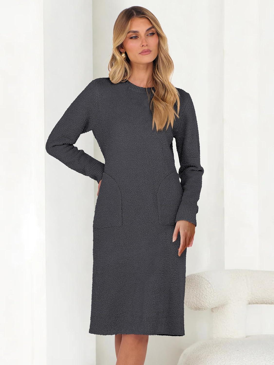 ANRABESS Womens Nightgown Sweater Dress Long Sleeve Fuzzy Knit Cozy Casual Loungewear 2025 Winter Midi Dress with Pockets(Deep Gray)