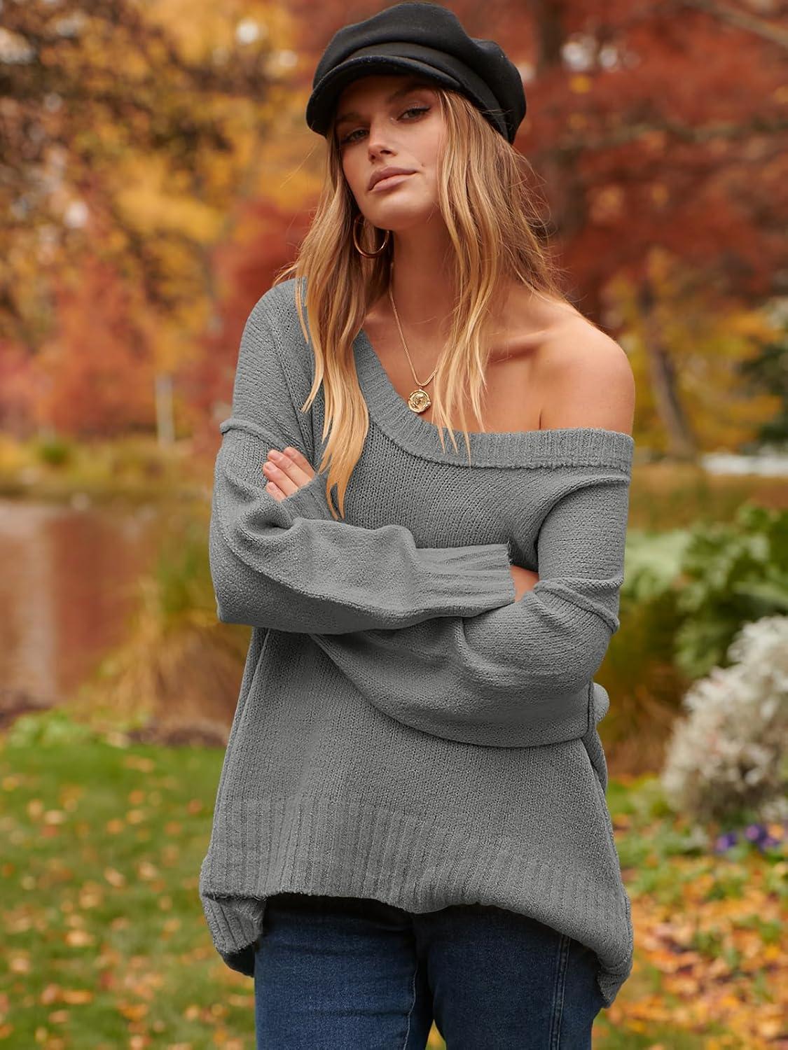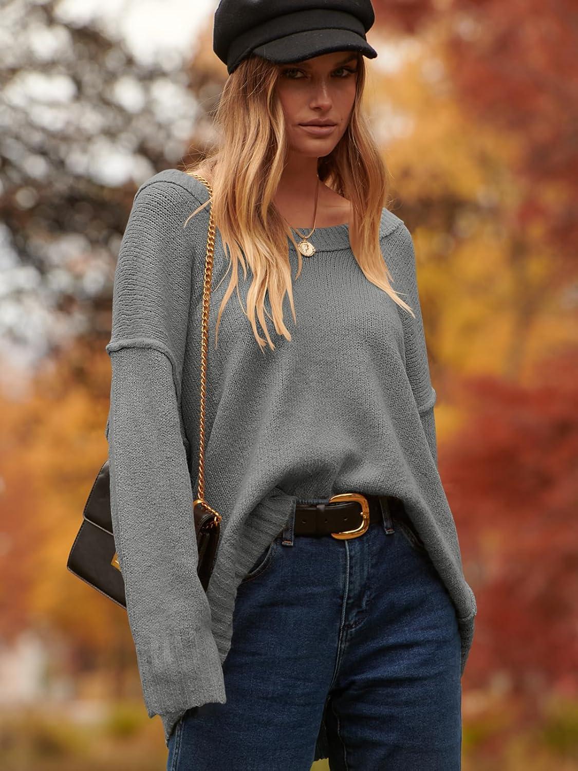 Be the first to review “ANRABESS Women’s Oversized Casual Loose Slouchy Scoop V Neck Batwing Long Sleeve Knit 2025 Fall Pullover Sweaters(Dark Gray)”
