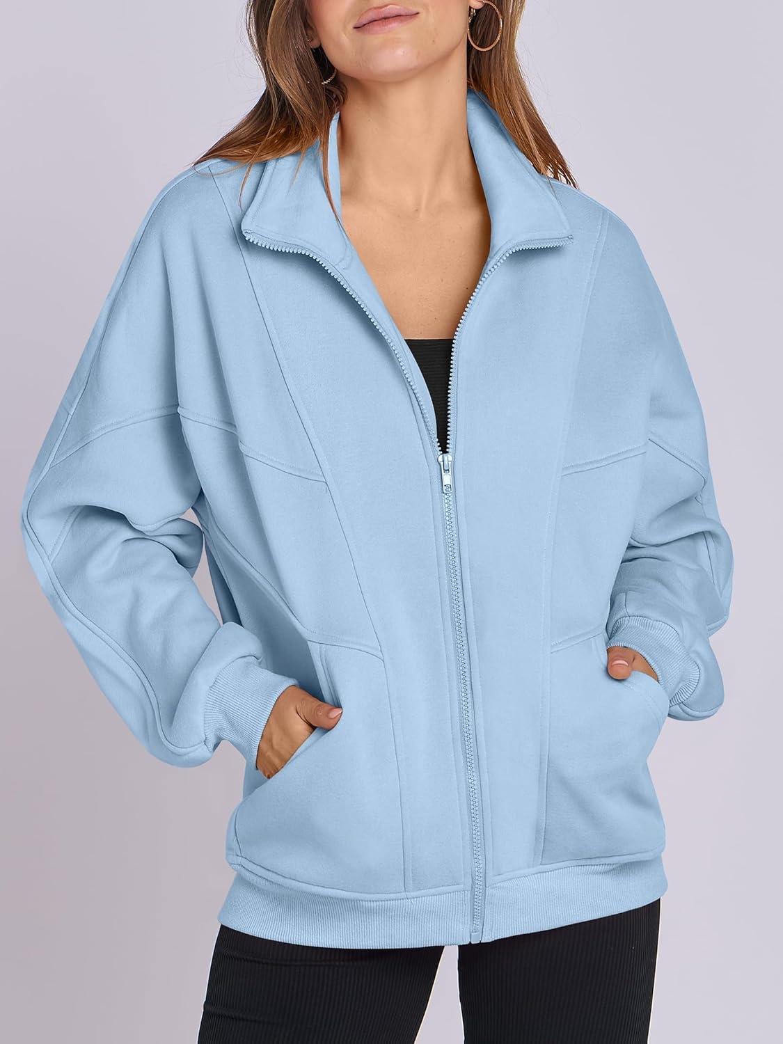 ANRABESS Women's Oversized Full Zip Up Sweatshirts Jacket 2025 Fall Fleece Long Sleeve Hoodies Outfits(Sky)