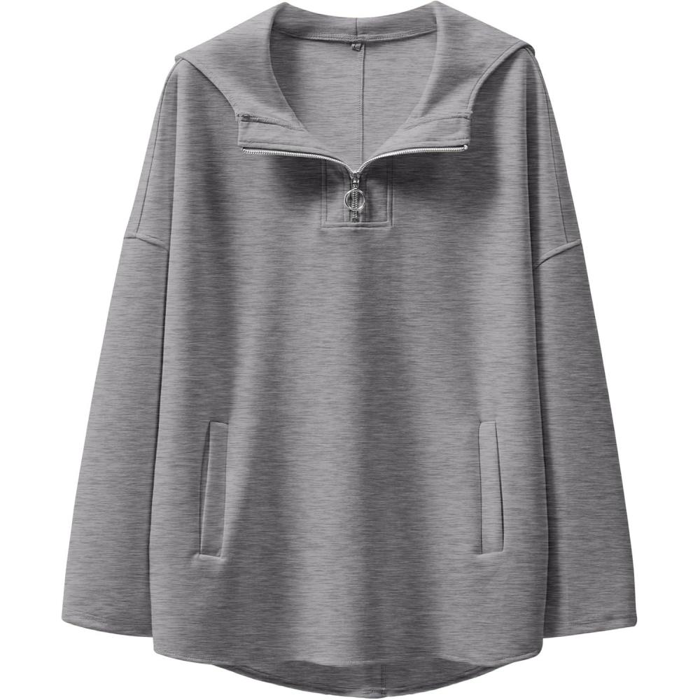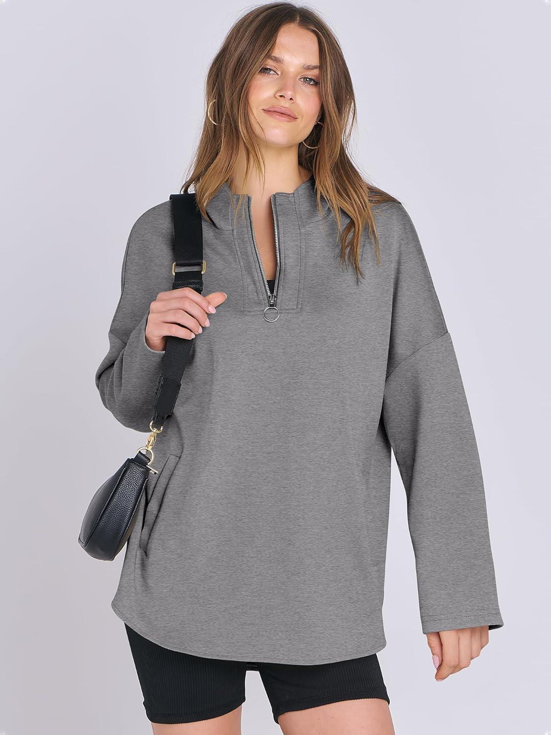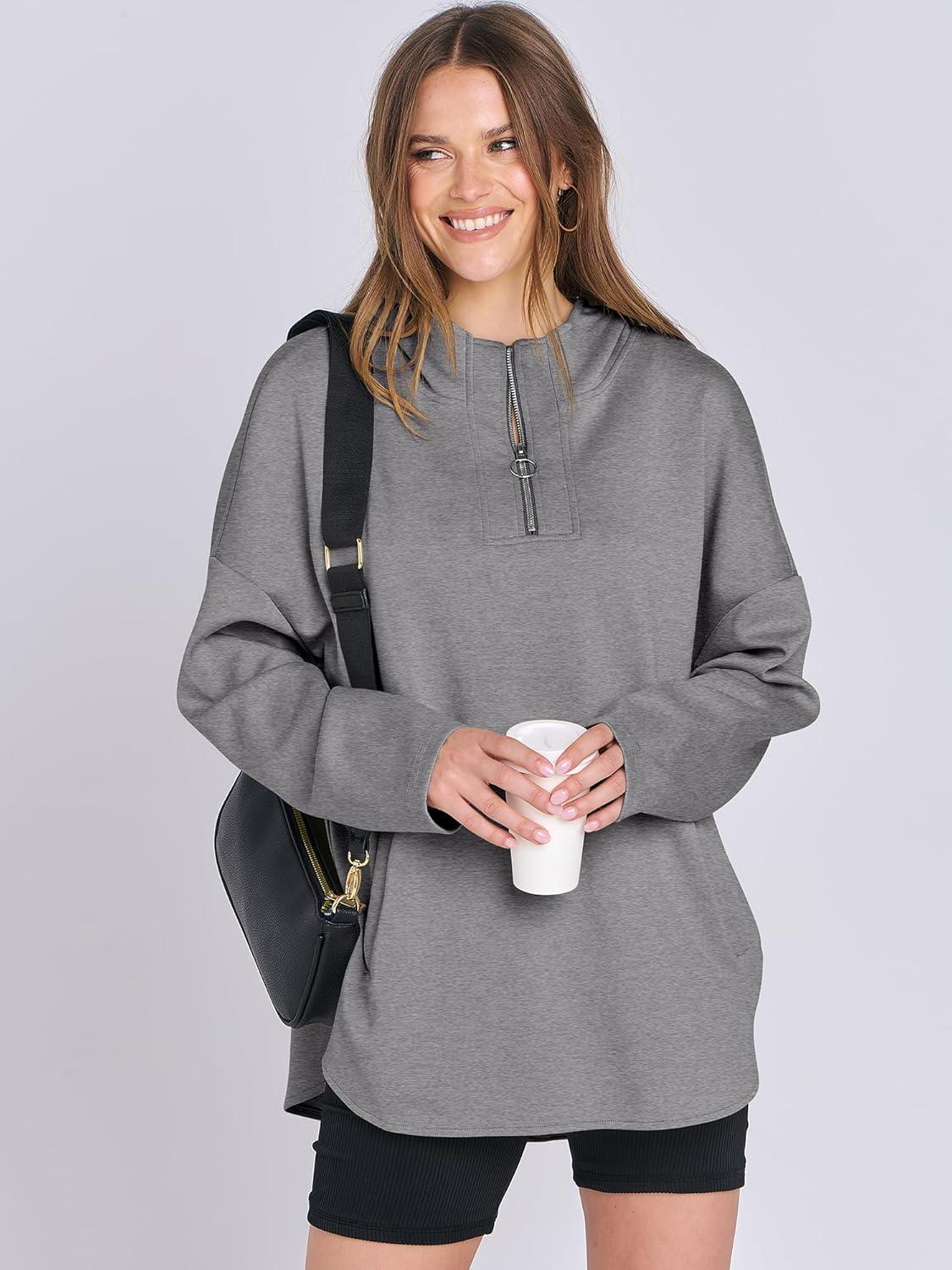 ANRABESS Womens Oversized Hoodie Quarter Zip Sweatshirts 2025 Fall Winter Tunic Pullover Top Trendy Teen Girls Preppy Clothes(Grey)