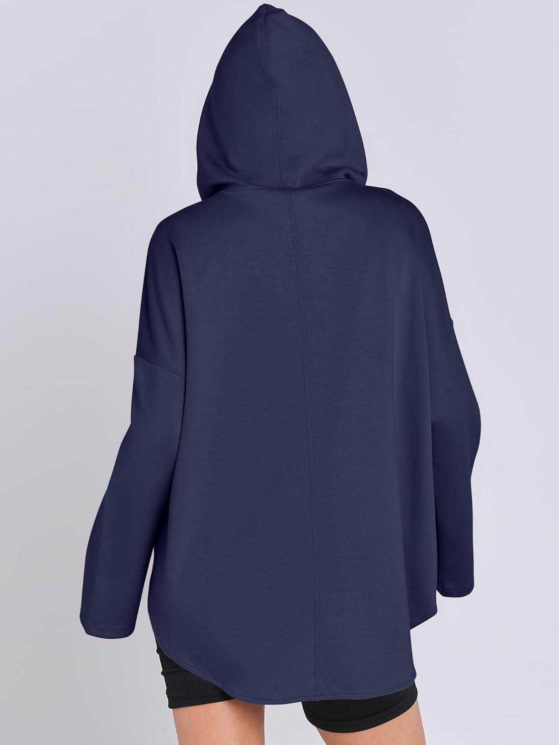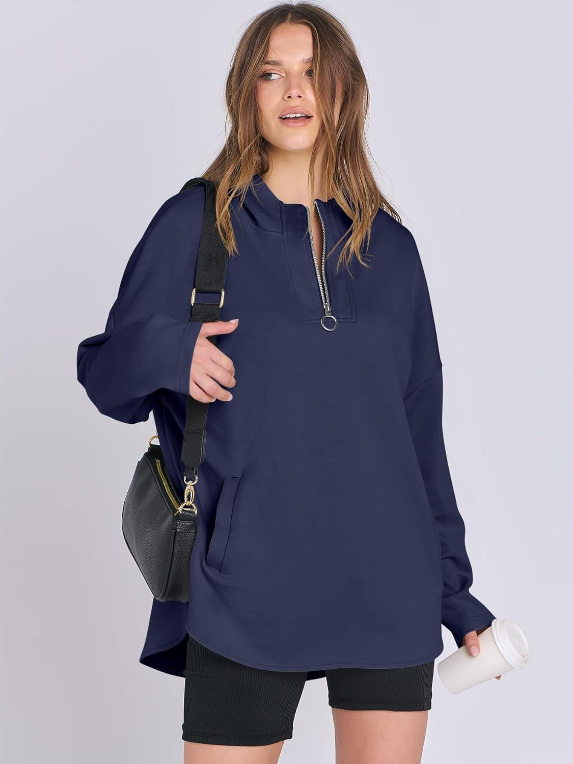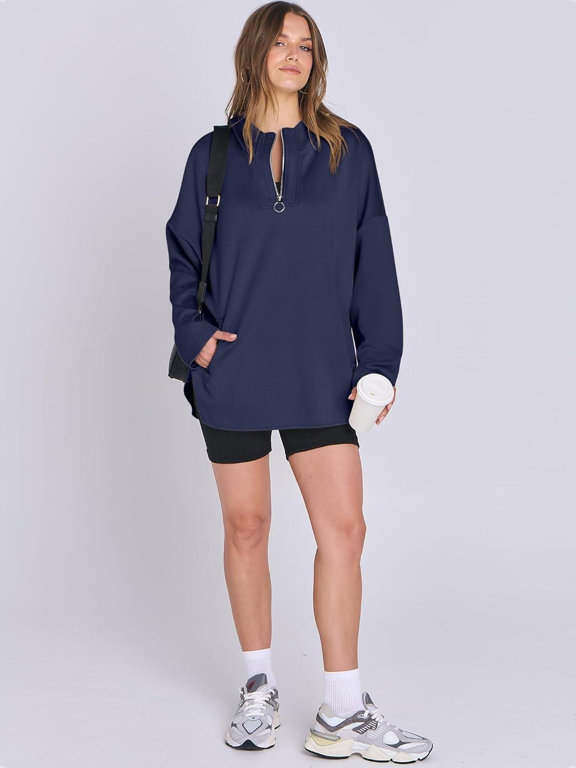 ANRABESS Womens Oversized Hoodie Quarter Zip Sweatshirts 2025 Fall Winter Tunic Pullover Top Trendy Teen Girls Preppy Clothes(Navy Blue)