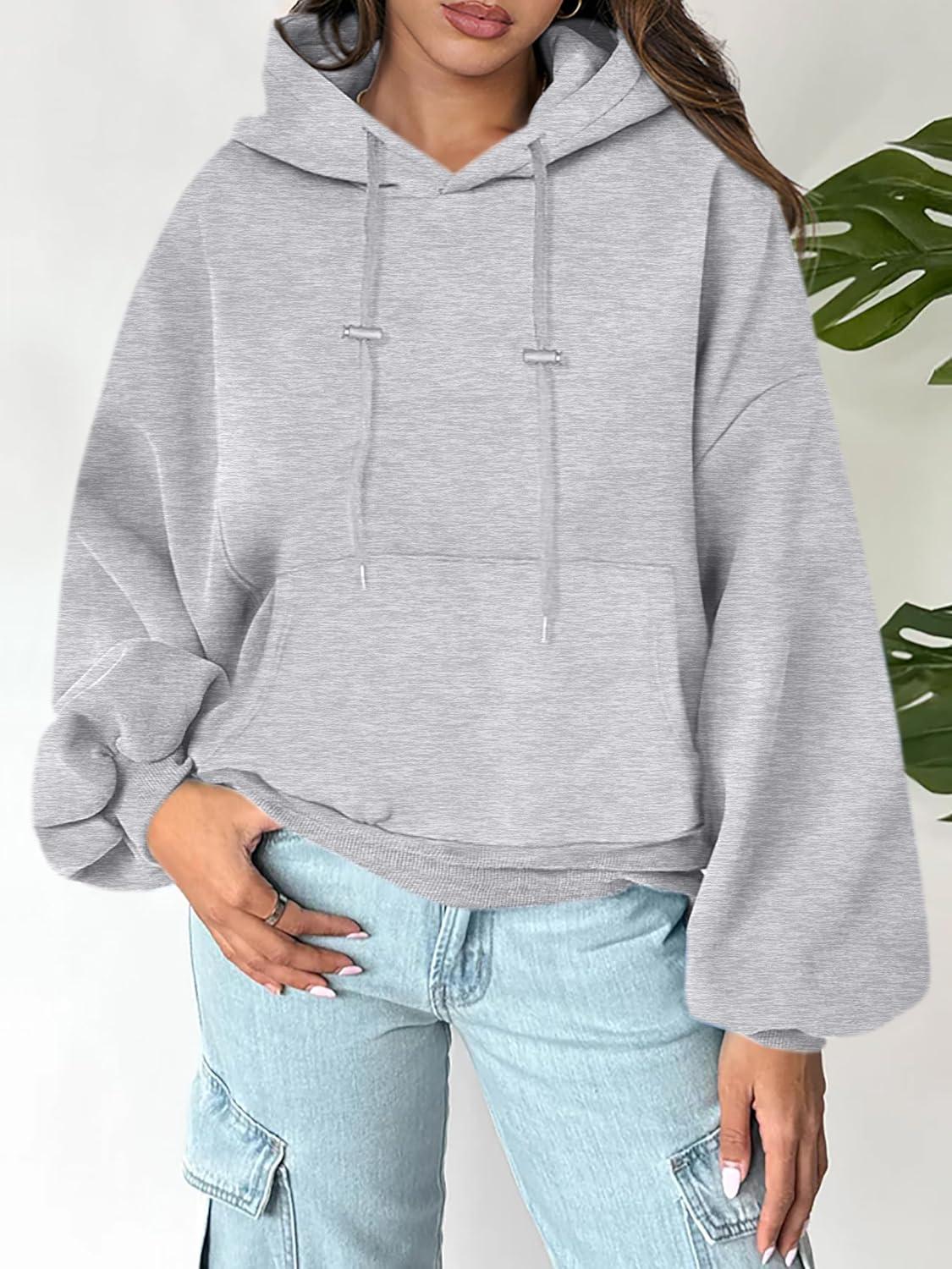 ANRABESS Womens Oversized Hoodies Lantern sleeve Fleece Sweatshirts 2025 Fall Winter Loose Pullover Preppy Clothes(Grey)
