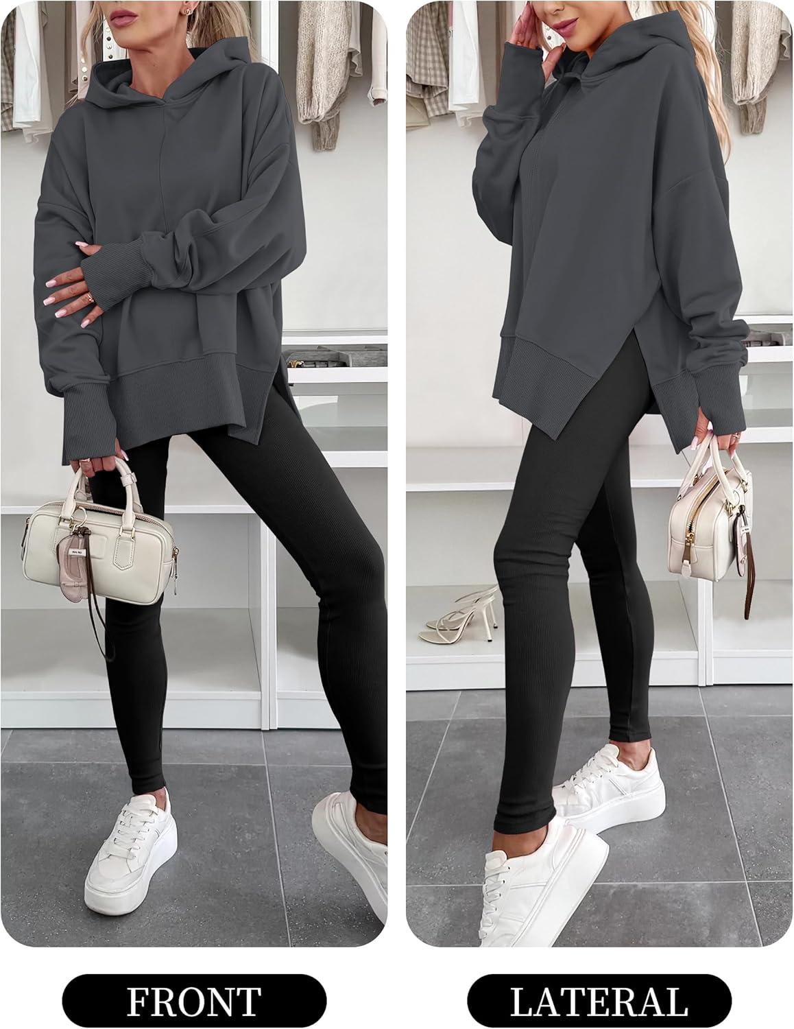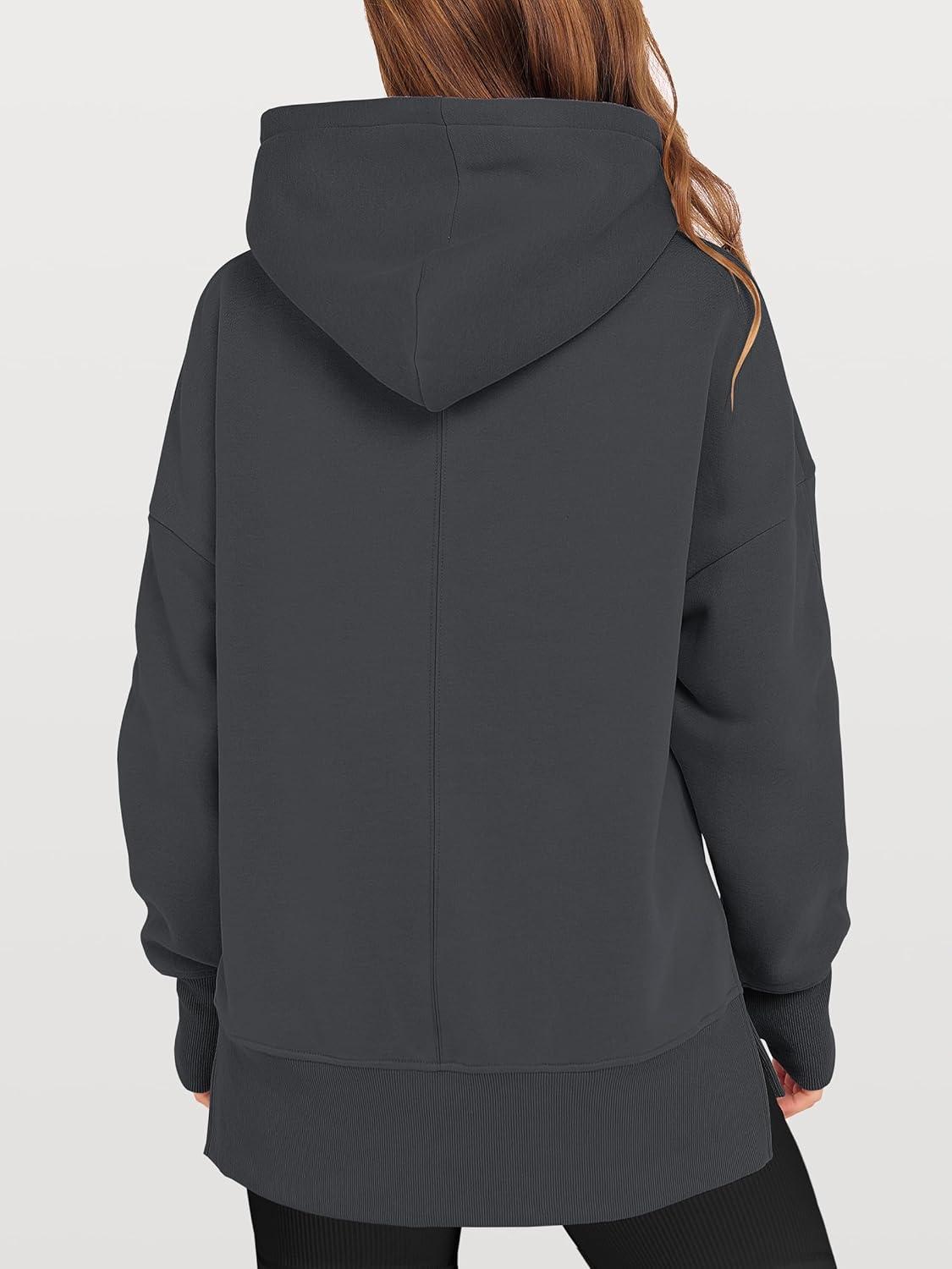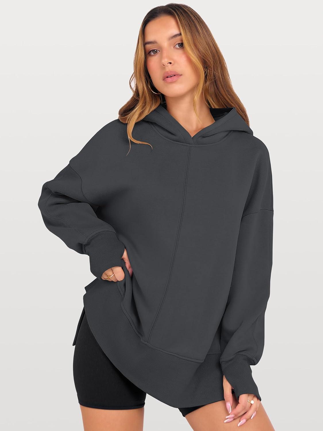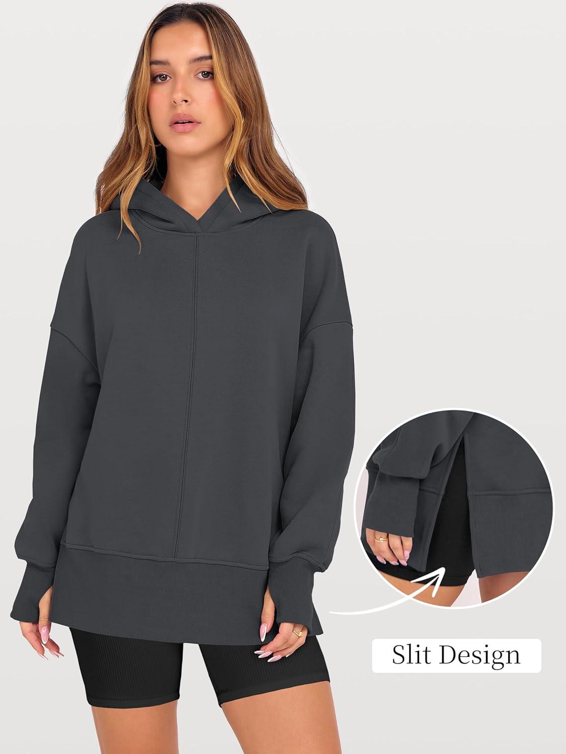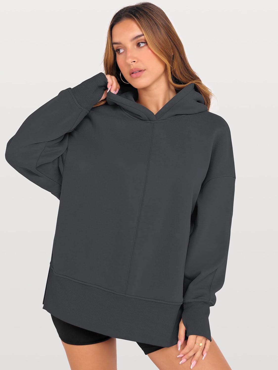 ANRABESS Womens Oversized Hoodies Long Sleeve Fleece Side Slit Hooded Sweatshirts Pullover 2026 Fall Outfits Y2K Clothes(Deep Grey)