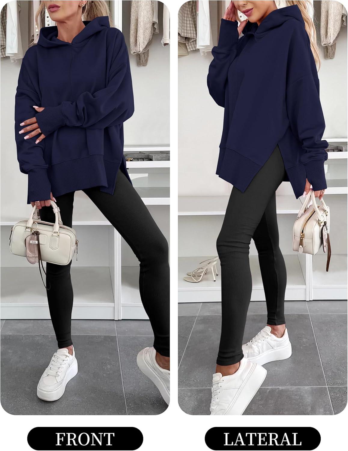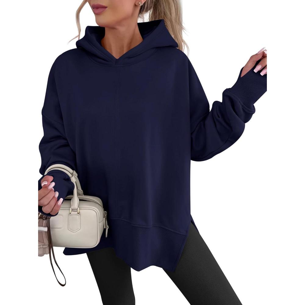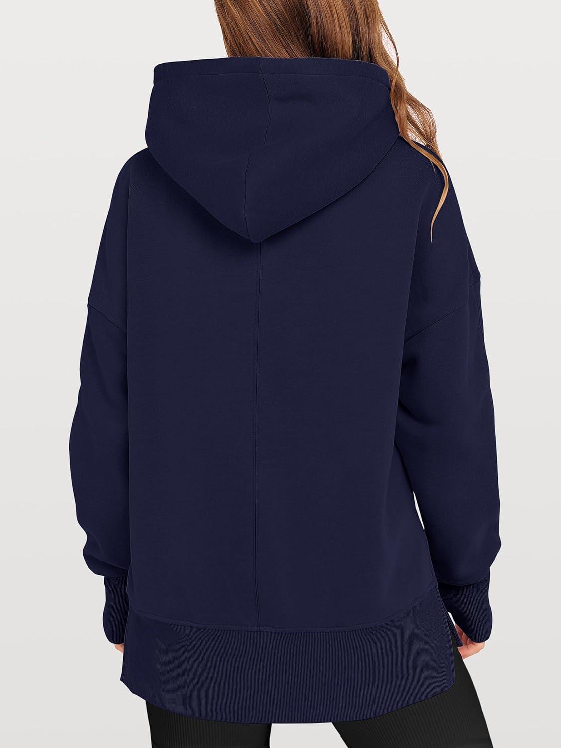 ANRABESS Womens Oversized Hoodies Long Sleeve Fleece Side Slit Hooded Sweatshirts Pullover 2026 Fall Outfits Y2K Clothes(Navy Blue)