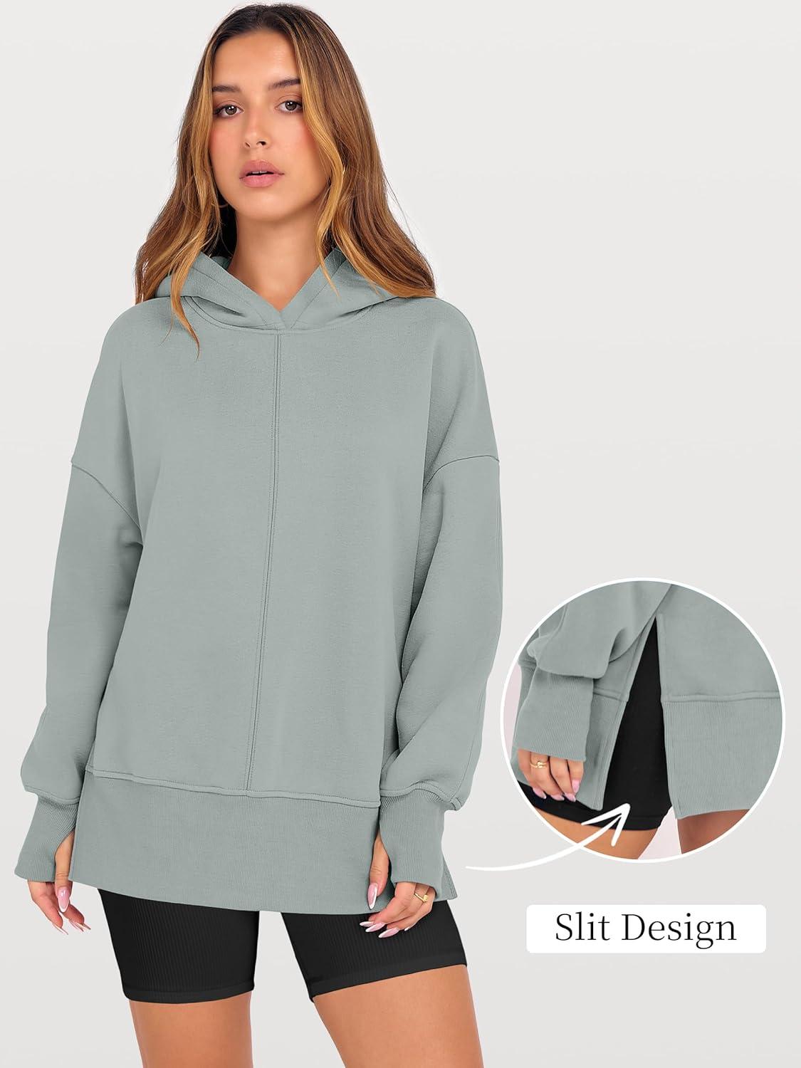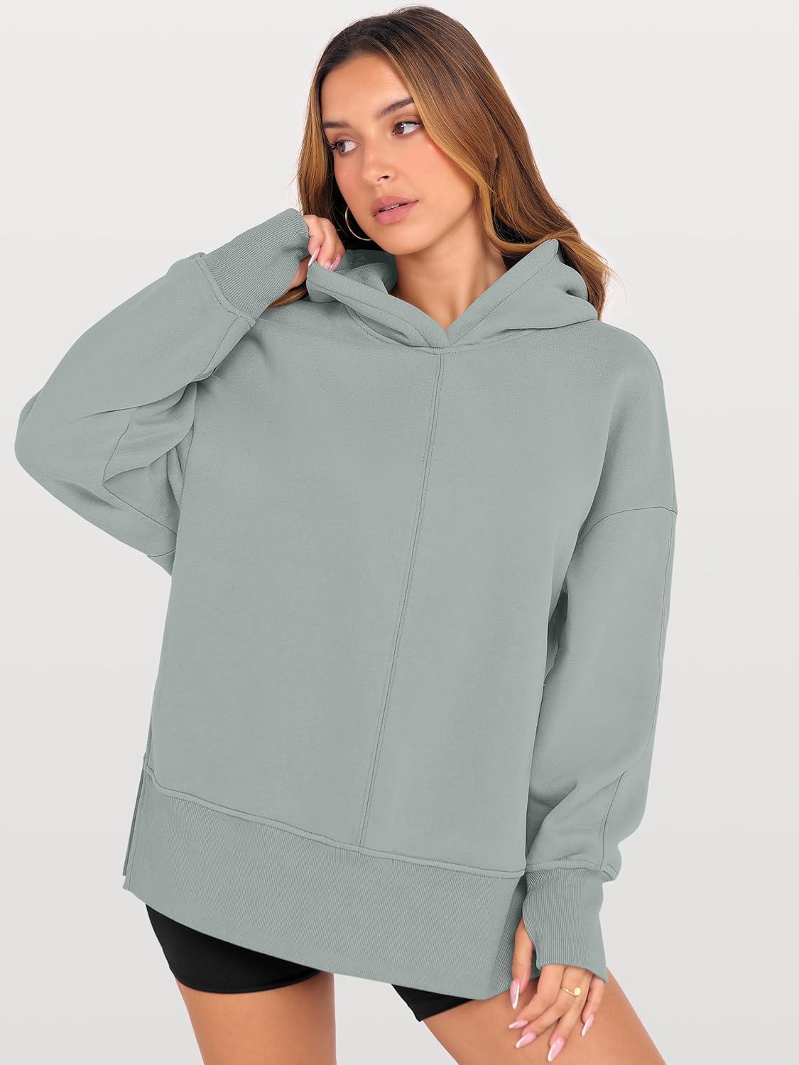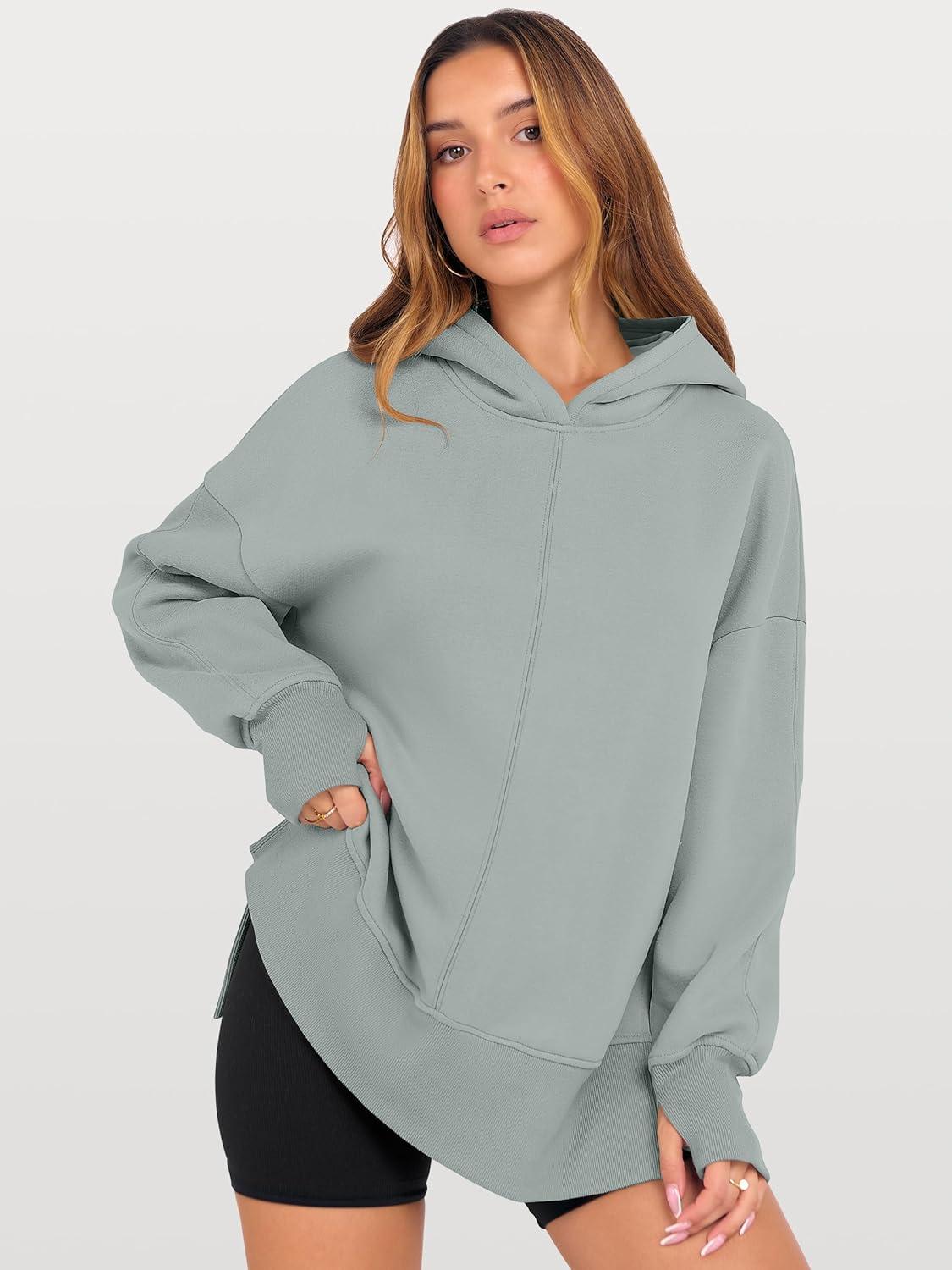ANRABESS Womens Oversized Hoodies Long Sleeve Fleece Side Slit Hooded Sweatshirts Pullover 2026 Fall Outfits Y2K Clothes(Sage Green)