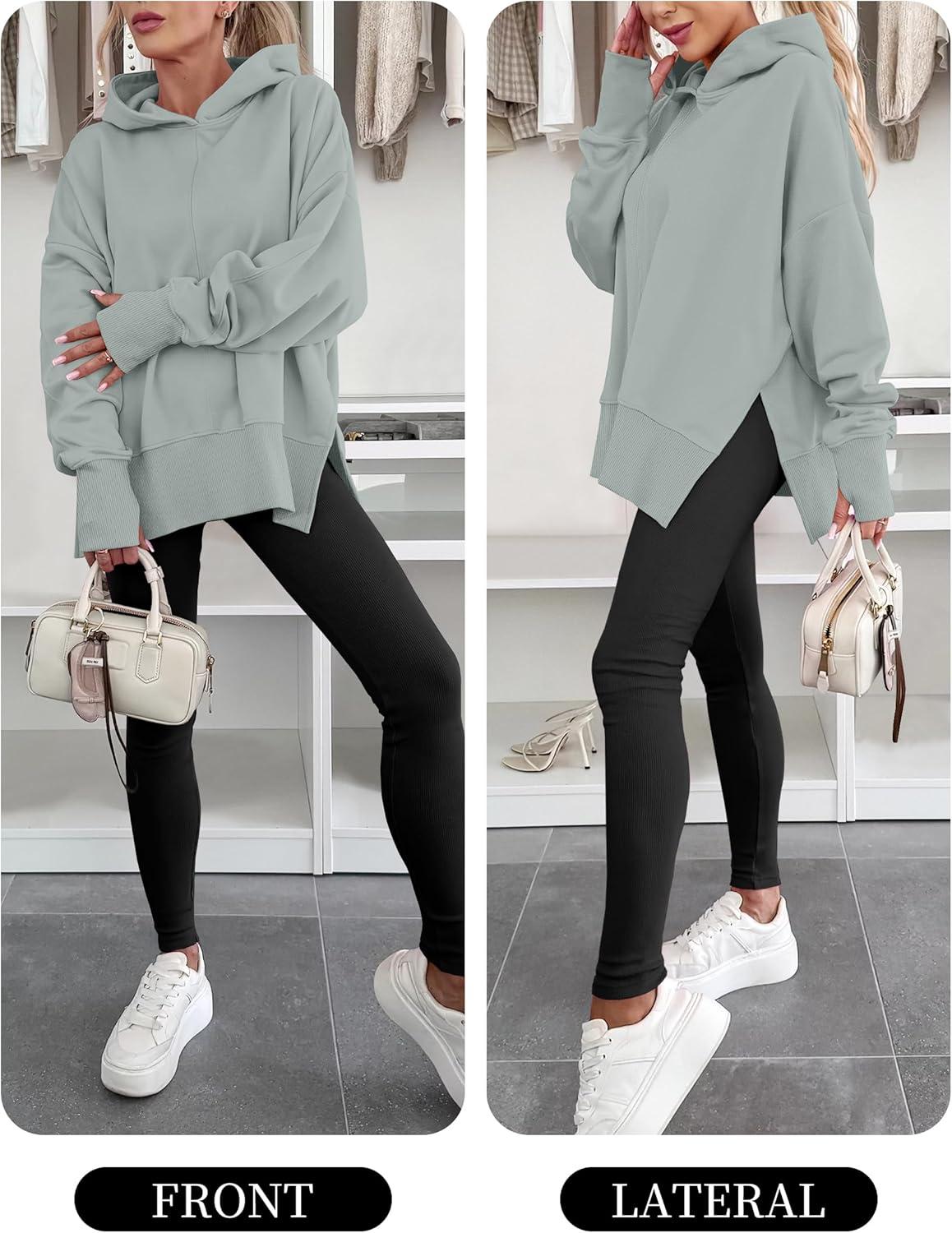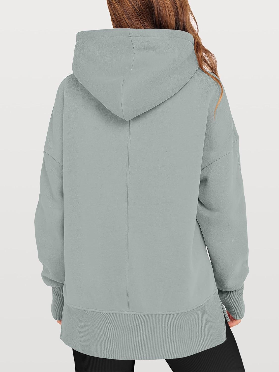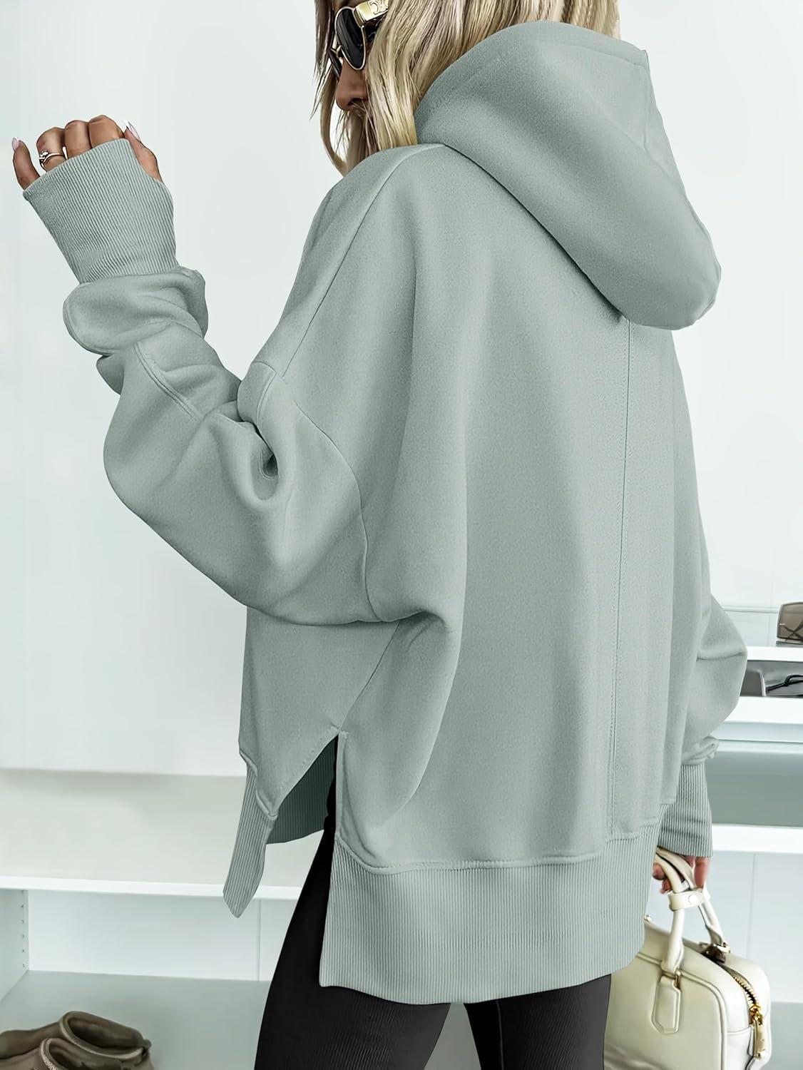 ANRABESS Womens Oversized Hoodies Long Sleeve Fleece Side Slit Hooded Sweatshirts Pullover 2026 Fall Outfits Y2K Clothes(Sage Green)