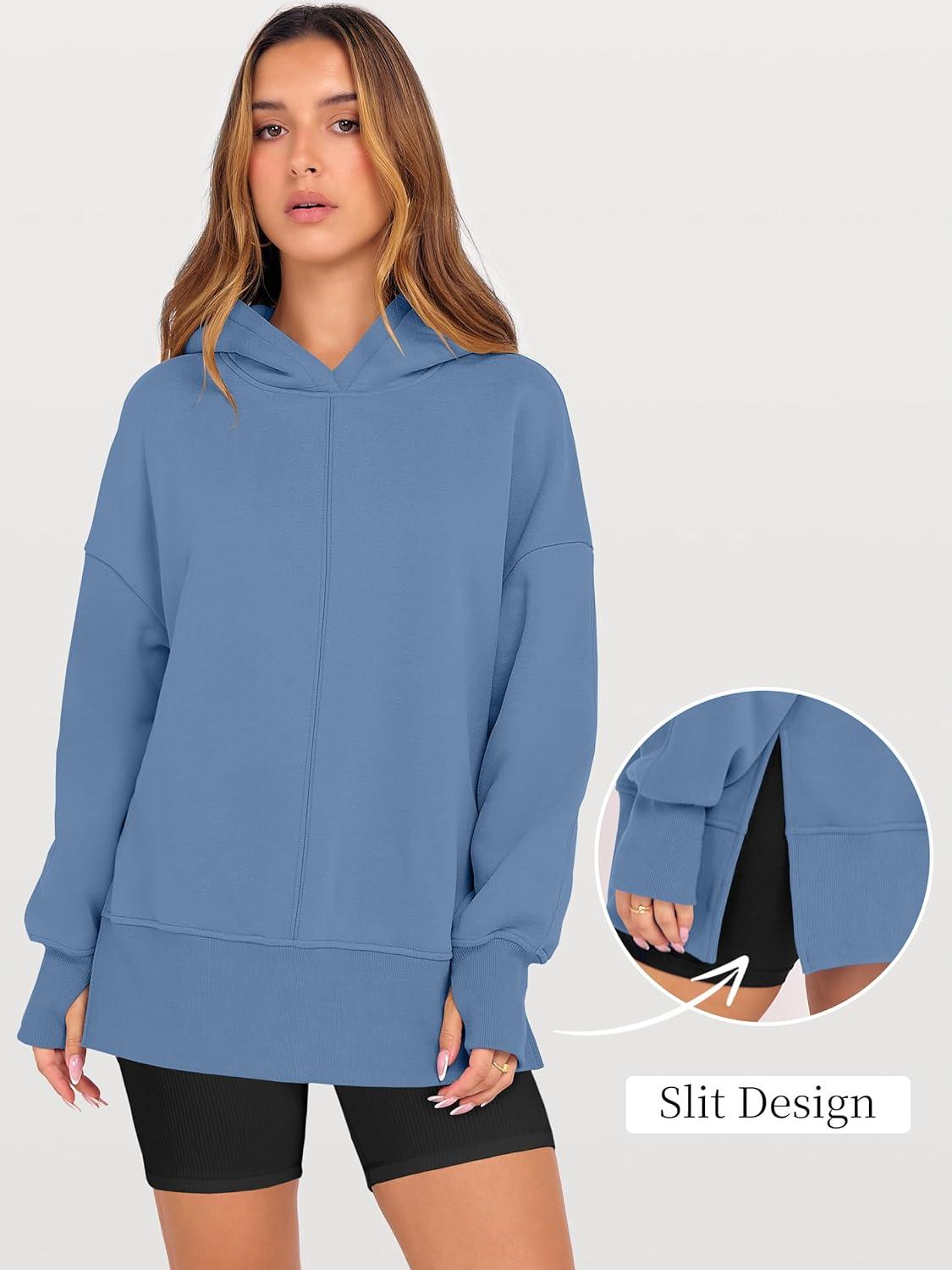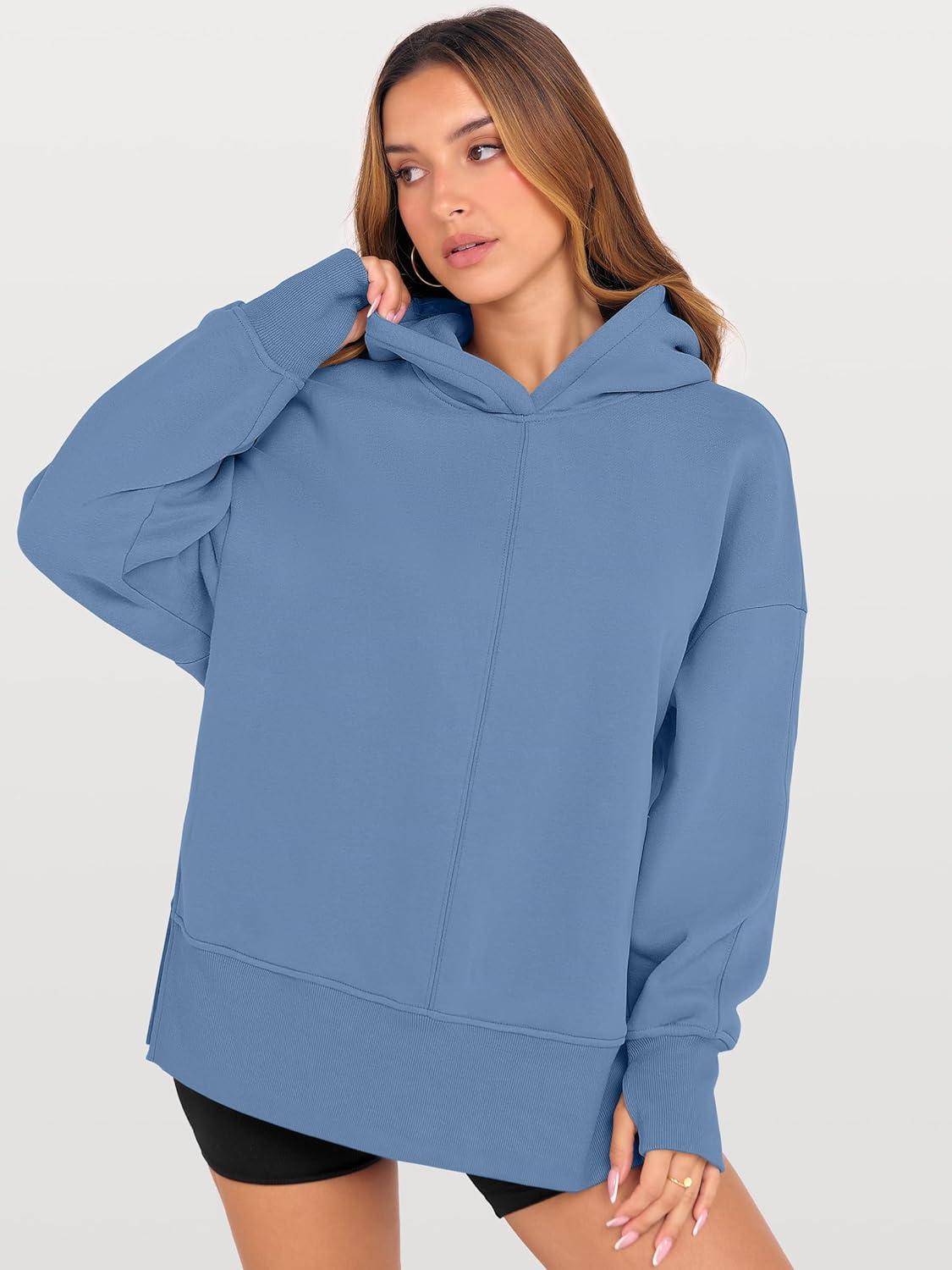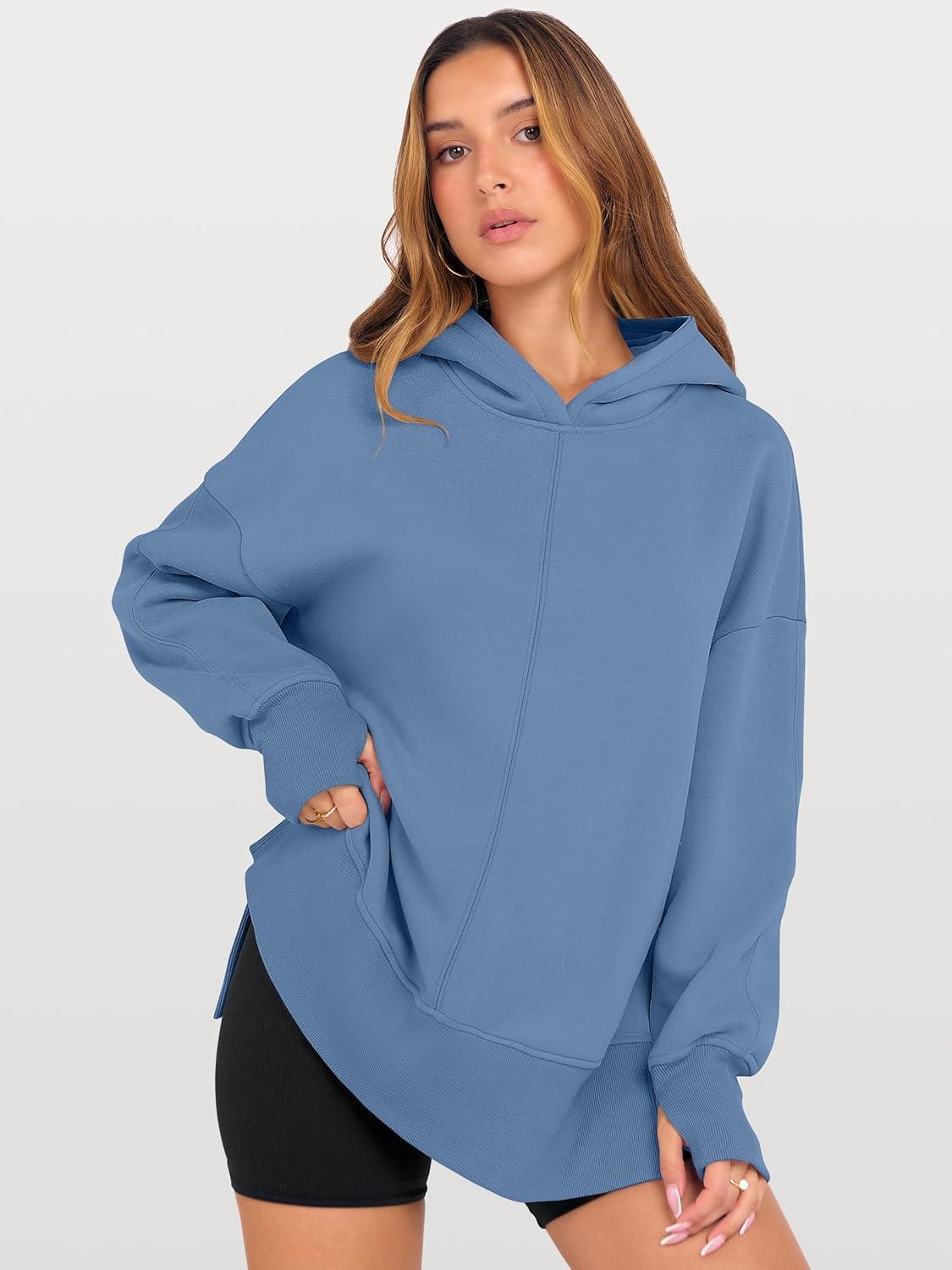 ANRABESS Womens Oversized Hoodies Long Sleeve Fleece Side Slit Hooded Sweatshirts Pullover 2026 Fall Outfits Y2K Clothes(Sky Blue)