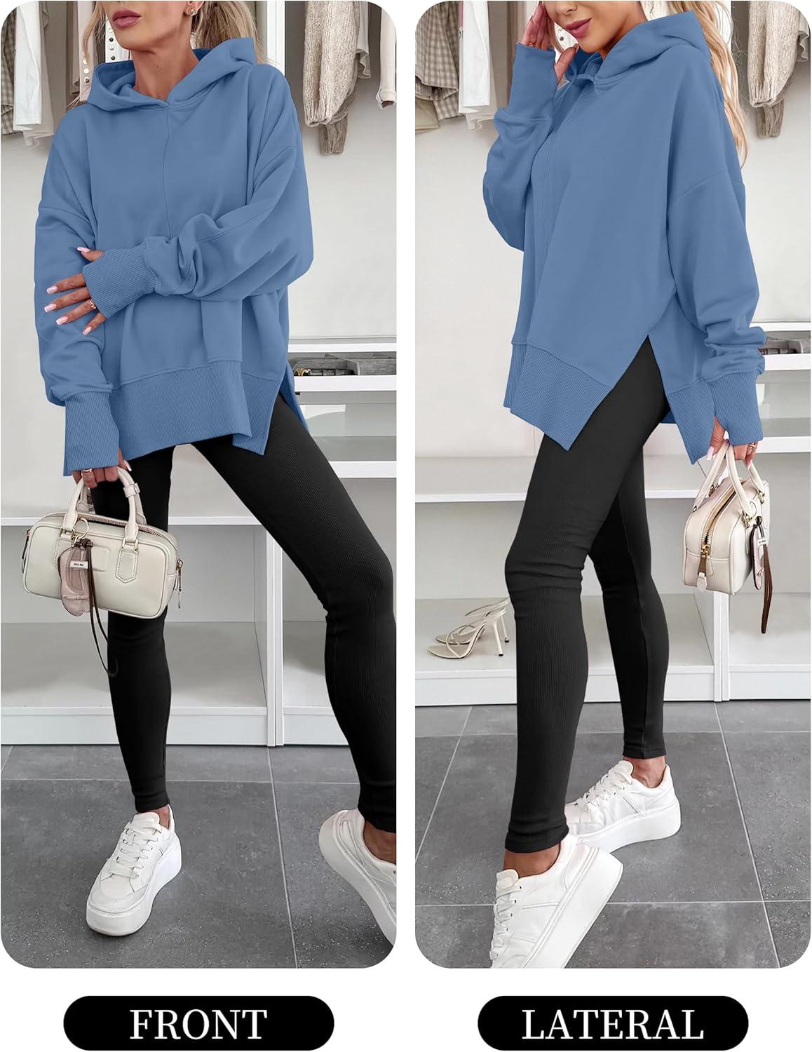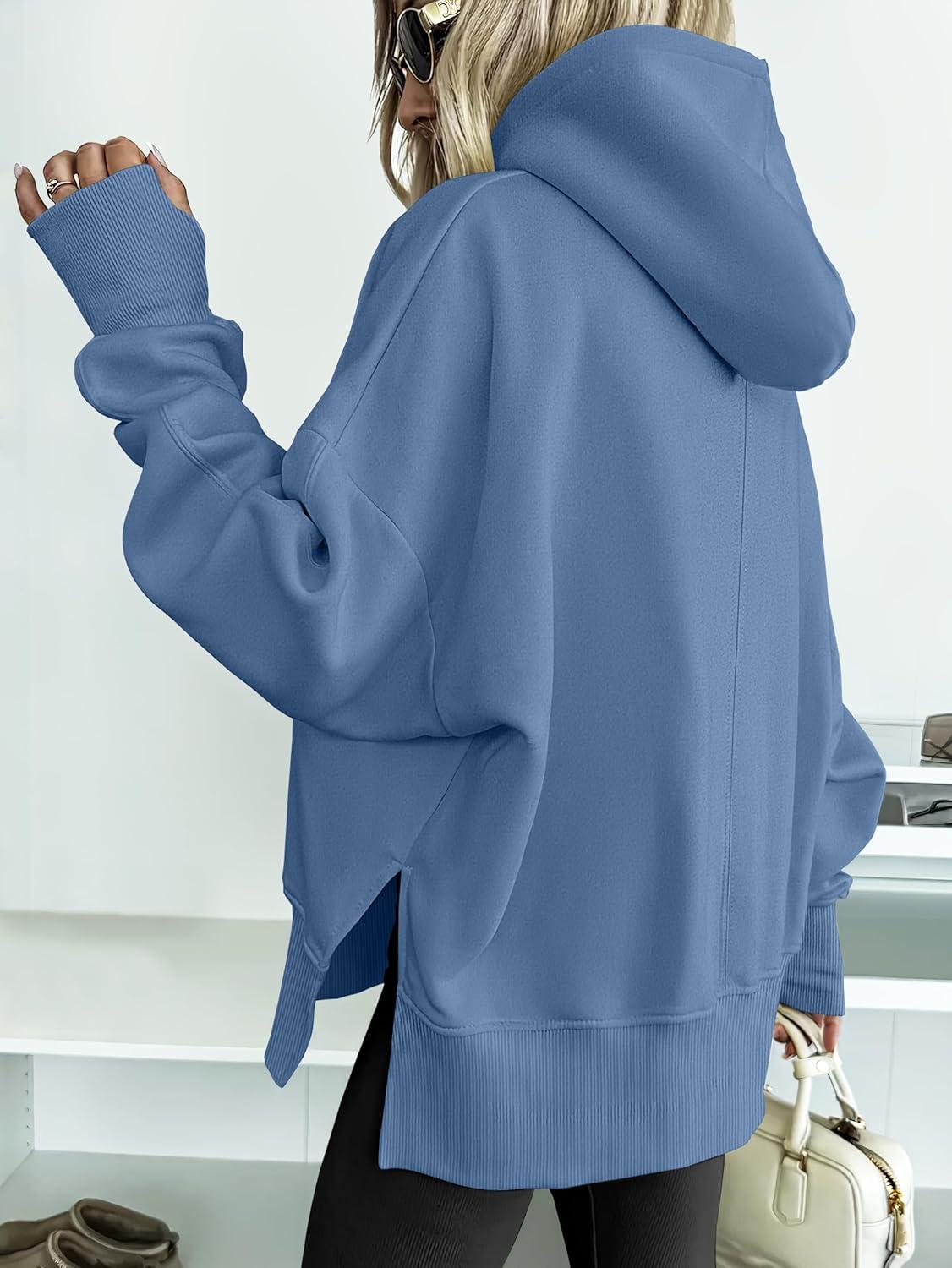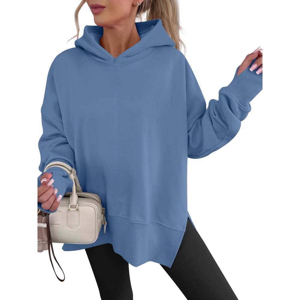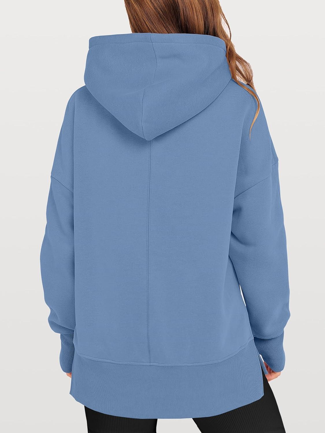 ANRABESS Womens Oversized Hoodies Long Sleeve Fleece Side Slit Hooded Sweatshirts Pullover 2026 Fall Outfits Y2K Clothes(Sky Blue)