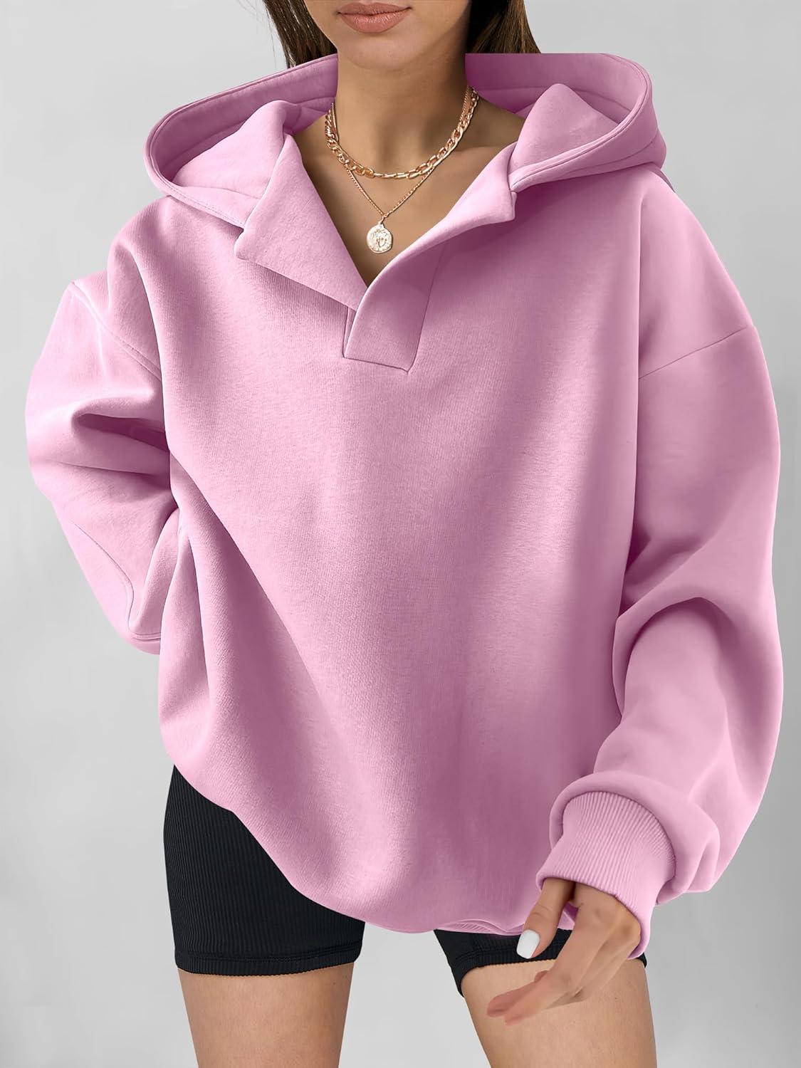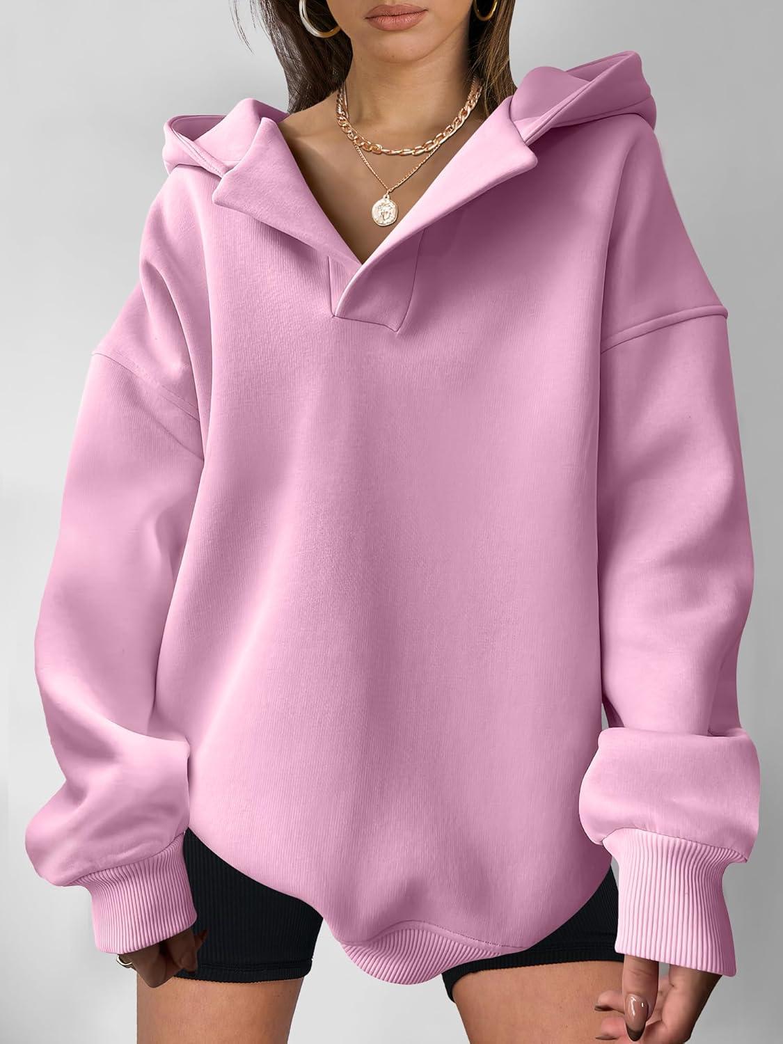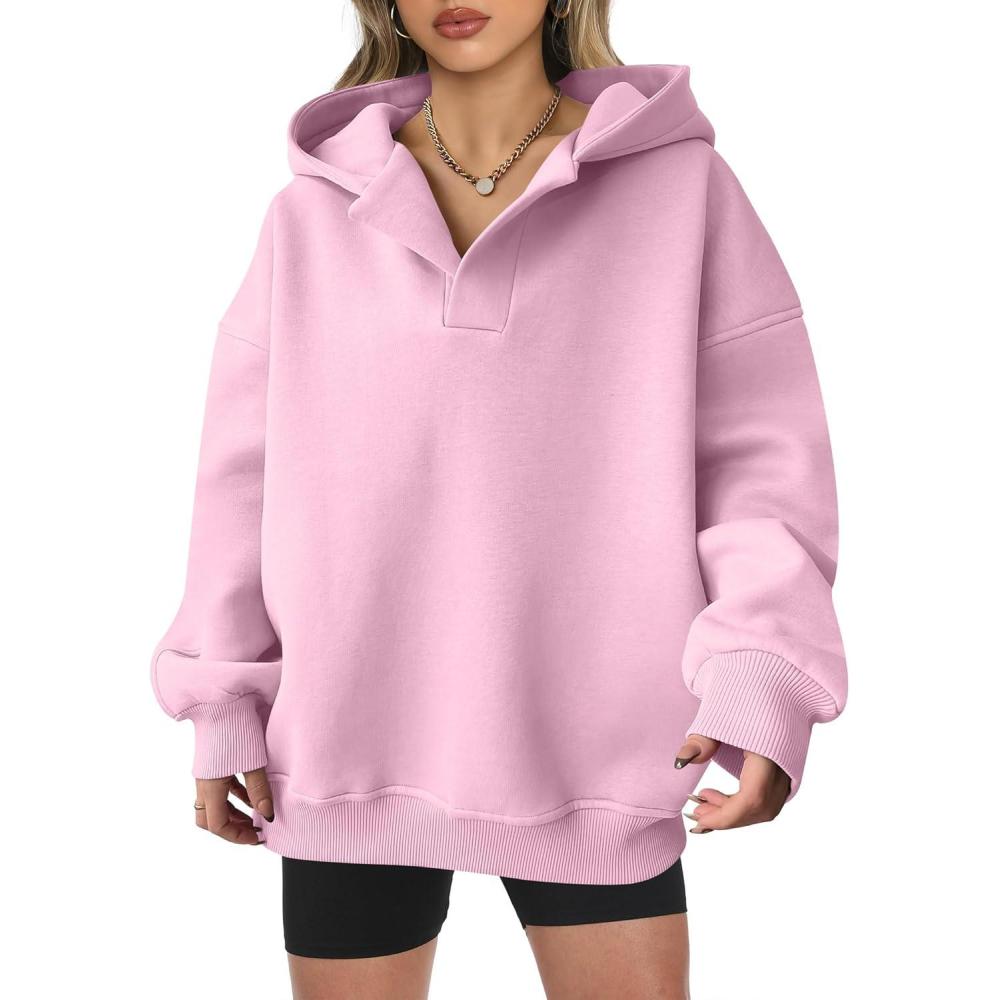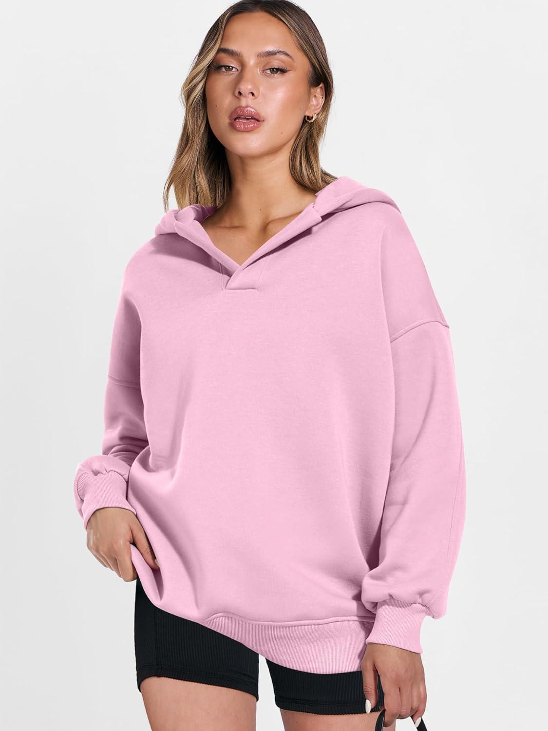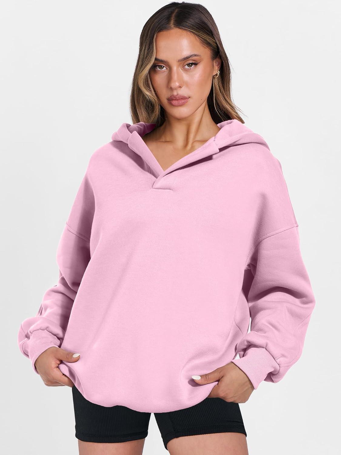 imageANRABESS Womens Oversized Hoodies V Neck Sweatshirts Fleece Long Sleeve Pullover Y2K Clothes 2025 Fall Trendy OutfitsBright Pink