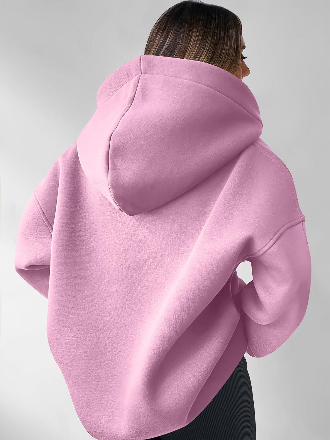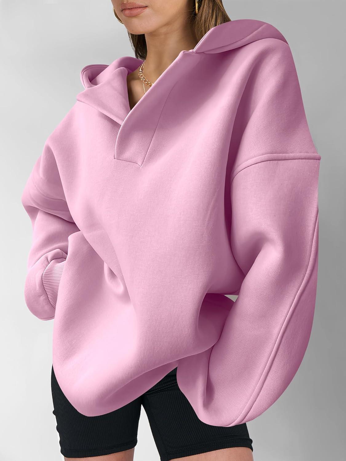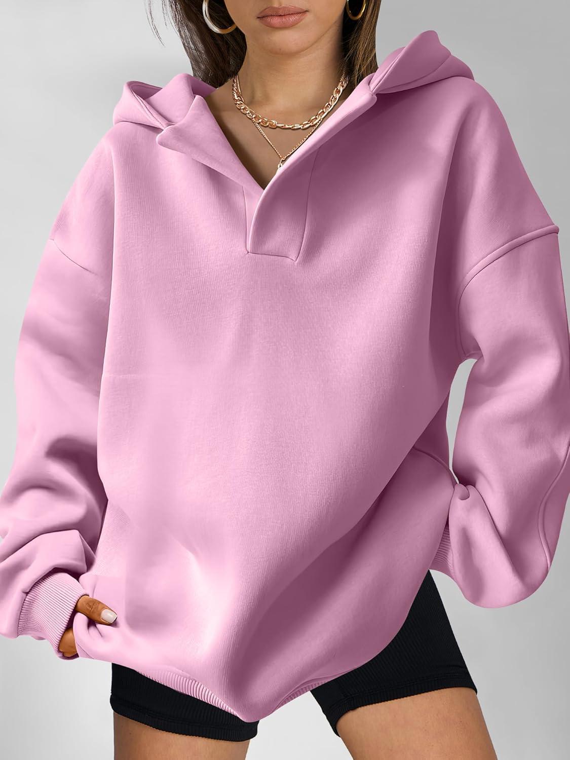 ANRABESS Womens Oversized Hoodies V Neck Sweatshirts Fleece Long Sleeve Pullover Y2K Clothes 2025 Fall Trendy Outfits(Bright Pink)