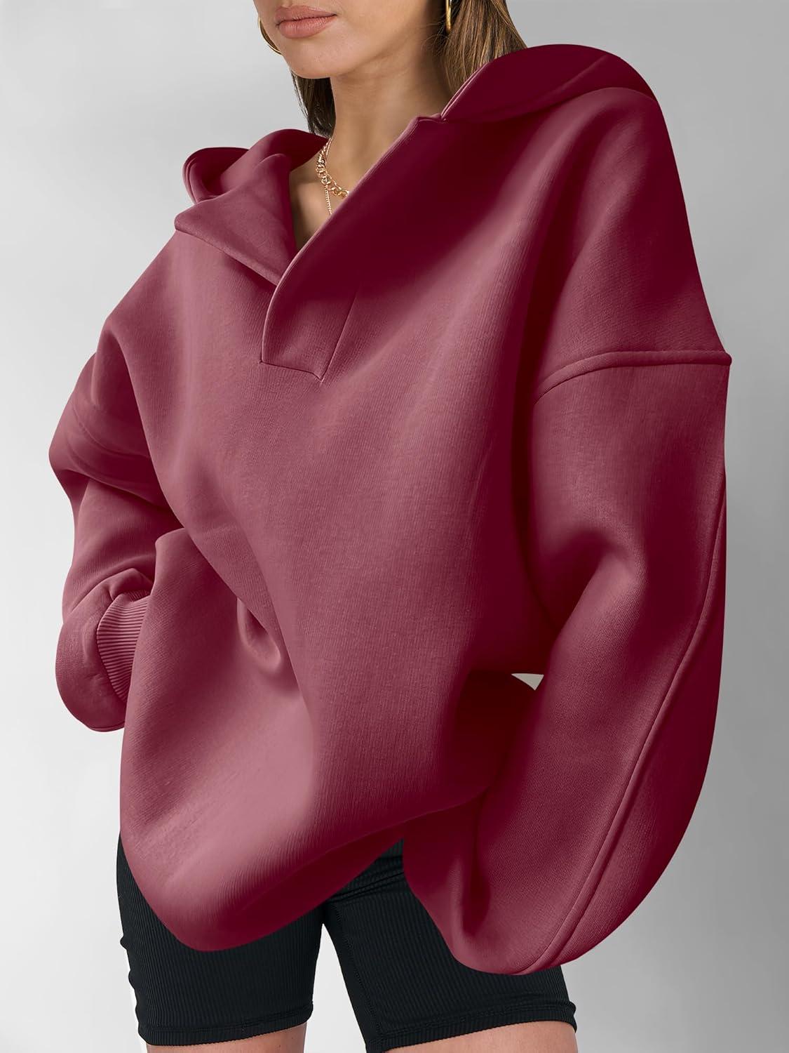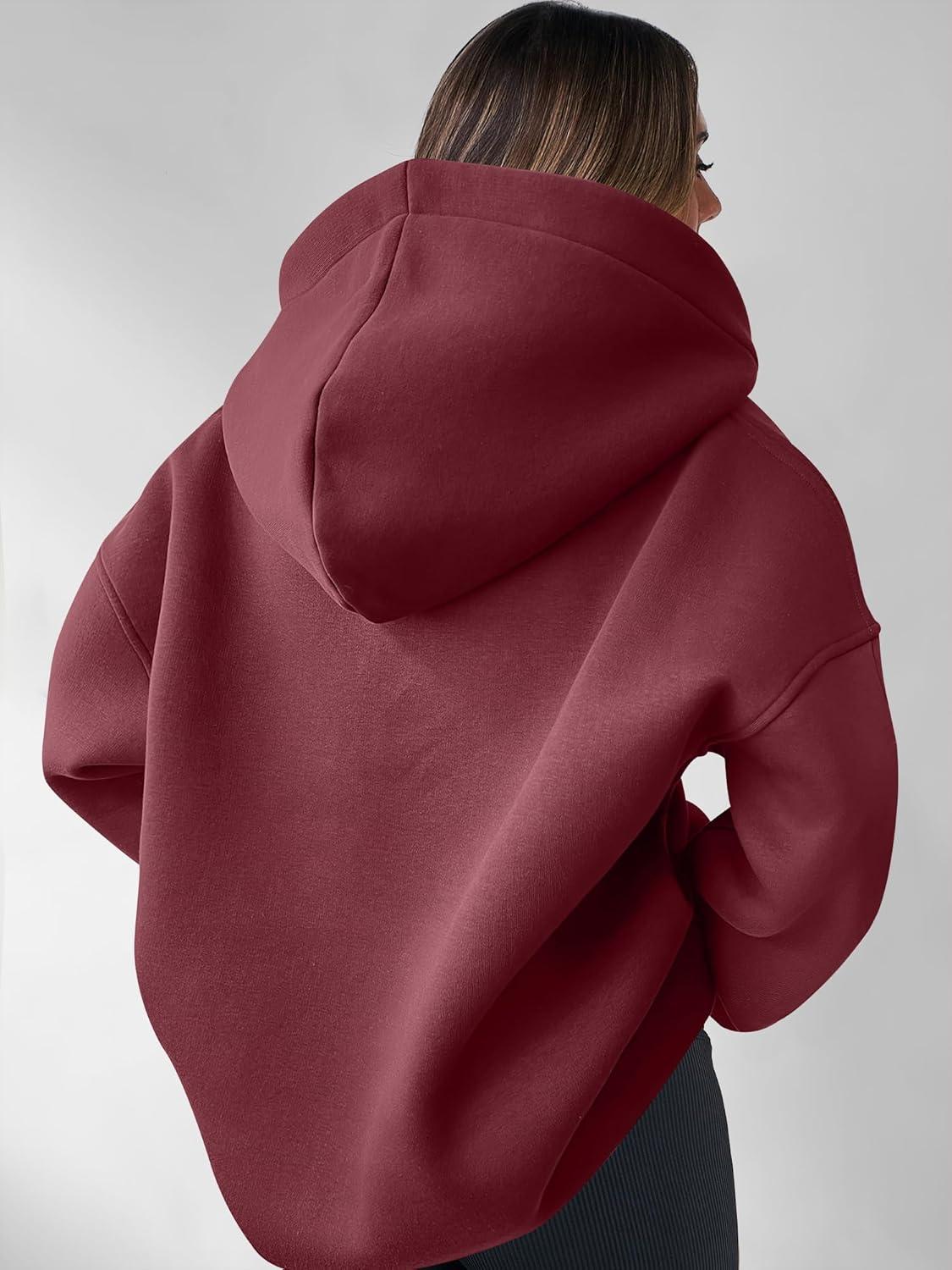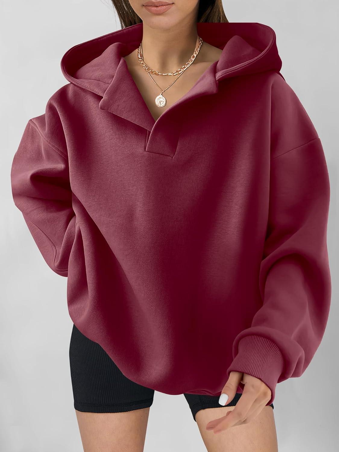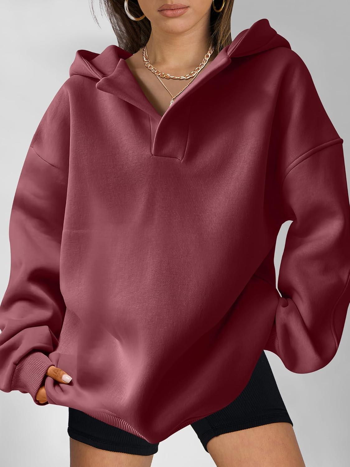 ANRABESS Womens Oversized Hoodies V Neck Sweatshirts Fleece Long Sleeve Pullover Y2K Clothes 2025 Fall Trendy Outfits(Dark Red)