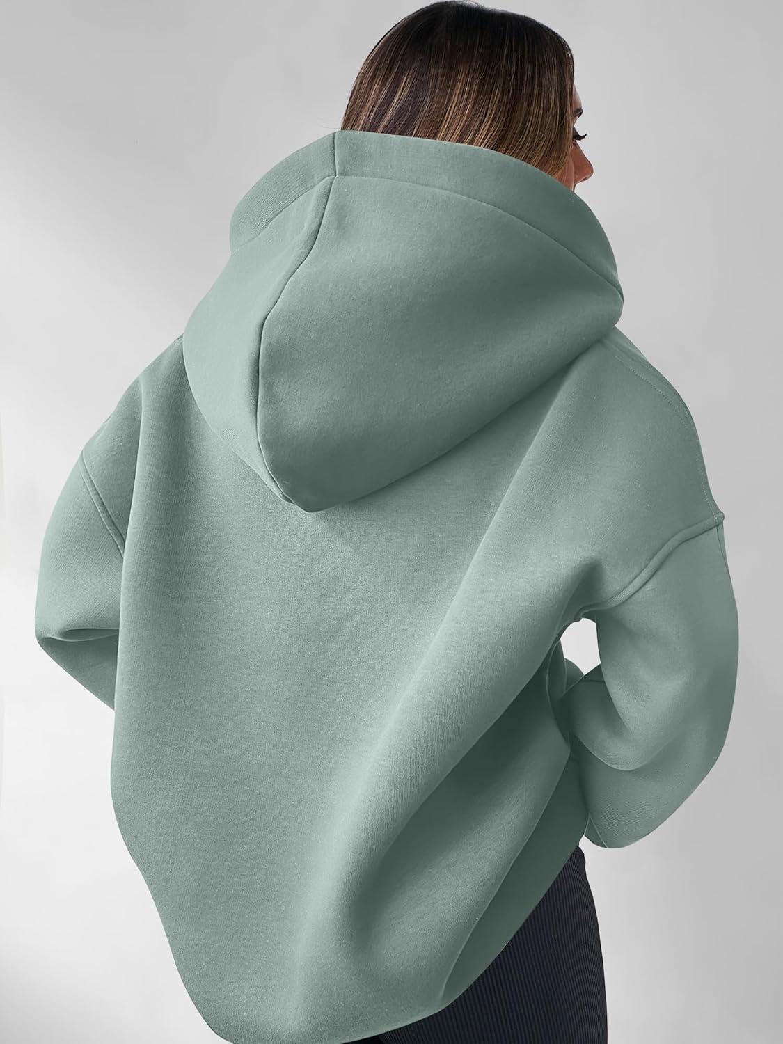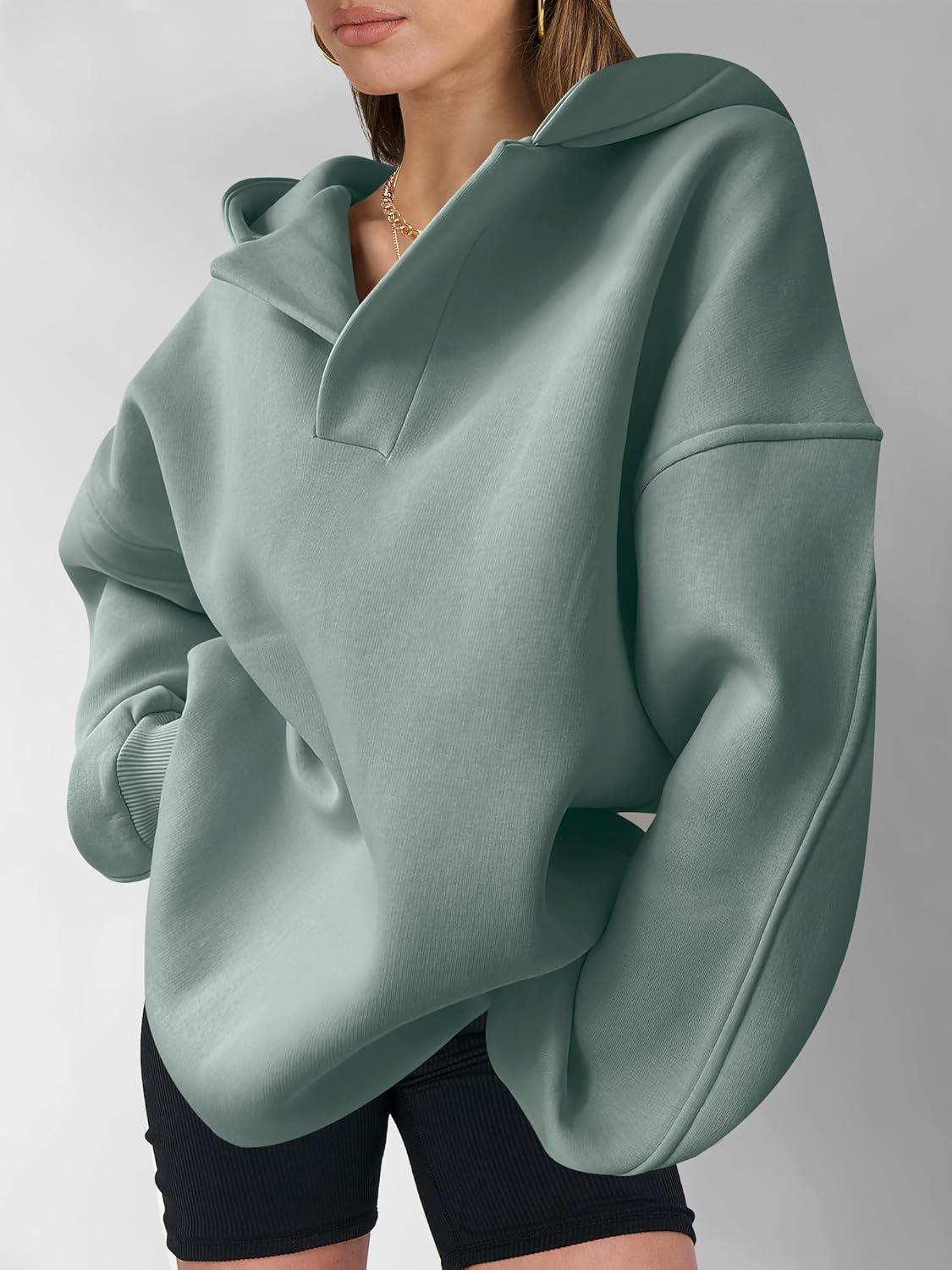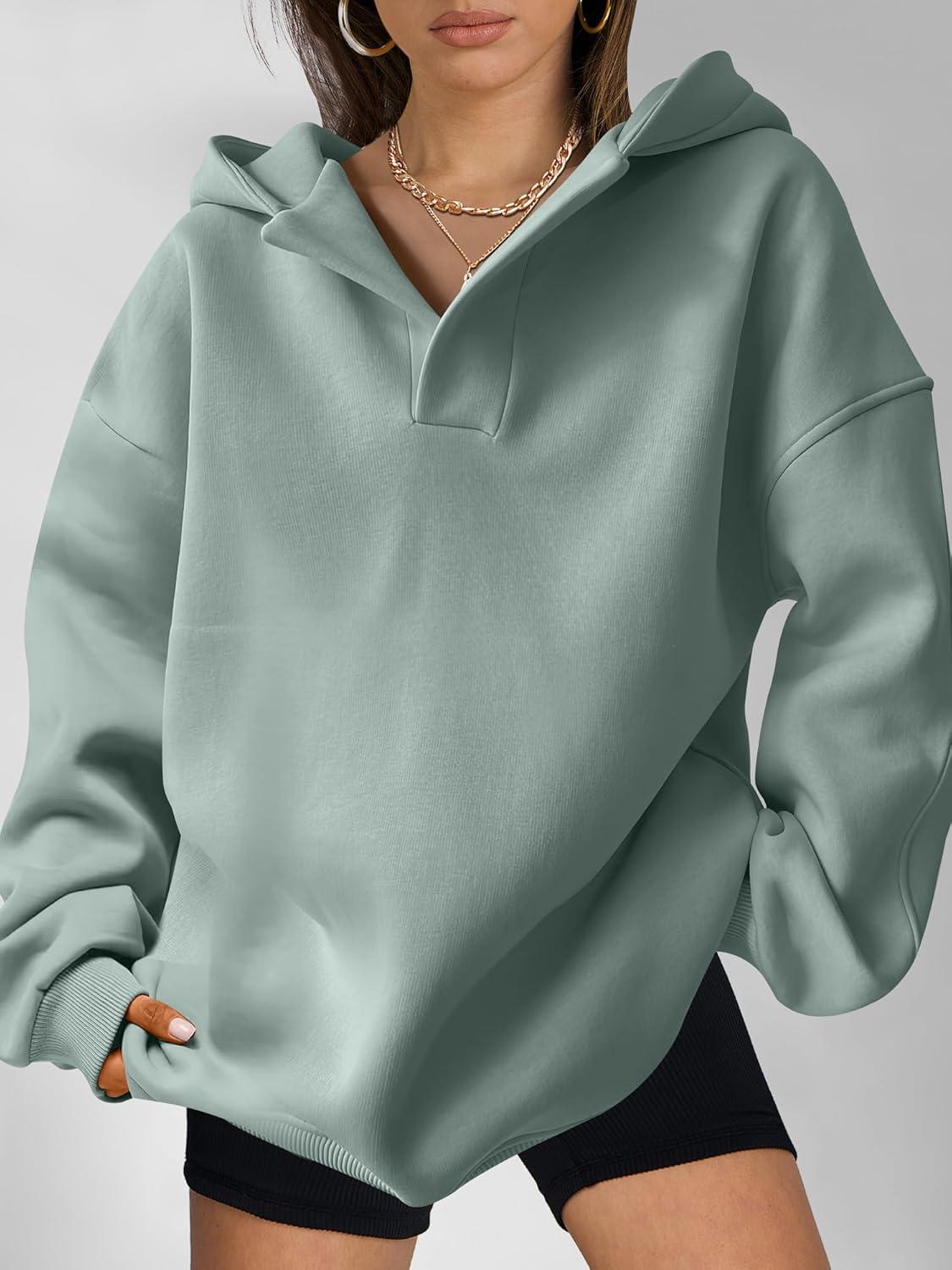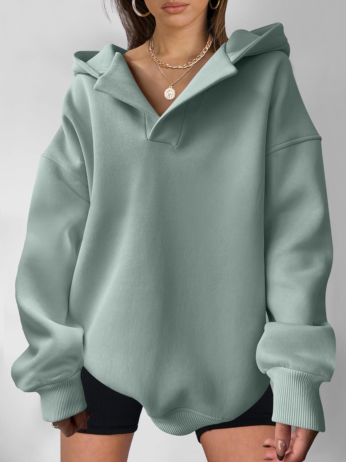 ANRABESS Womens Oversized Hoodies V Neck Sweatshirts Fleece Long Sleeve Pullover Y2K Clothes 2025 Fall Trendy Outfits(Sage Green)