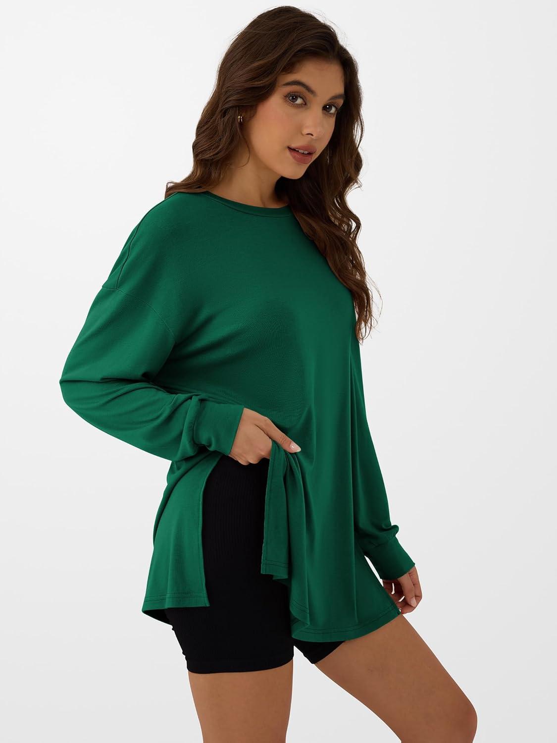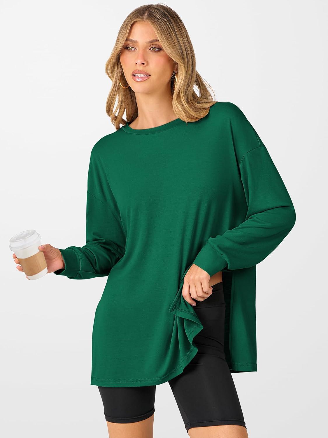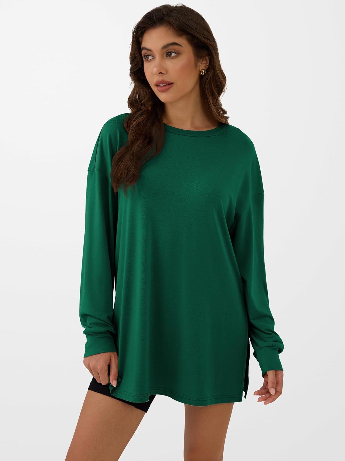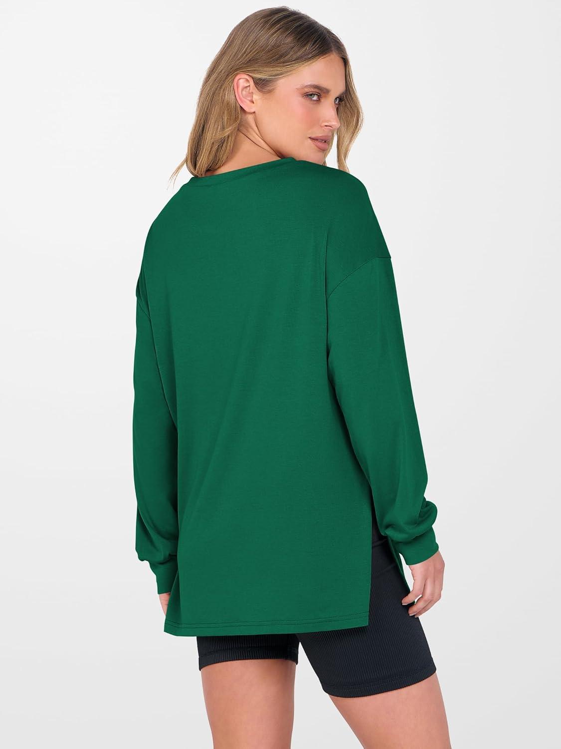 ANRABESS Women's Oversized Long Sleeve shirts Fall Workout Tunic Tops Athletic Gym Tshirts Soft Basic Tees 2025 Outfits(Green)