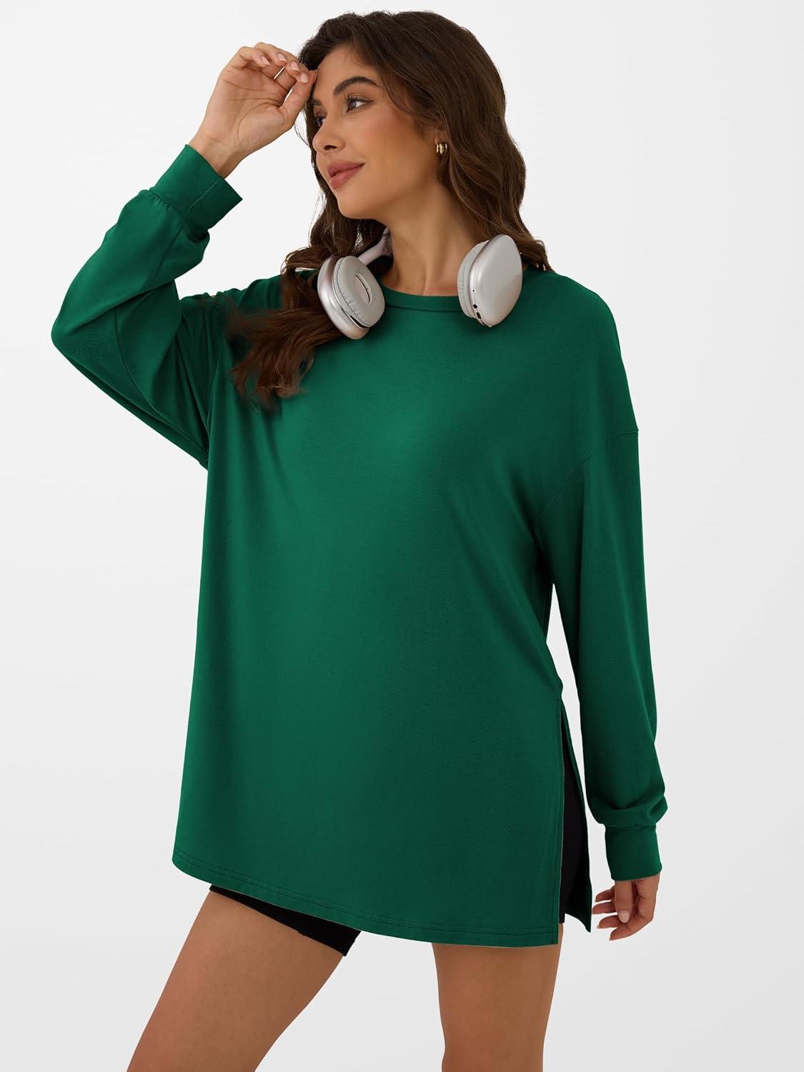 ANRABESS Women’s Oversized Long Sleeve shirts Fall Workout Tunic Tops Athletic Gym Tshirts Soft Basic Tees 2025 Outfits(Green)