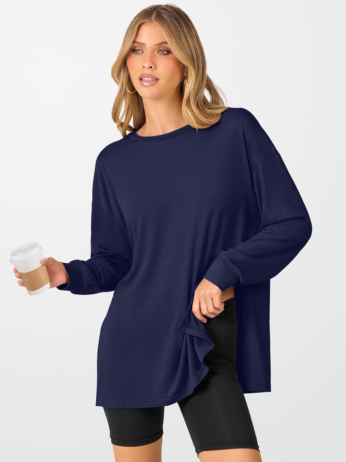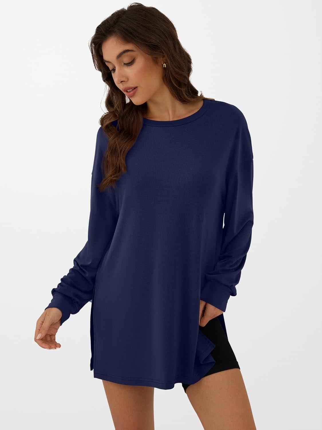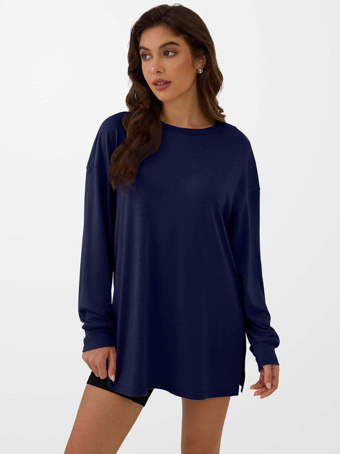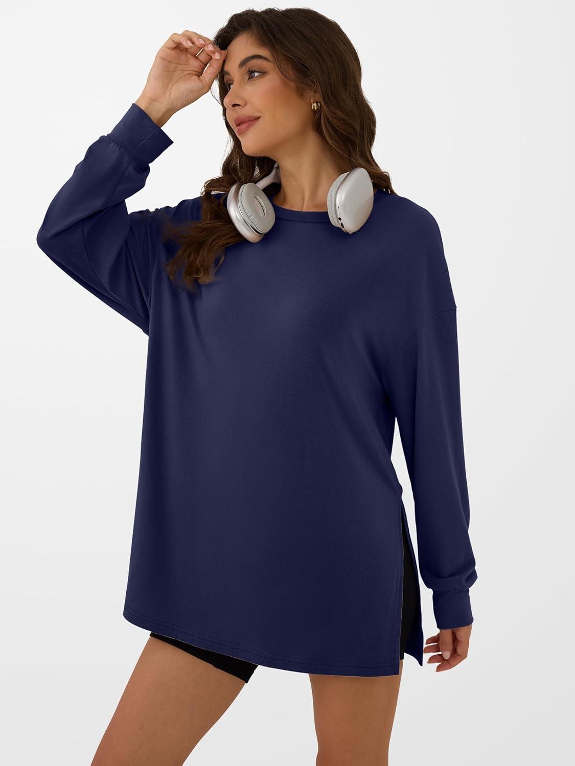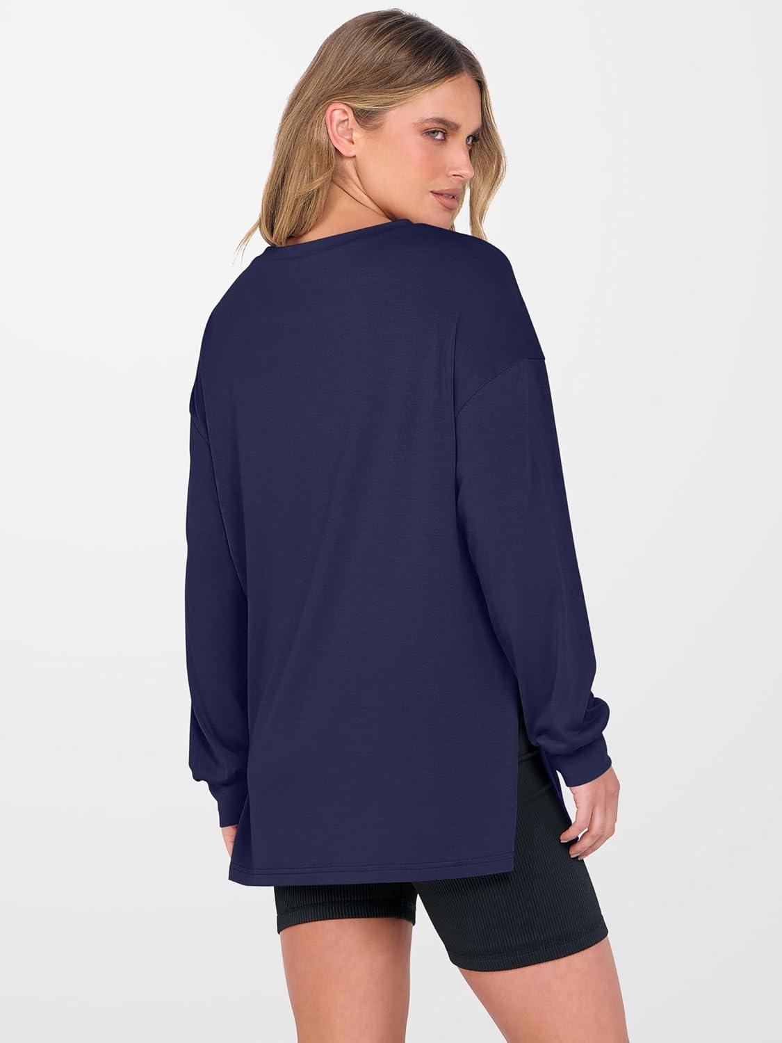 ANRABESS Women's Oversized Long Sleeve shirts Fall Workout Tunic Tops Athletic Gym Tshirts Soft Basic Tees 2025 Outfits(Navy Blue)