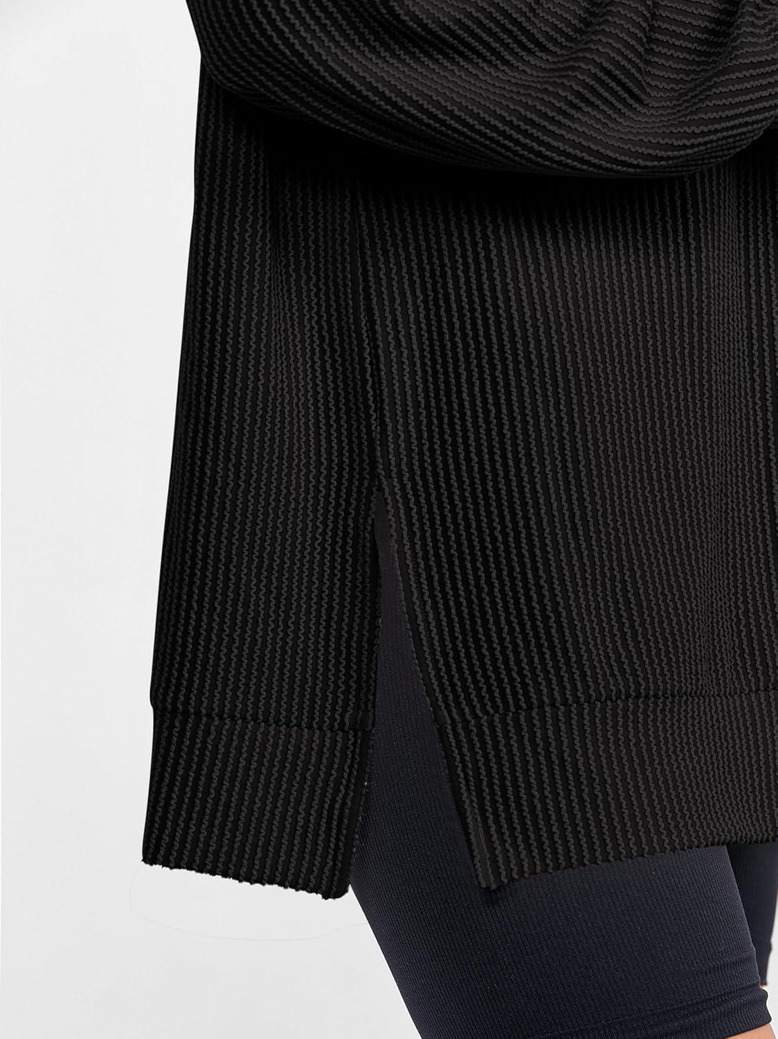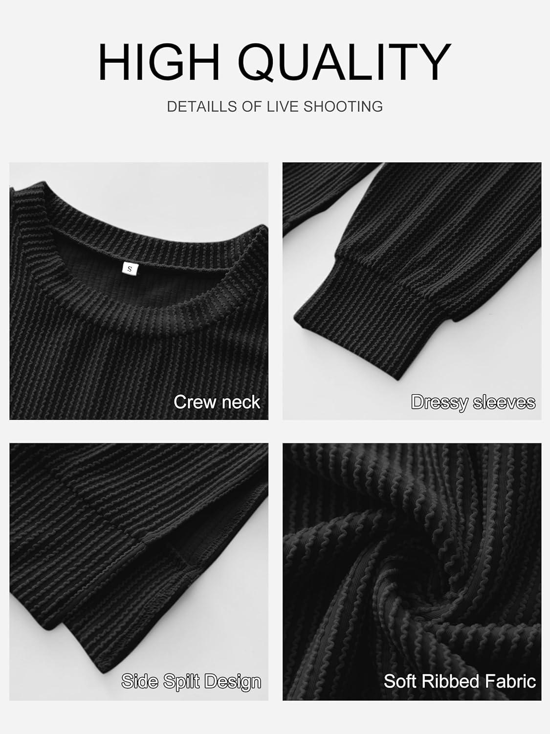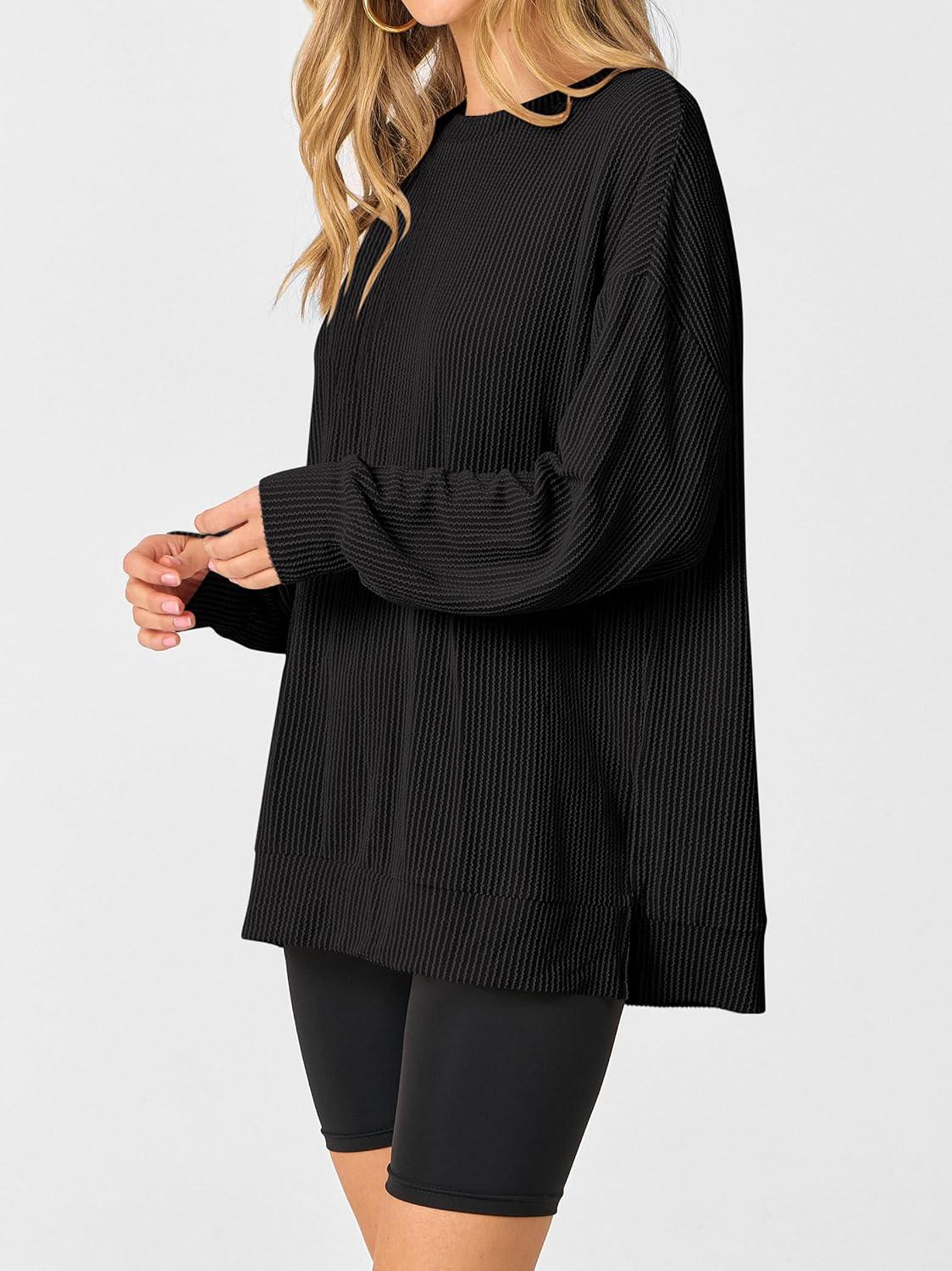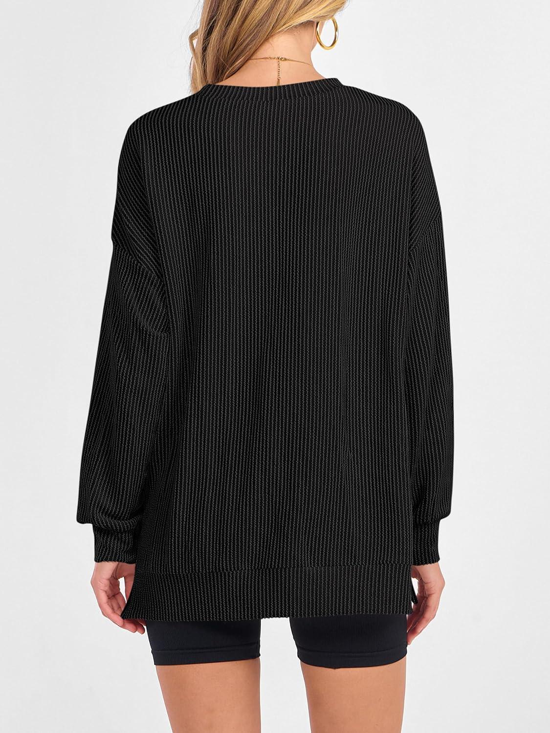 ANRABESS Womens Oversized Long Sleeve Shirts Ribbed Knit Tunic Tops Side Spilt Casual 2025 Fall Outfits(Black)
