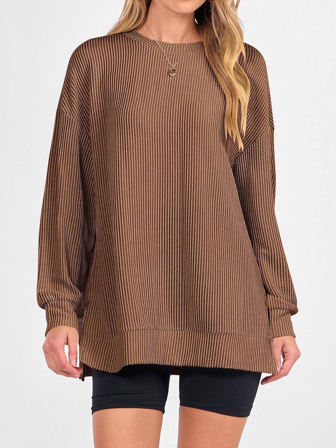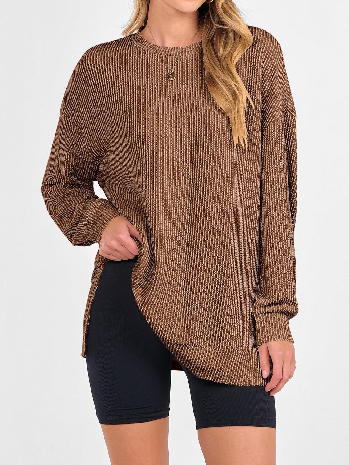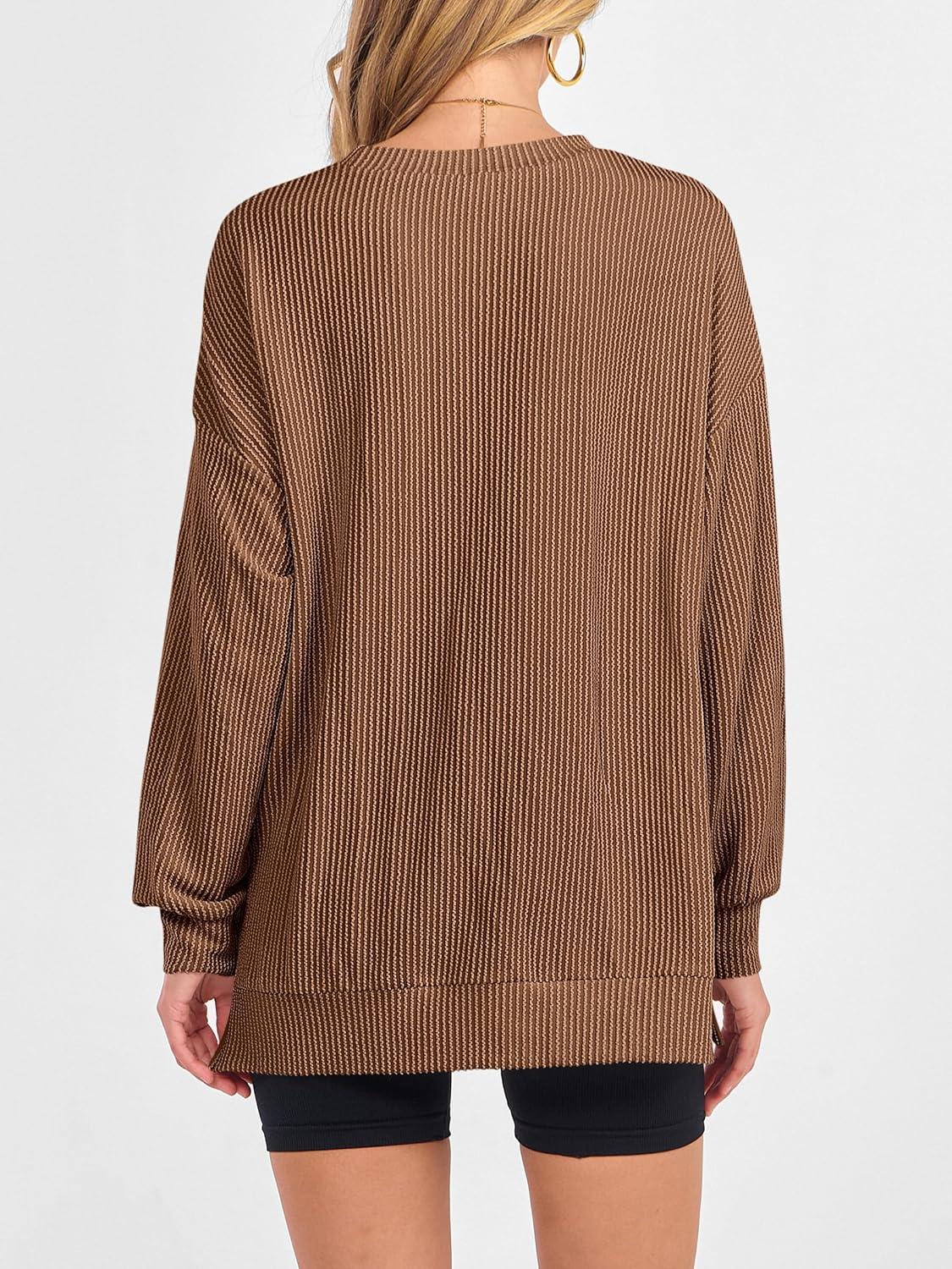 imageANRABESS Womens Oversized Long Sleeve Shirts Ribbed Knit Tunic Tops Side Spilt Casual 2025 Fall OutfitsBrown