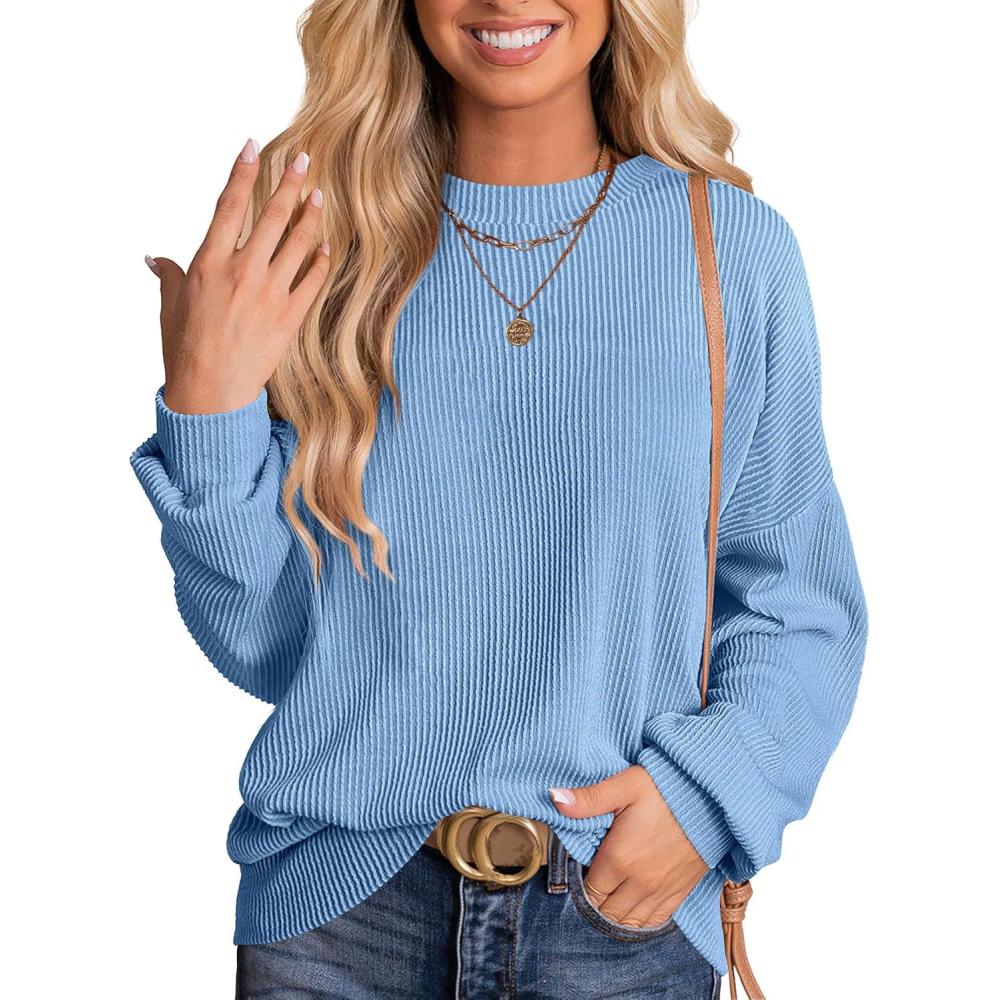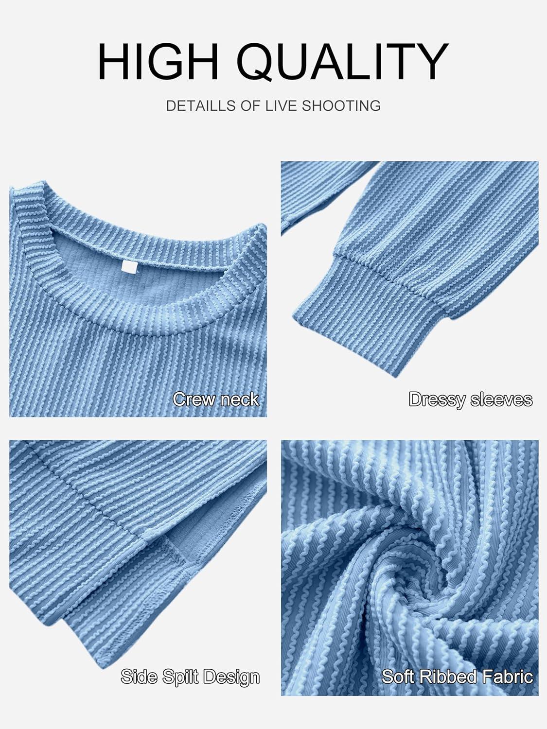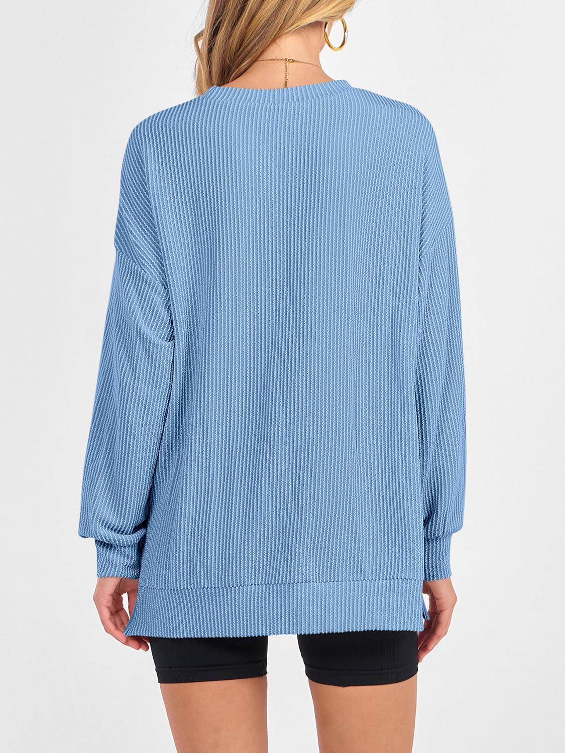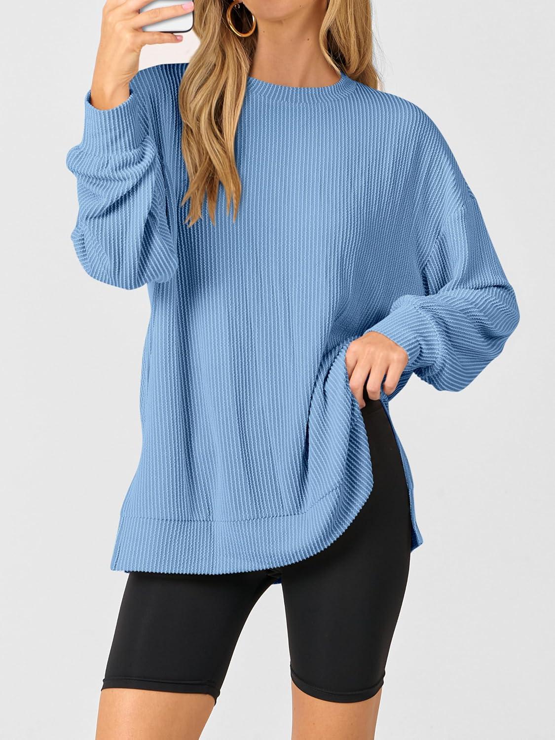 ANRABESS Womens Oversized Long Sleeve Shirts Ribbed Knit Tunic Tops Side Spilt Casual 2025 Fall Outfits(Light Blue)