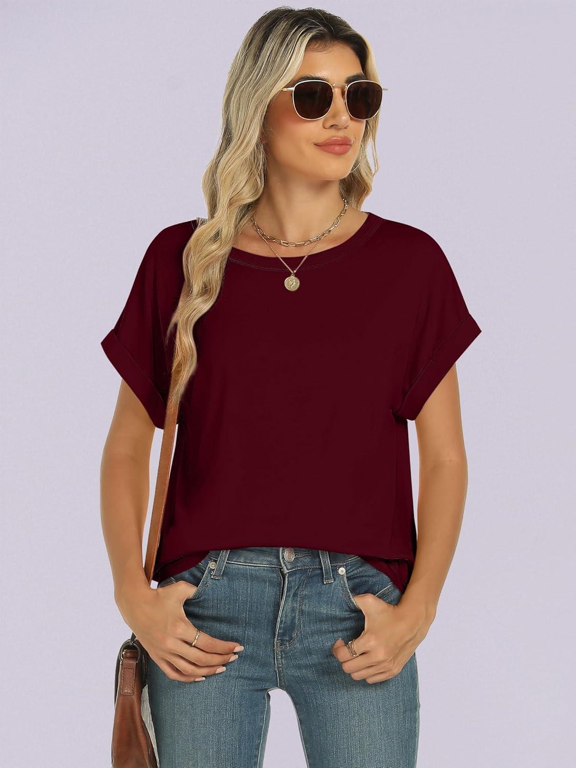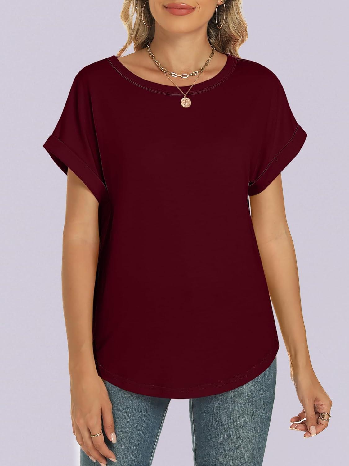 ANRABESS Women's Oversized Short Sleeve T Shirts(Burgundy)