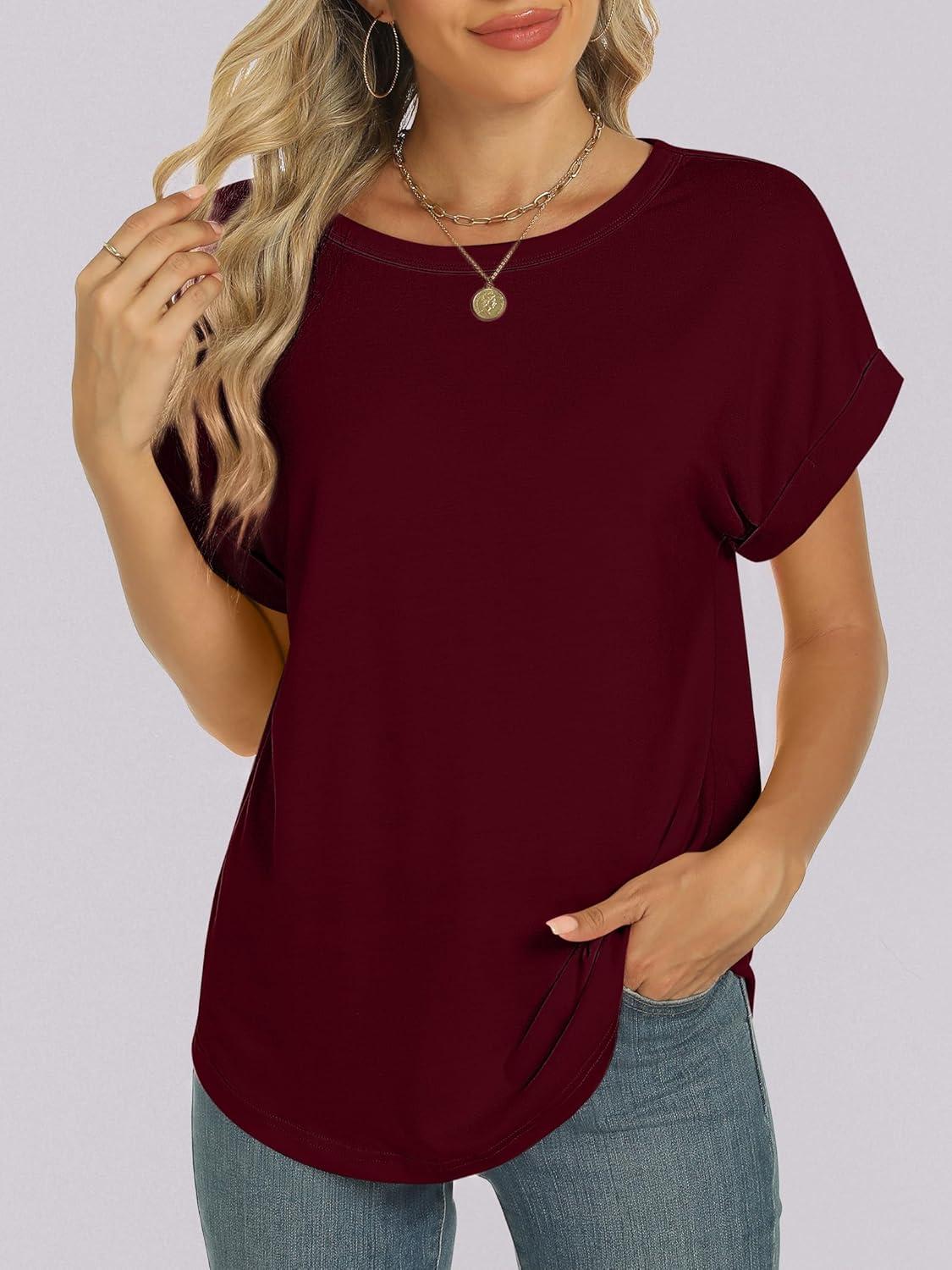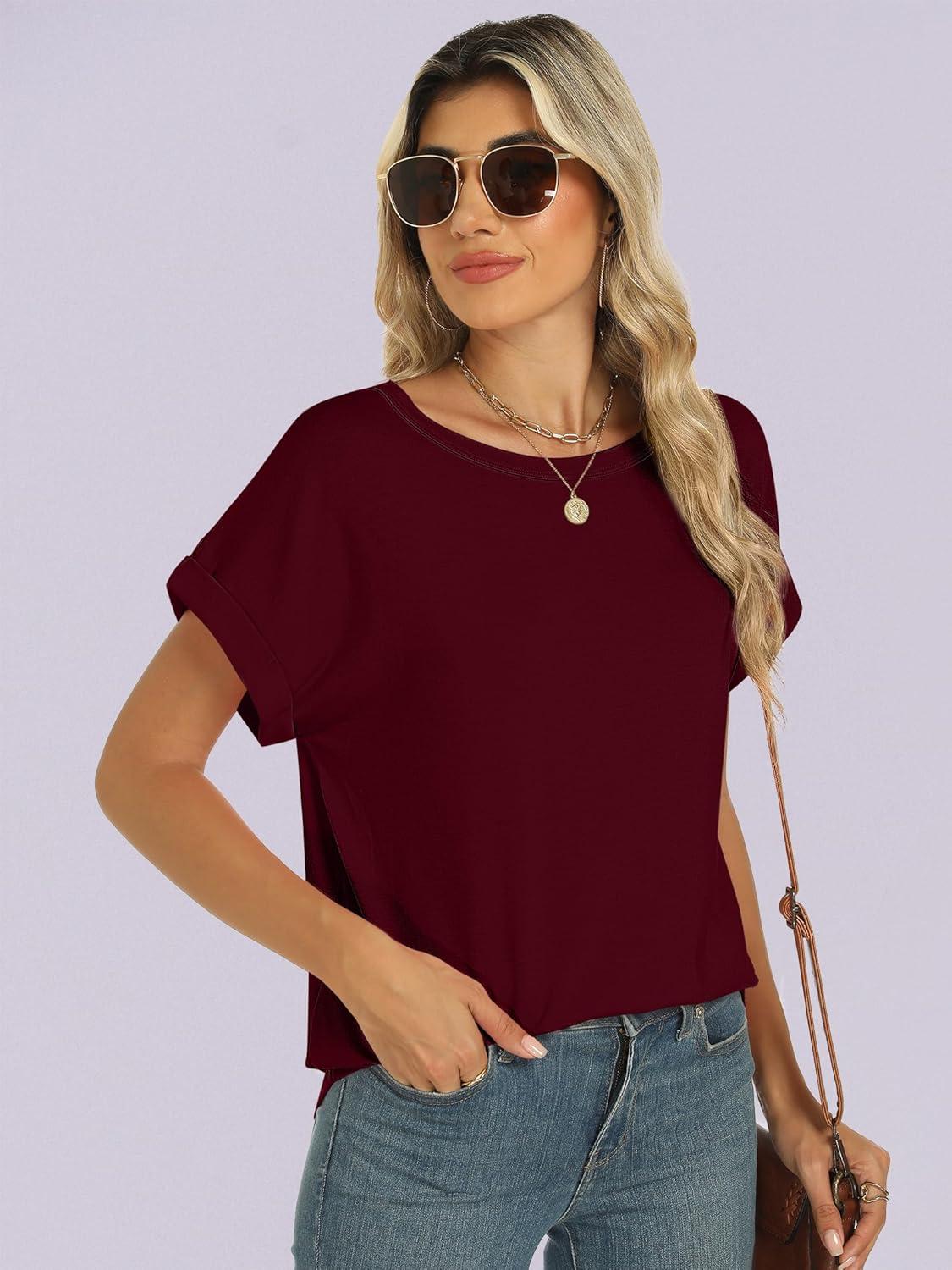 ANRABESS Women’s Oversized Short Sleeve T Shirts(Burgundy)