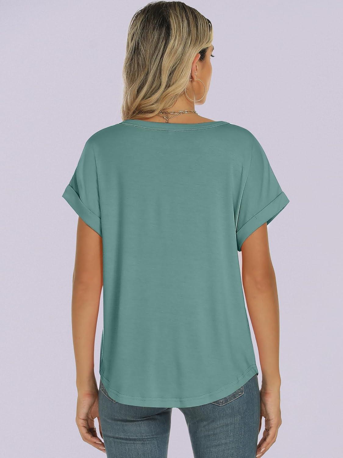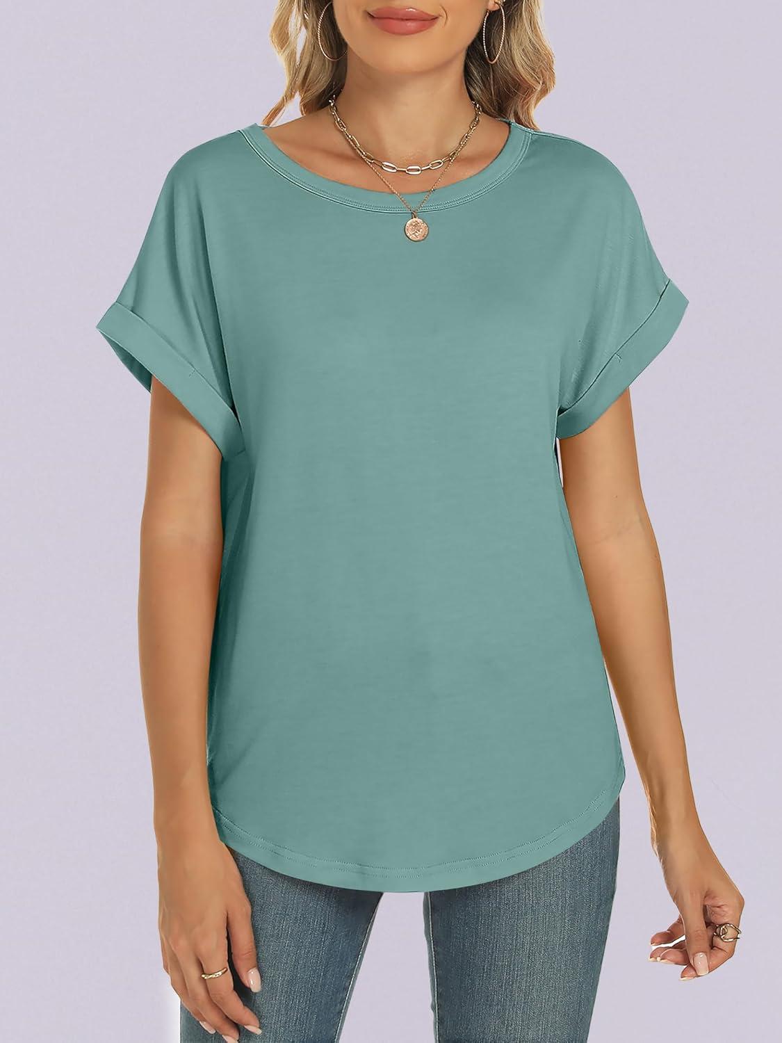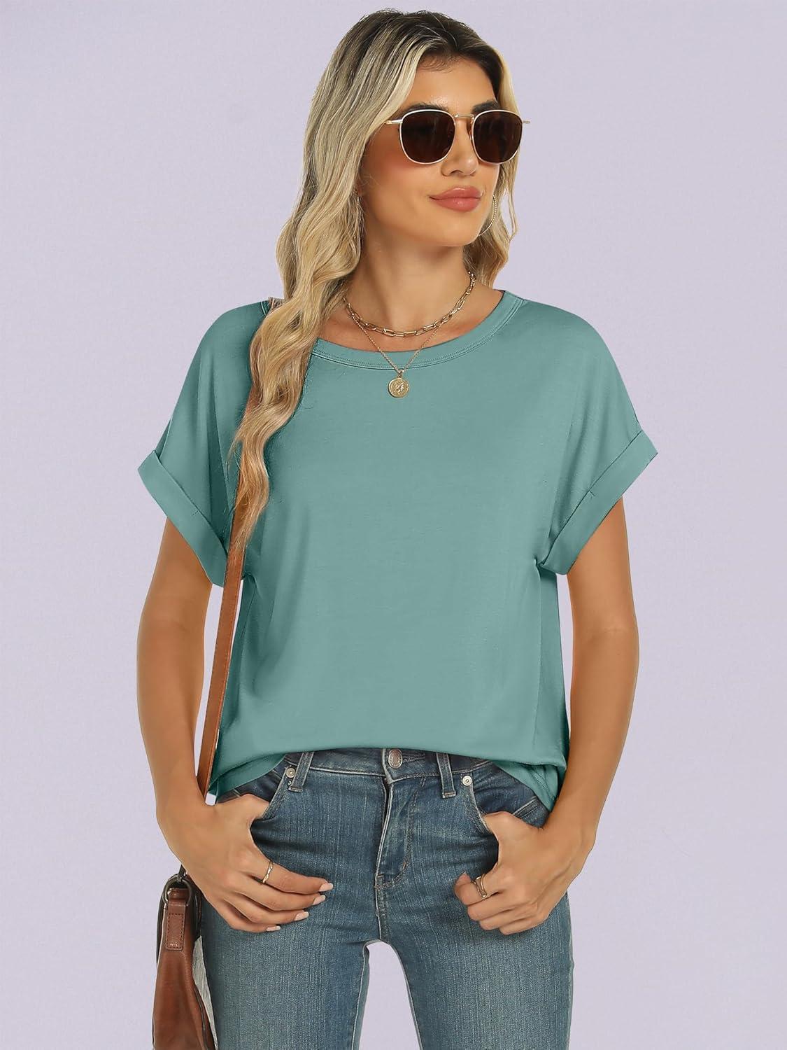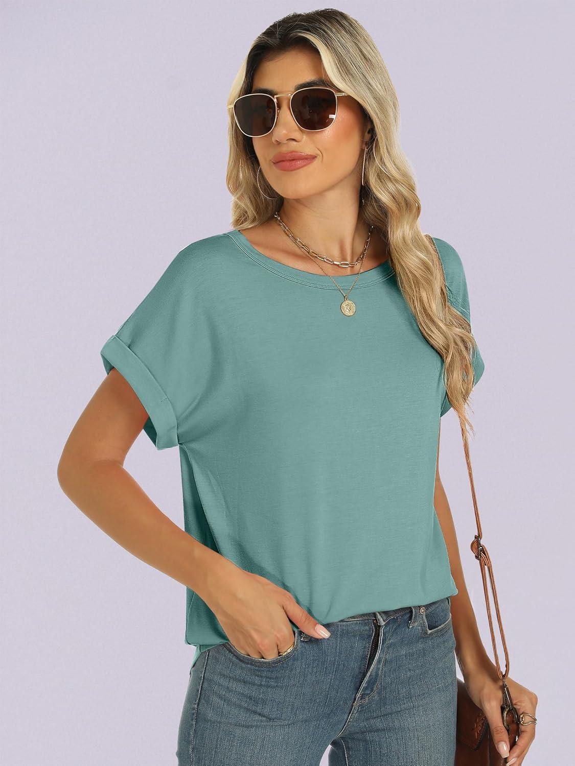 ANRABESS Women's Oversized Short Sleeve T Shirts(Cadet Blue)